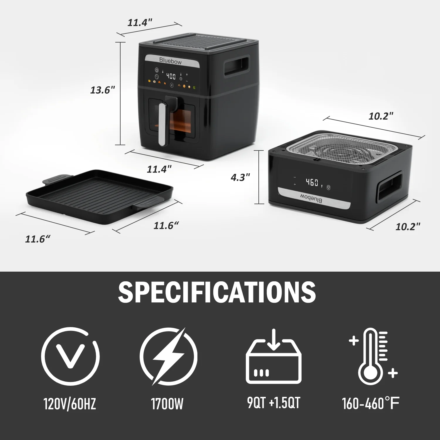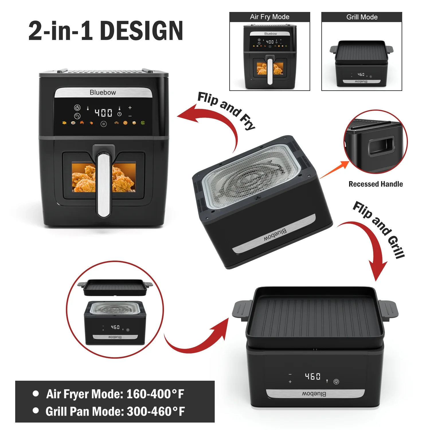 - 2-in-1 Versatility: Use as a 9QT large-capacity air fryer or flip the top to transform it into a griddle pan for frying, searing, and grilling. No need for multiple appliances!
