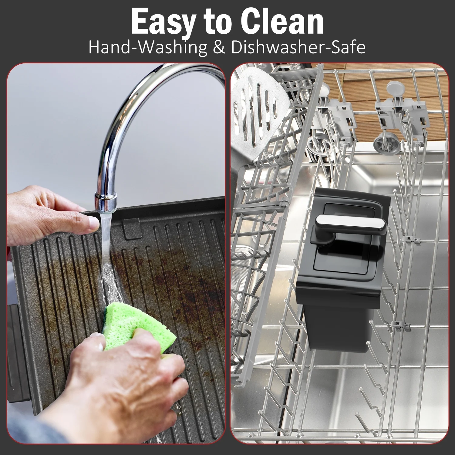- Easy to Clean & Safe: Detachable non-stick griddle and air fryer basket are dishwasher-safe. Overheat protection ensures safe operation every time.art Controls: Enjoy one-touch cooking with eight preset programs. Adjust time (1-60 min) and temperature (160-400�H for air frying, 300-460�H for griddle) via the intuitive touchscreen.