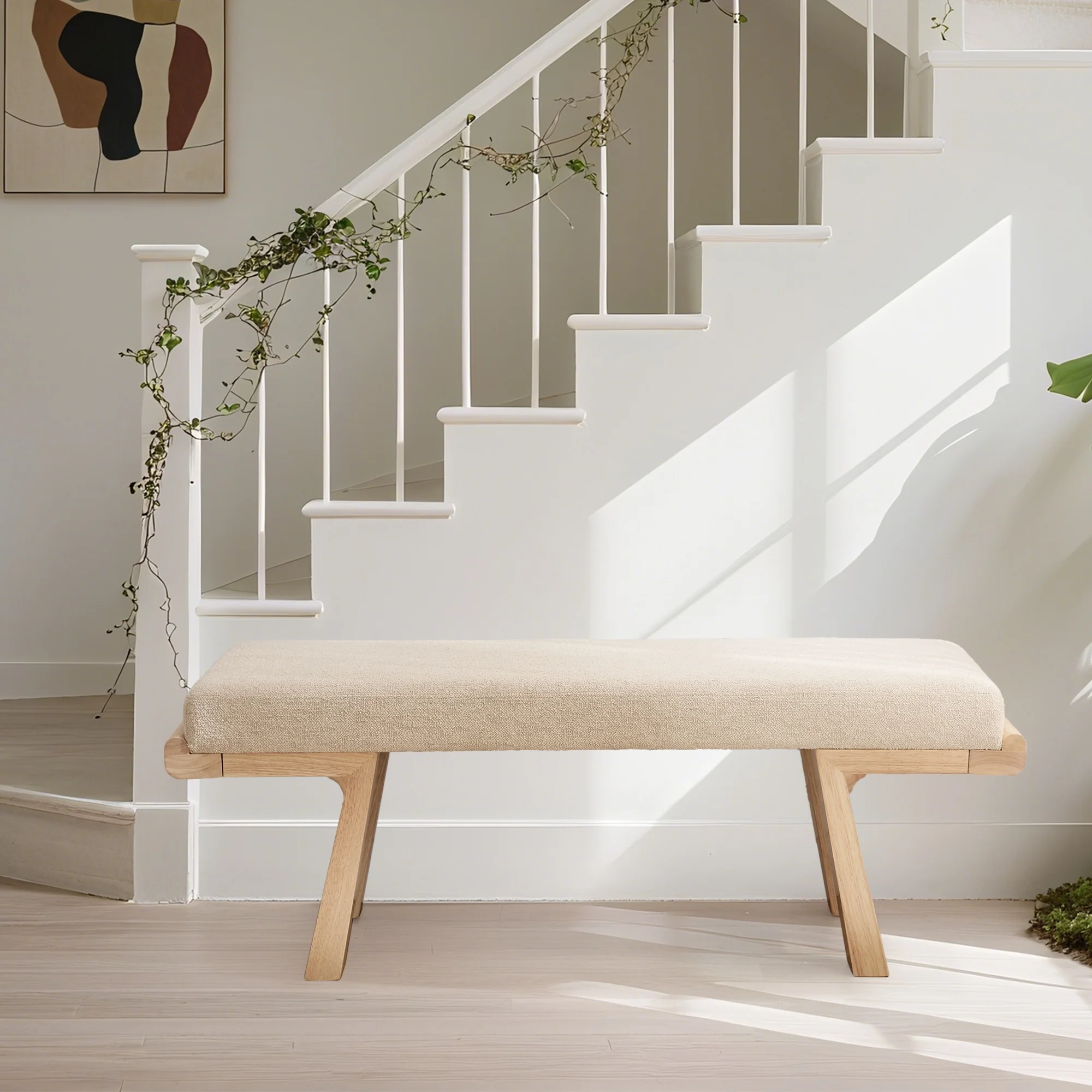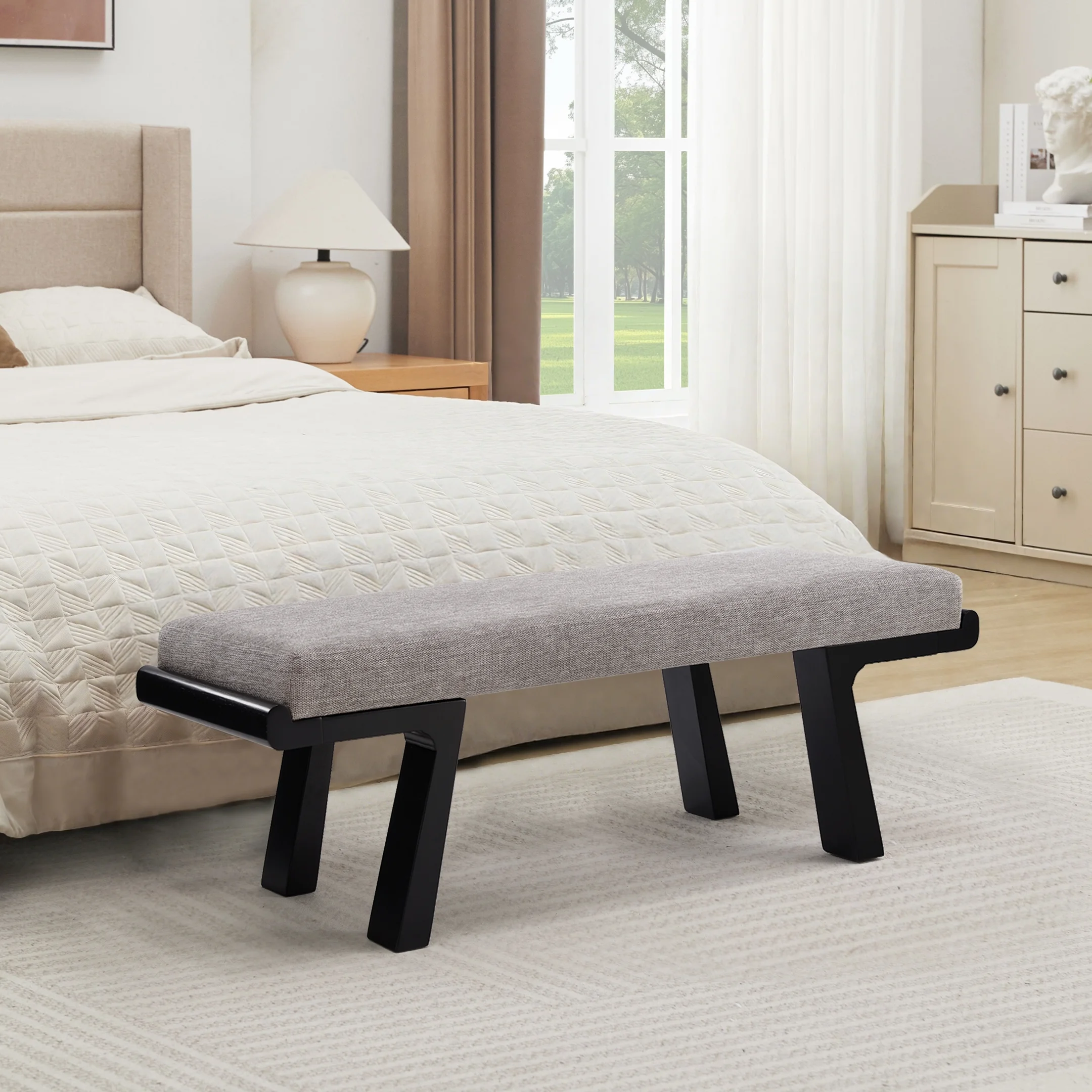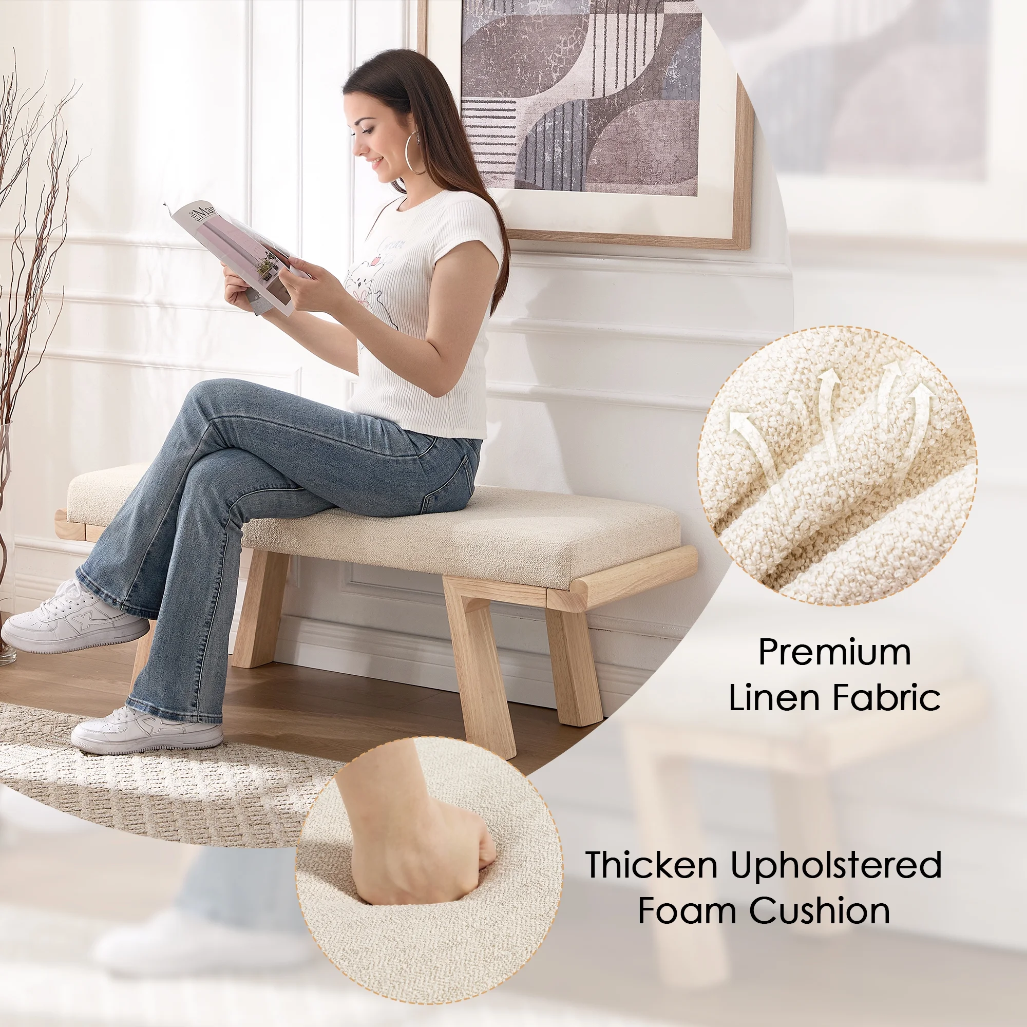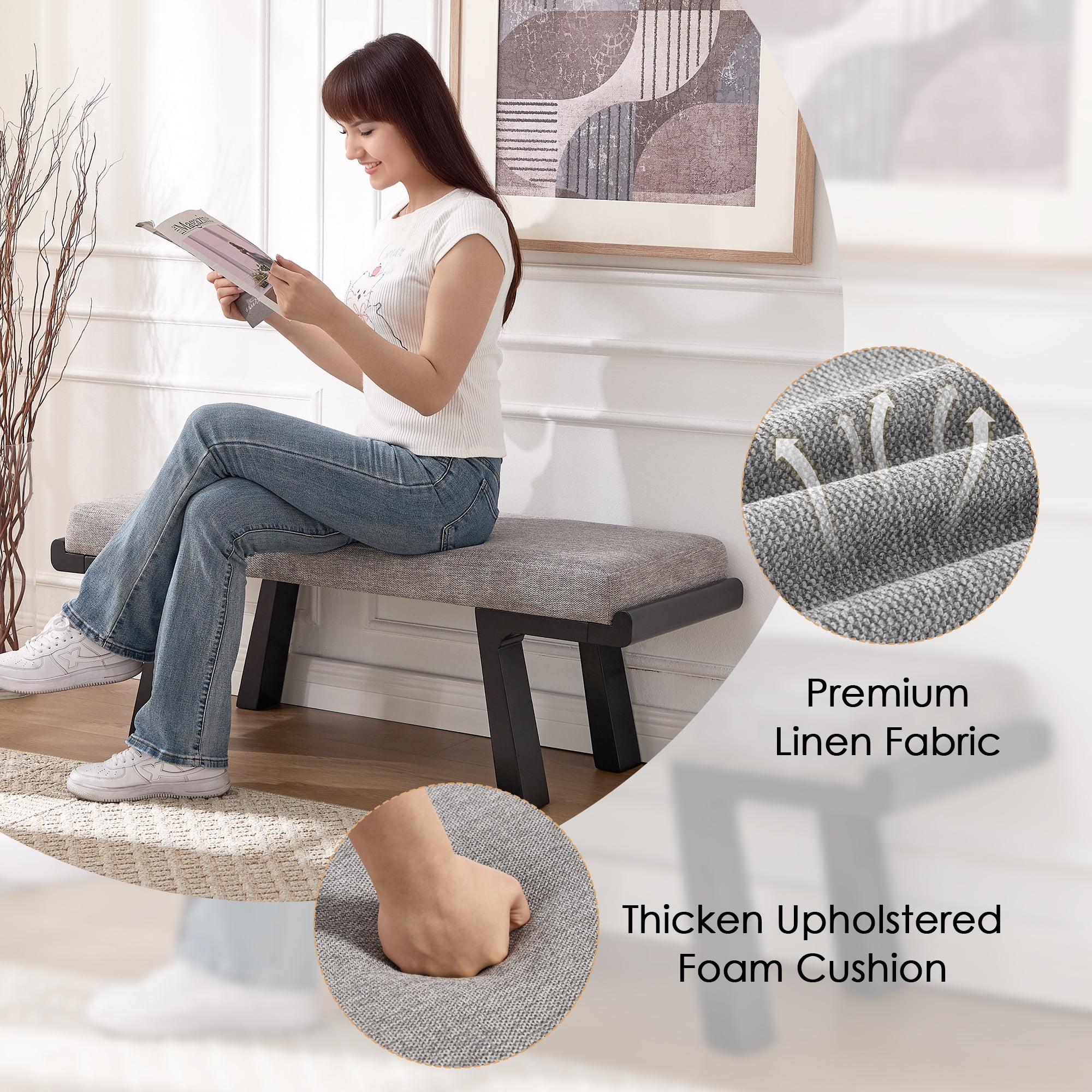 - ��Modern Classic Aesthetic��Geometric solid wood legs paired with a soft linen cushion, featuring clean lines and neutral tones, this upholstered bench effortlessly blends into various home decor styles.