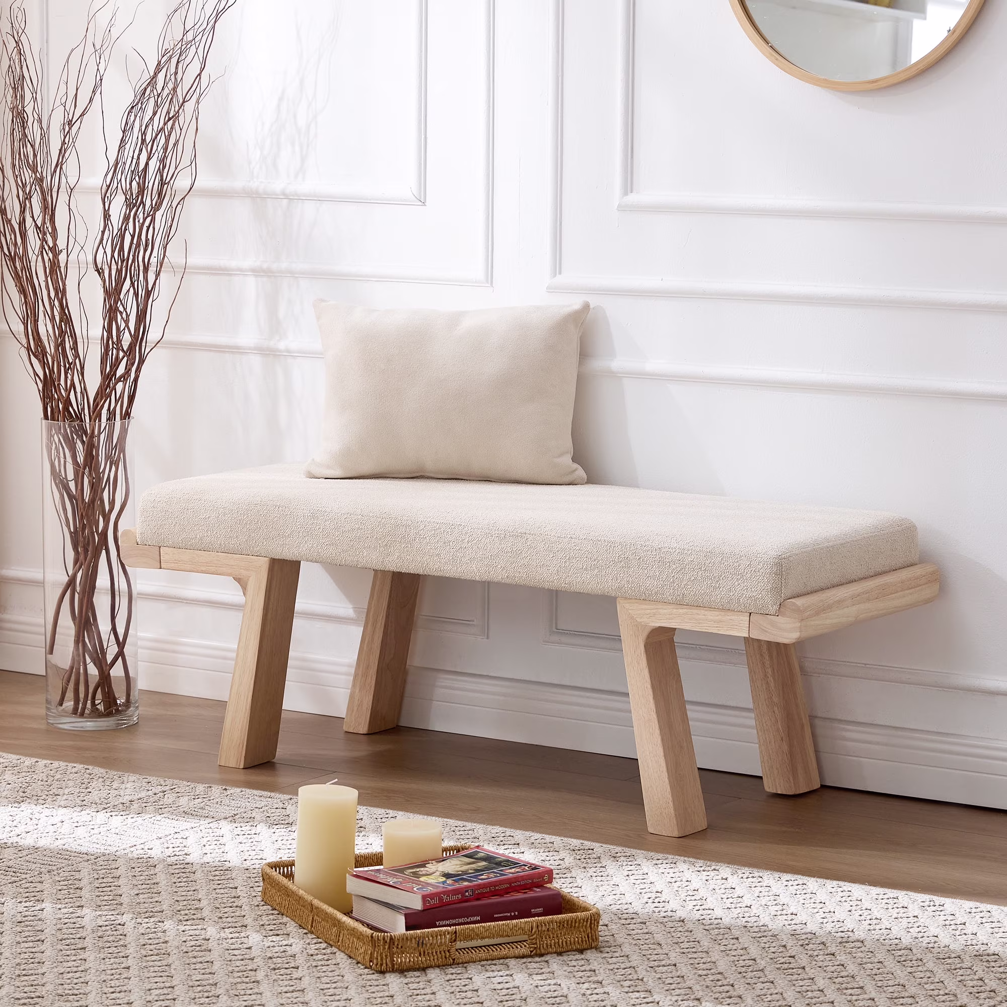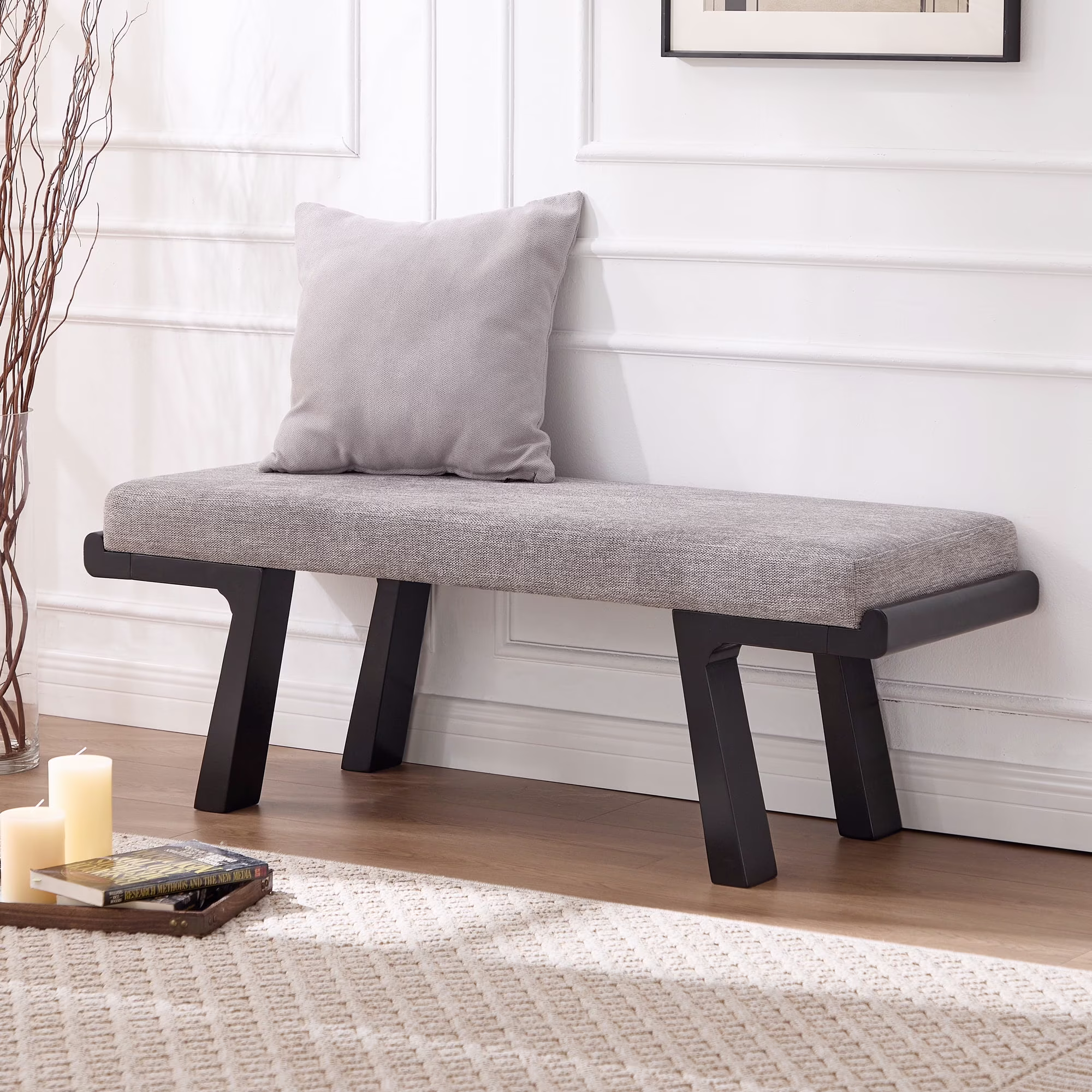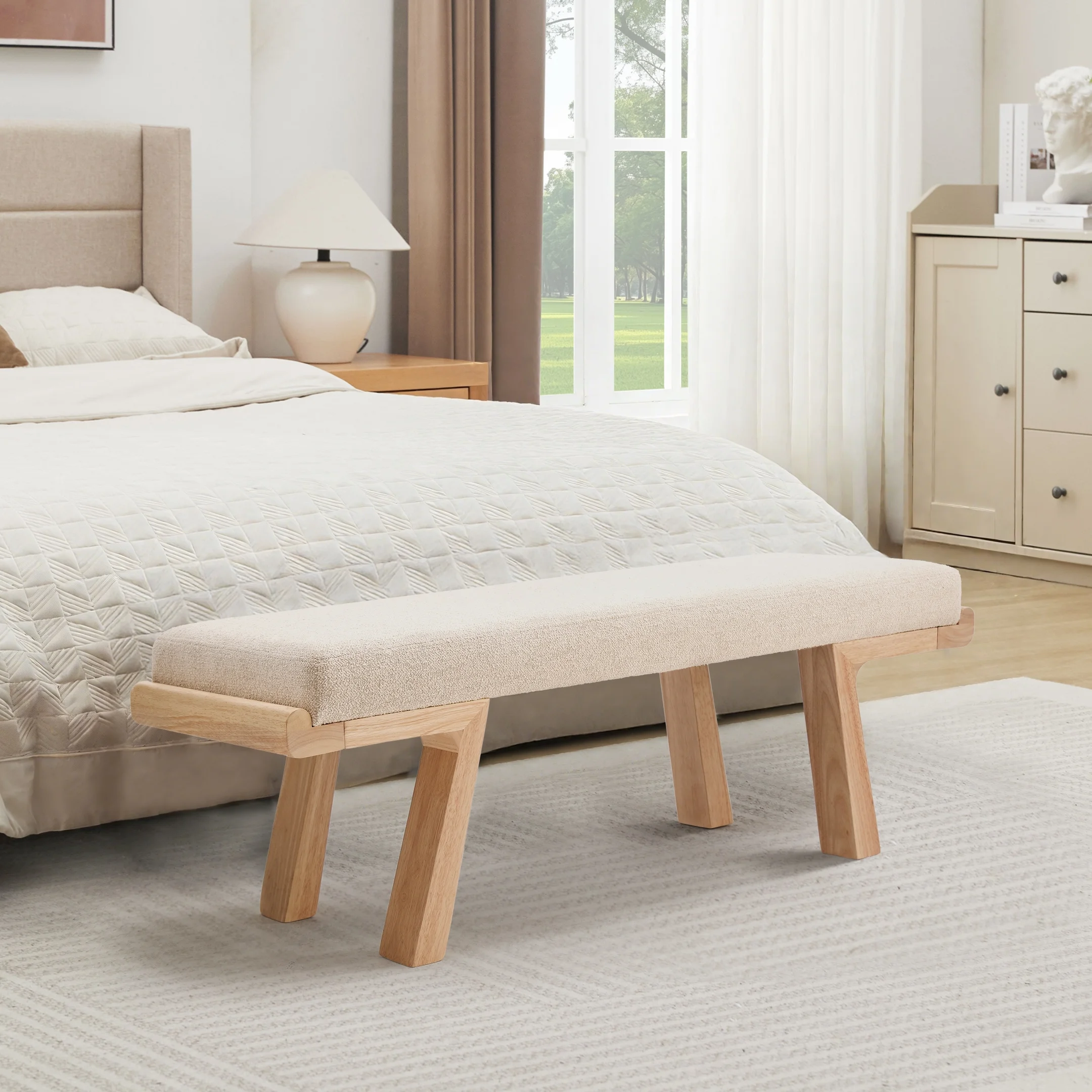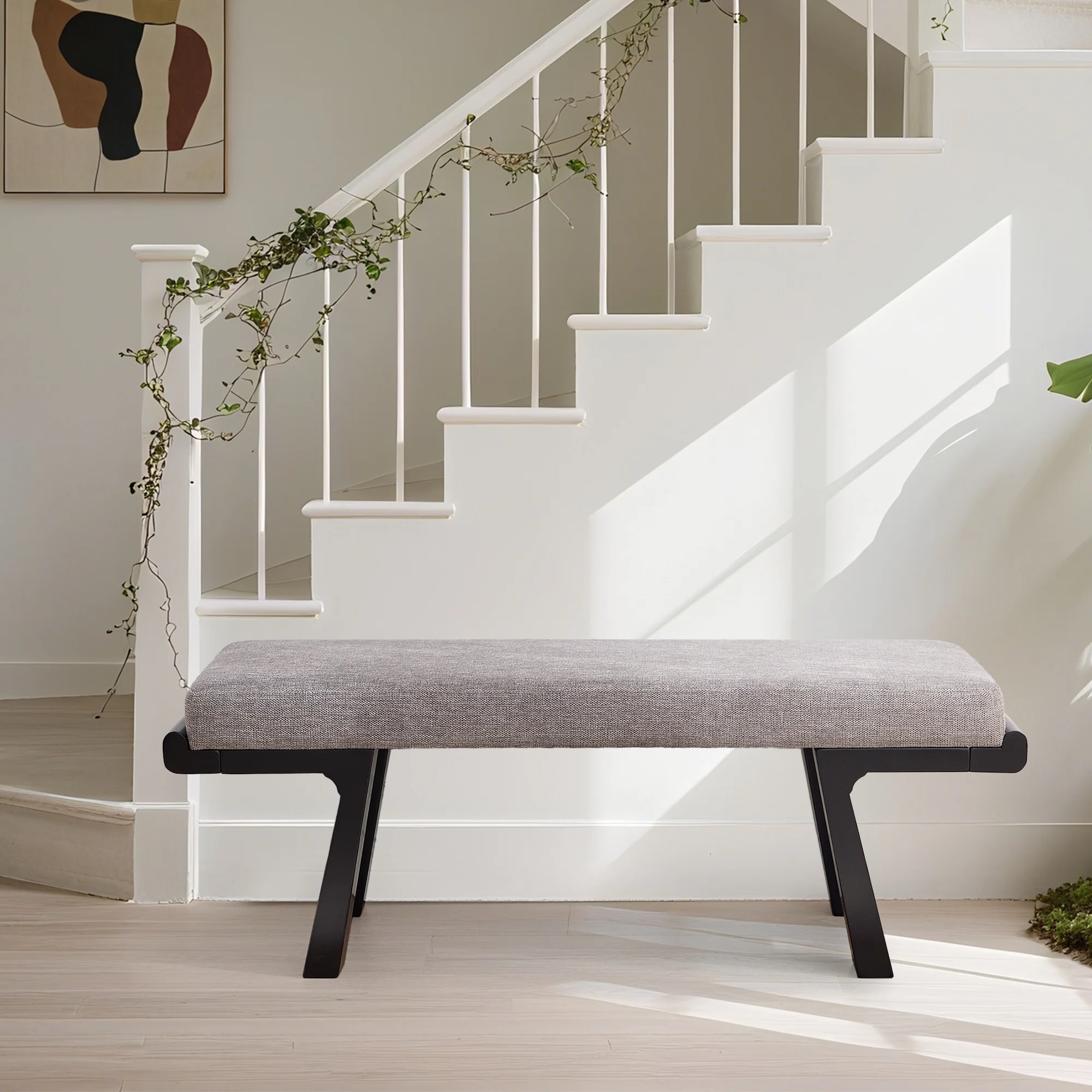 - ��Modern Classic Aesthetic��Geometric solid wood legs paired with a soft linen cushion, featuring clean lines and neutral tones, this upholstered bench effortlessly blends into various home decor styles.