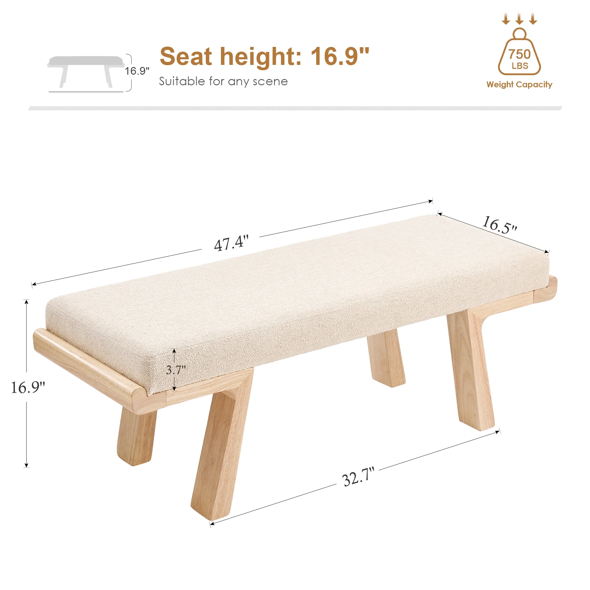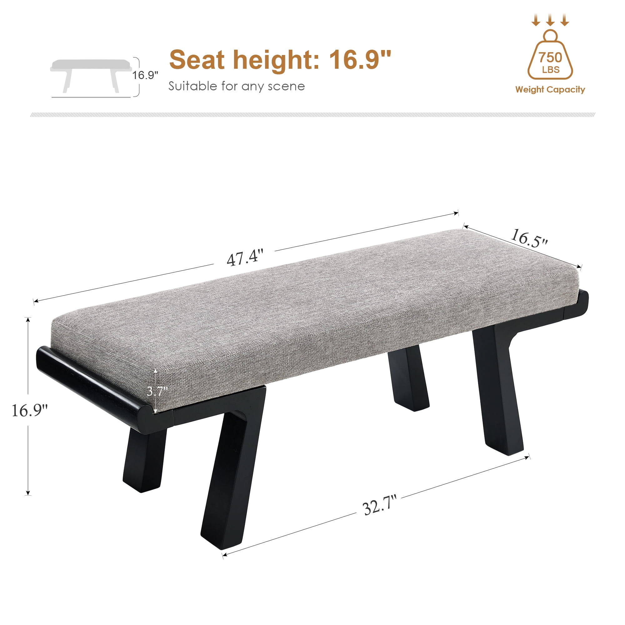 - ��Versatile Use��Measuring 47.4"W x 16.5"D x 16.9"H, well-size, this bench perfect as a bedroom bench, entryway bench, or extra seating in the living room.