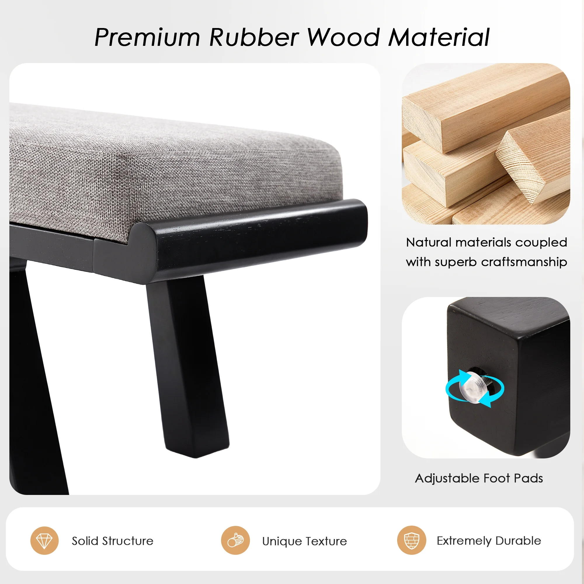 - ��Sturdy & Stable��Natural rubber wood legs are sturdy and durable ( capacity 750 lbs), slightly splayed for enhanced stability. Adjustable foot pads on the bottom protect your floors and adapt to different surfaces.