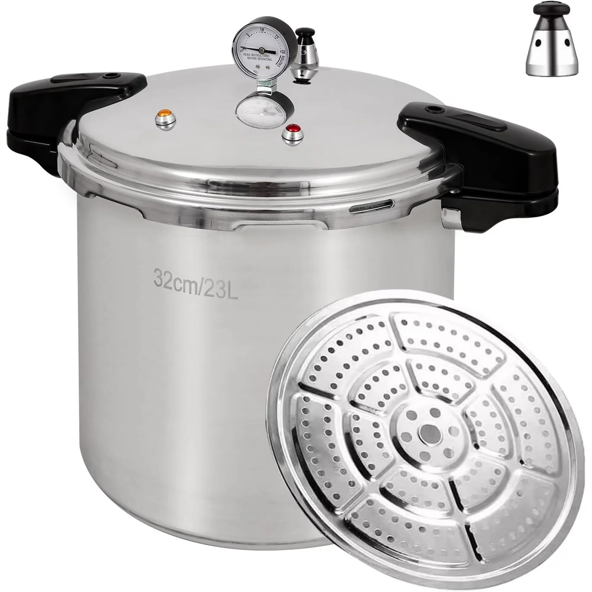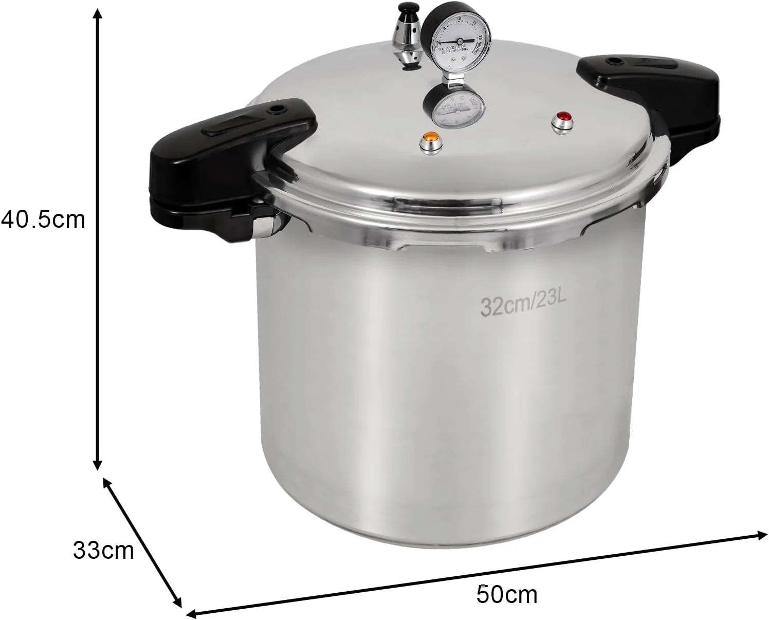 - Generous Size: With dimensions of 32 x 32 x 40 cm, this high-pressure cooker boasts a large 23-liter (24-quart) capacity.
