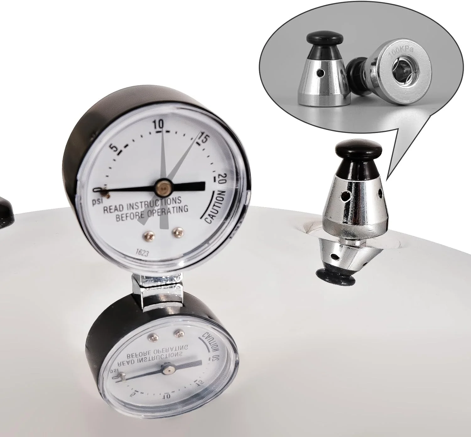 "Enhance your cooking precision with the included pressure gauge that attaches to the lid. Clearly and accurately measure the pressure inside the cooker, allowing you to monitor and record the ideal pressure for a variety of dishes. This thoughtful design not only assures perfect cooking results but also provides a precise and safe pressure release after each use."