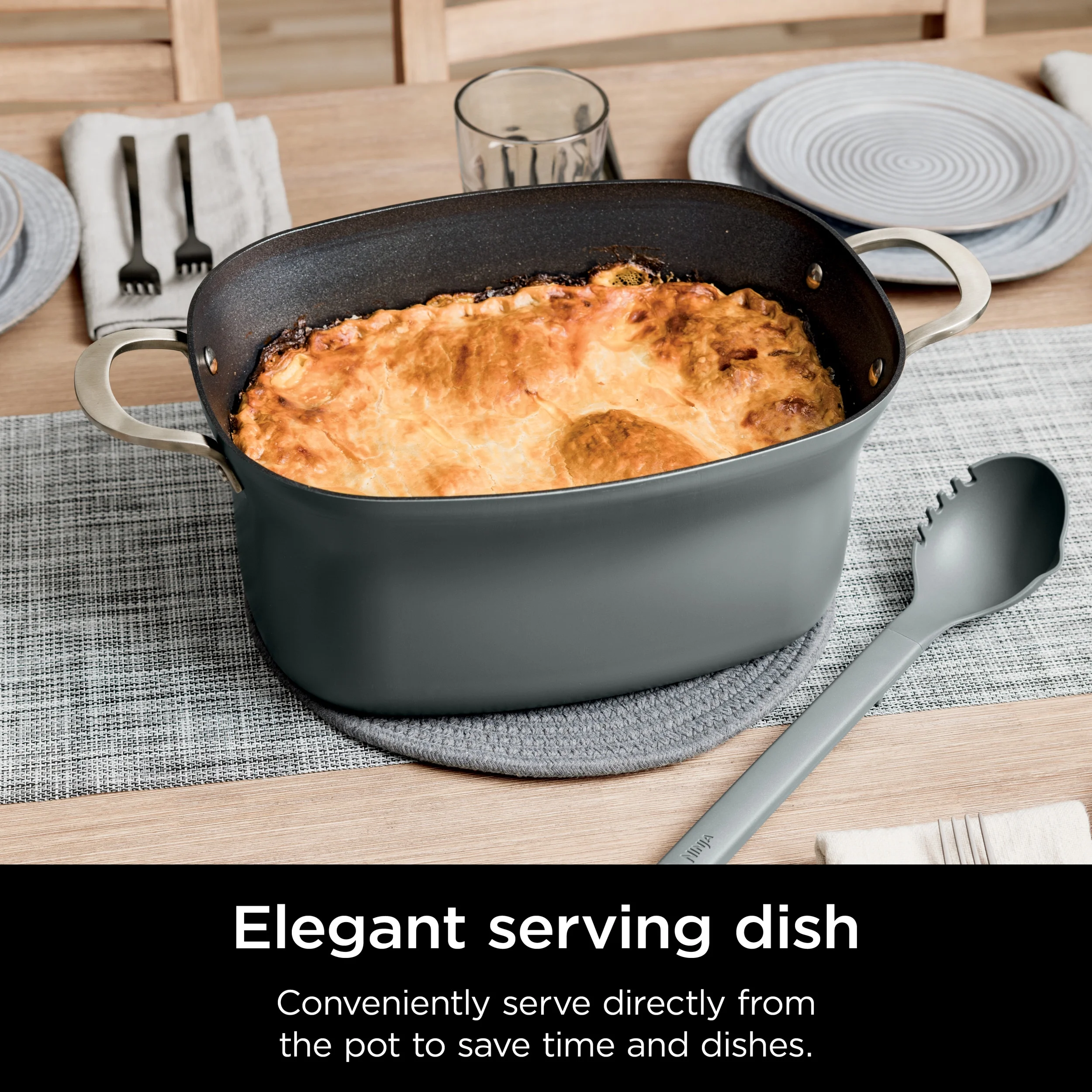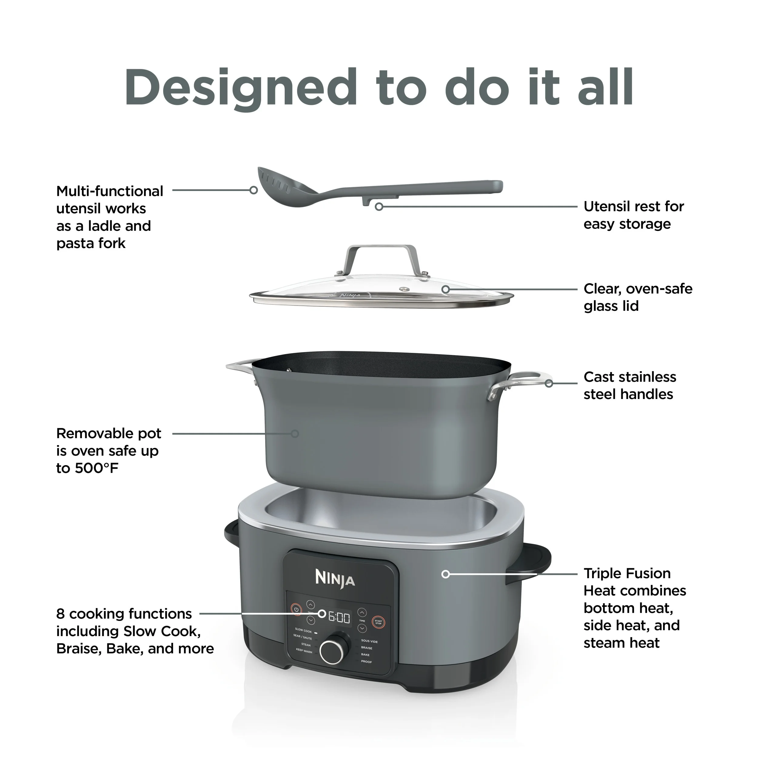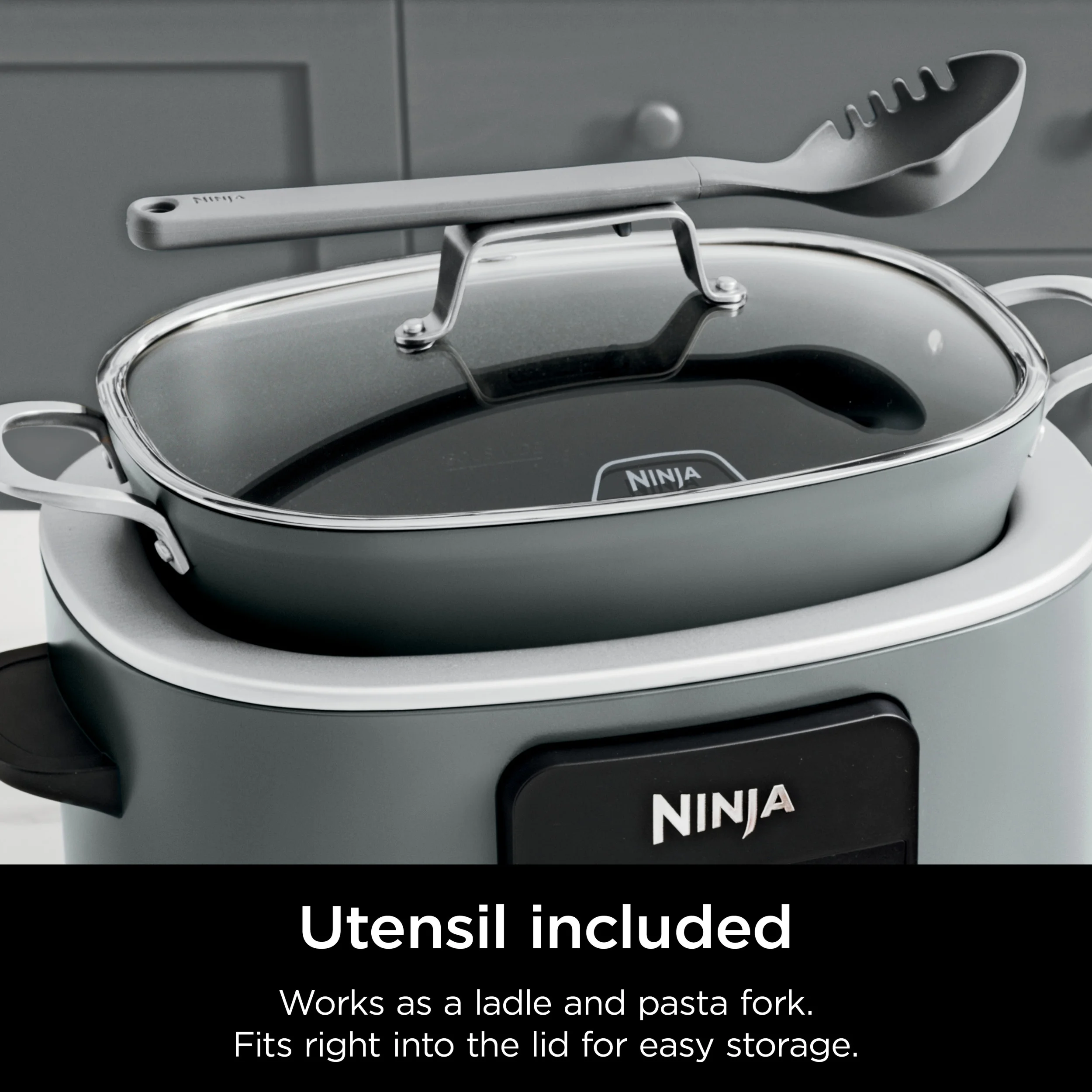 - INCLUDED UTENSIL: Multi-functional utensil works as a ladle and pasta fork, plus it has its own utensil rest right in the lid handle.