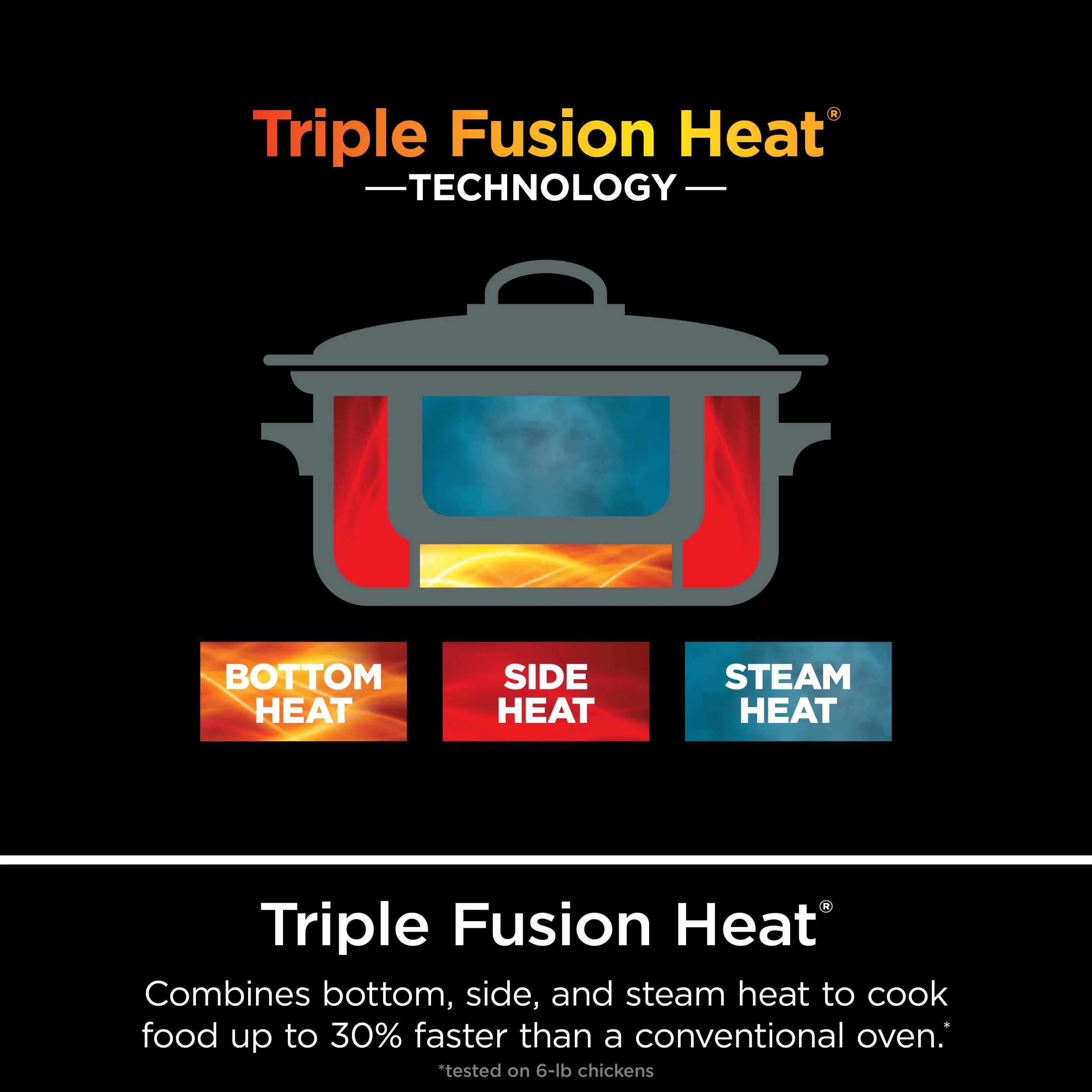 - TRIPLE FUSION HEAT? TECHNOLOGY: Cook up to 30% faster* than conventional ovens by combining bottom, side, and steam heat. More heat, more possibilities. *Tested on 6-lb chickens.