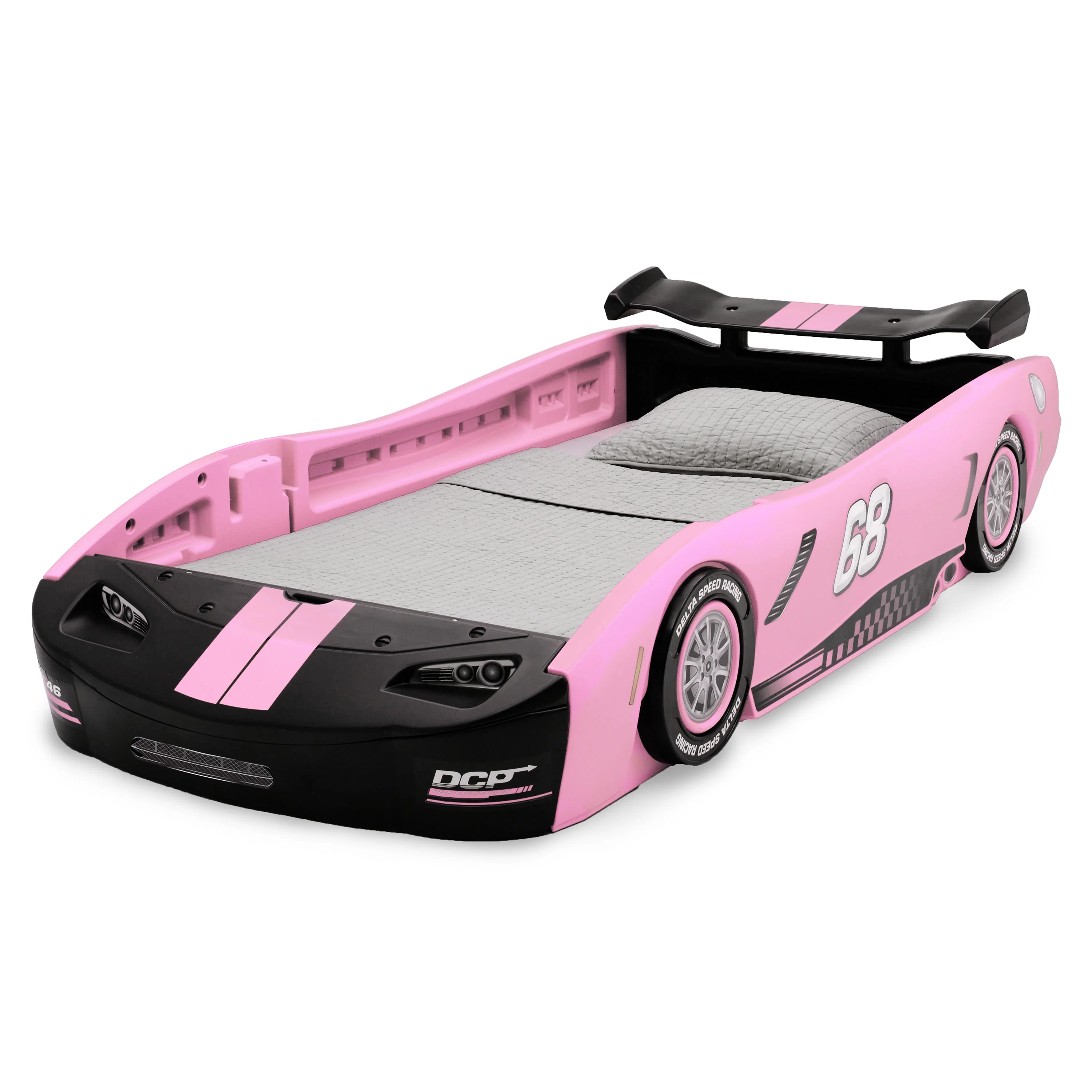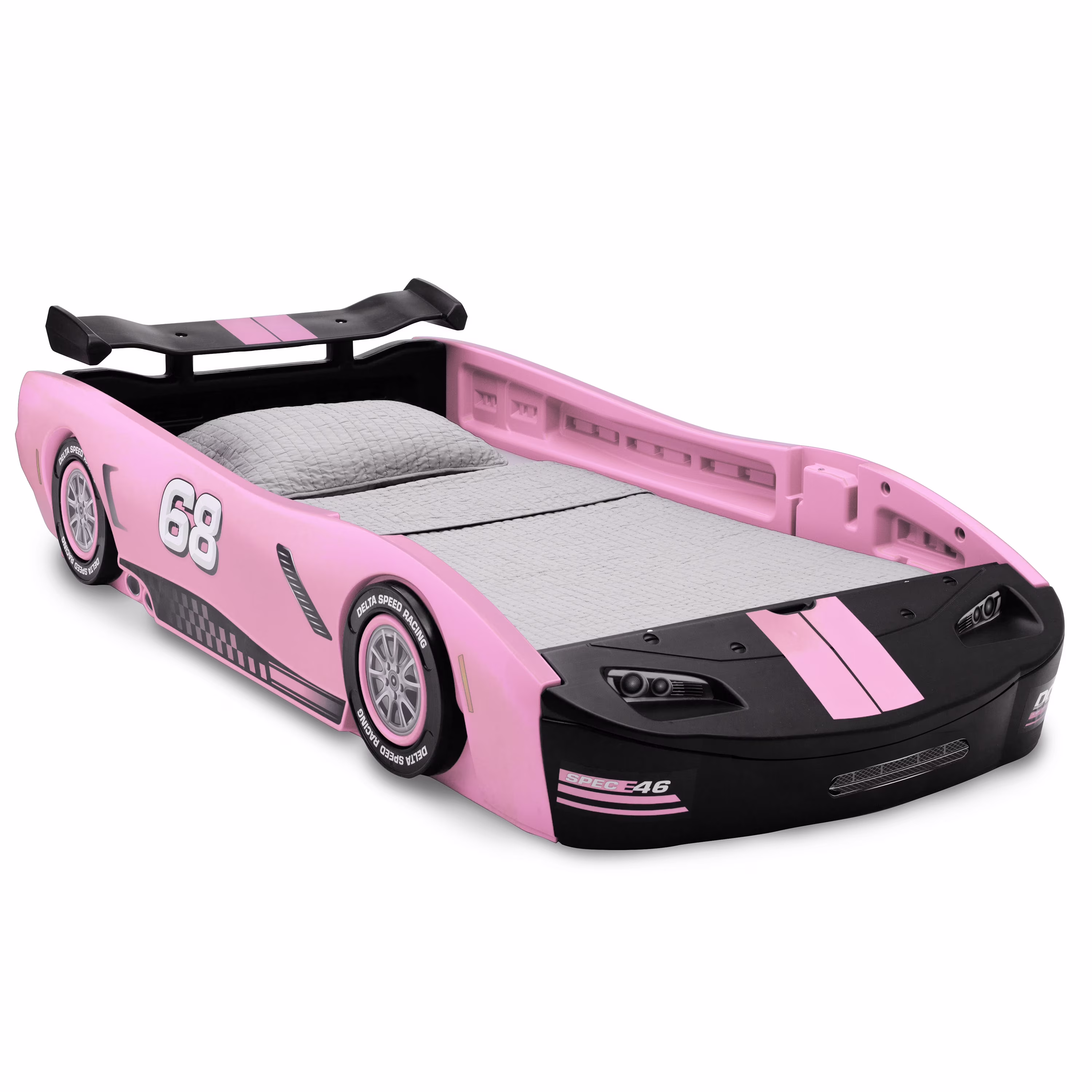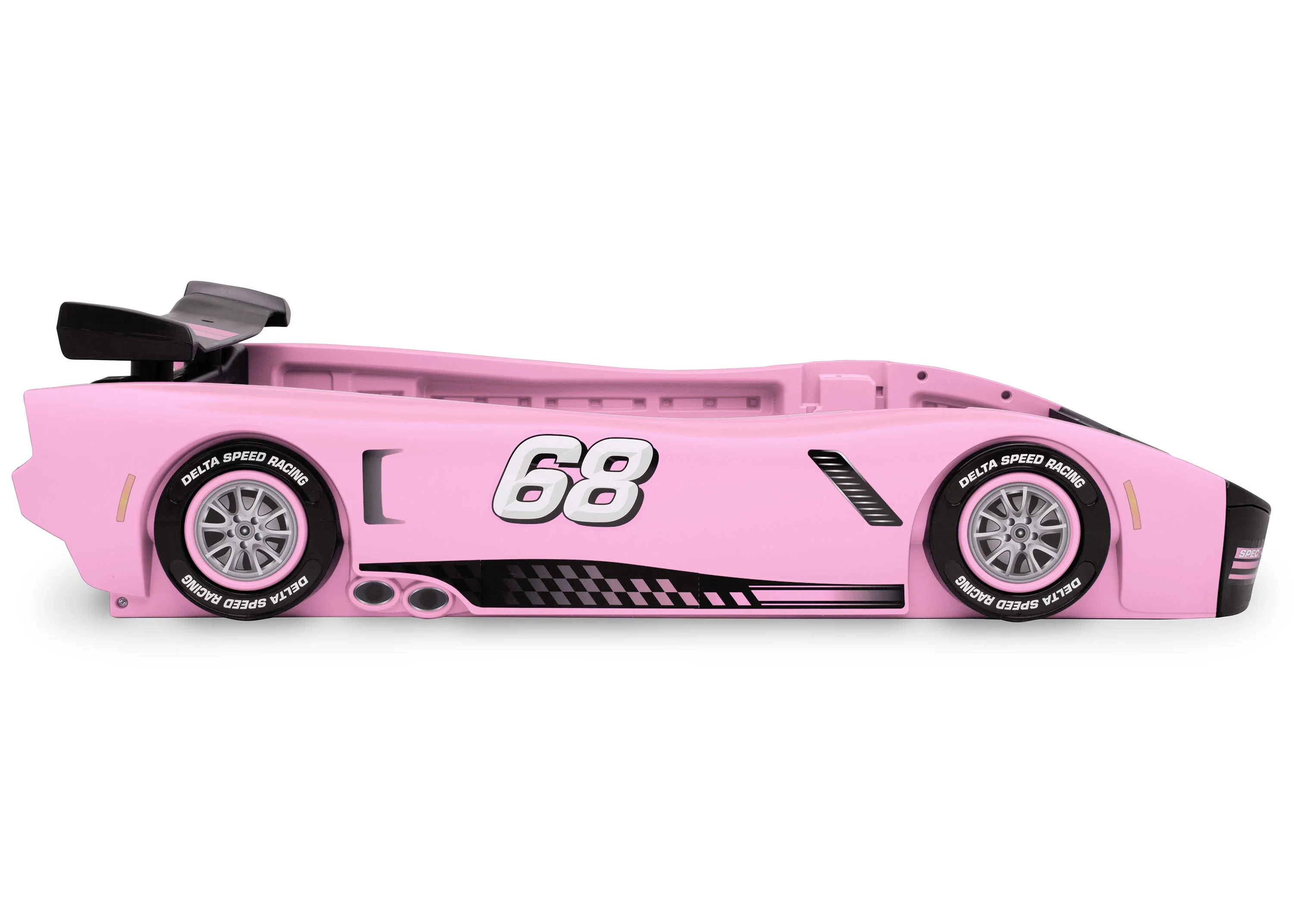 Sweet dreams are just around the corner with the Turbo Race Car Twin Bed from Delta Children! Designed to resemble a classic race car, fun details include a rear spoiler, a front grill, and racing tires with chrome-colored rims. Made of durable molded plastic and decorated with cool decals, this sleek bed will kick any car-themed room into high gear for years to come. The high sides of the race car act as secure guardrails and allow kids of all ages to easily enter and exit the bed. Perfect for any child who dreams of racing cars, the Turbo Race Car Twin Bed from Delta Children will have your little one speeding off to sleep each and every night.