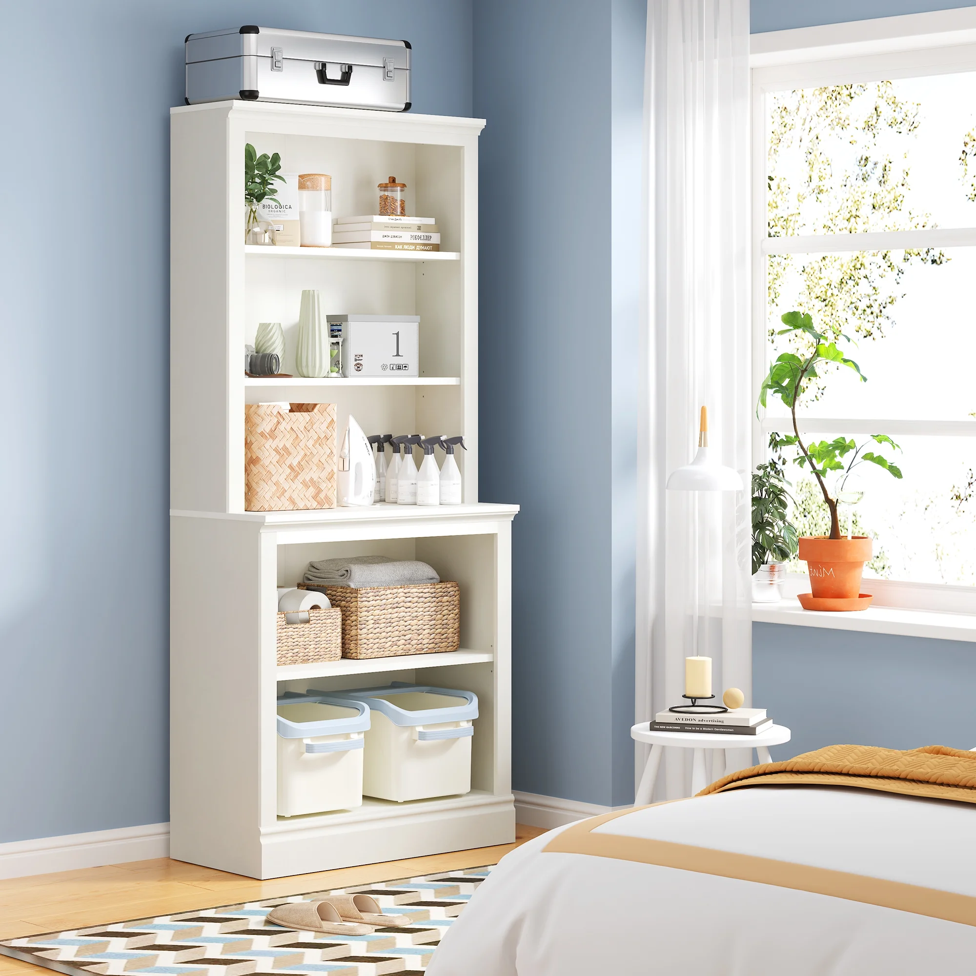 Bevfint 72" Tall Bookcase, White Large Floor Standing Bookshelf, 5 Tier Shelves Open Storage Organizer, Book Case for Living Room Hallway Kitchen Home Office Bedroom, White - 5 Tier