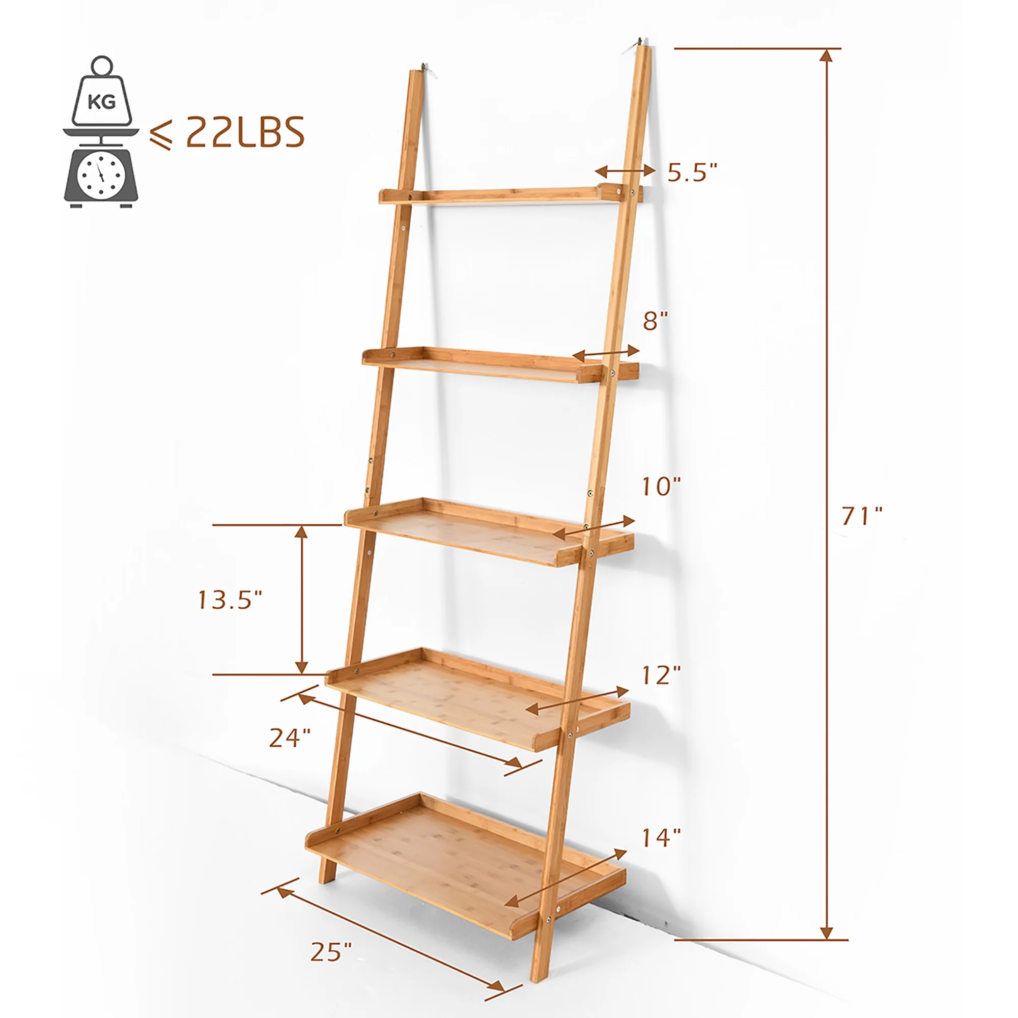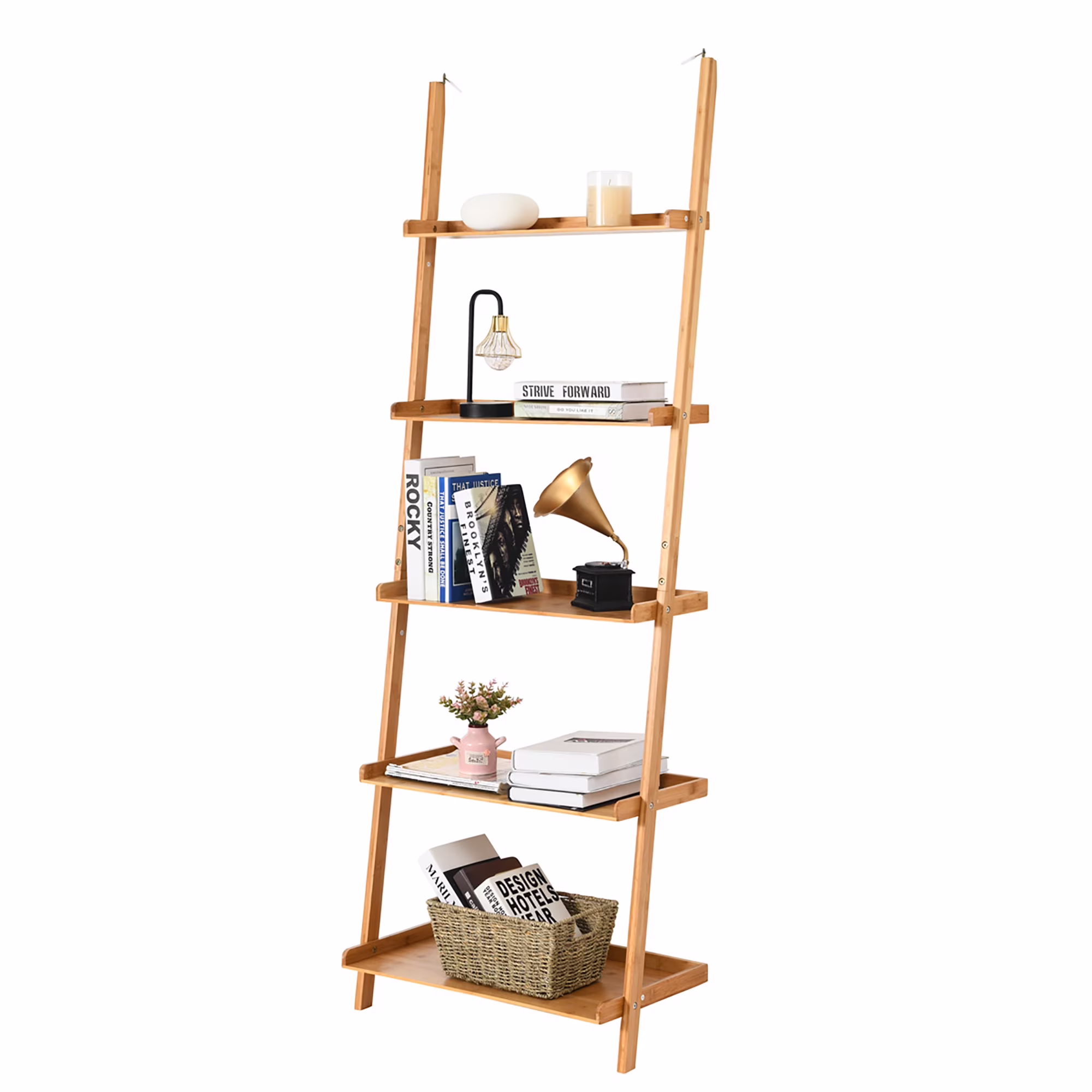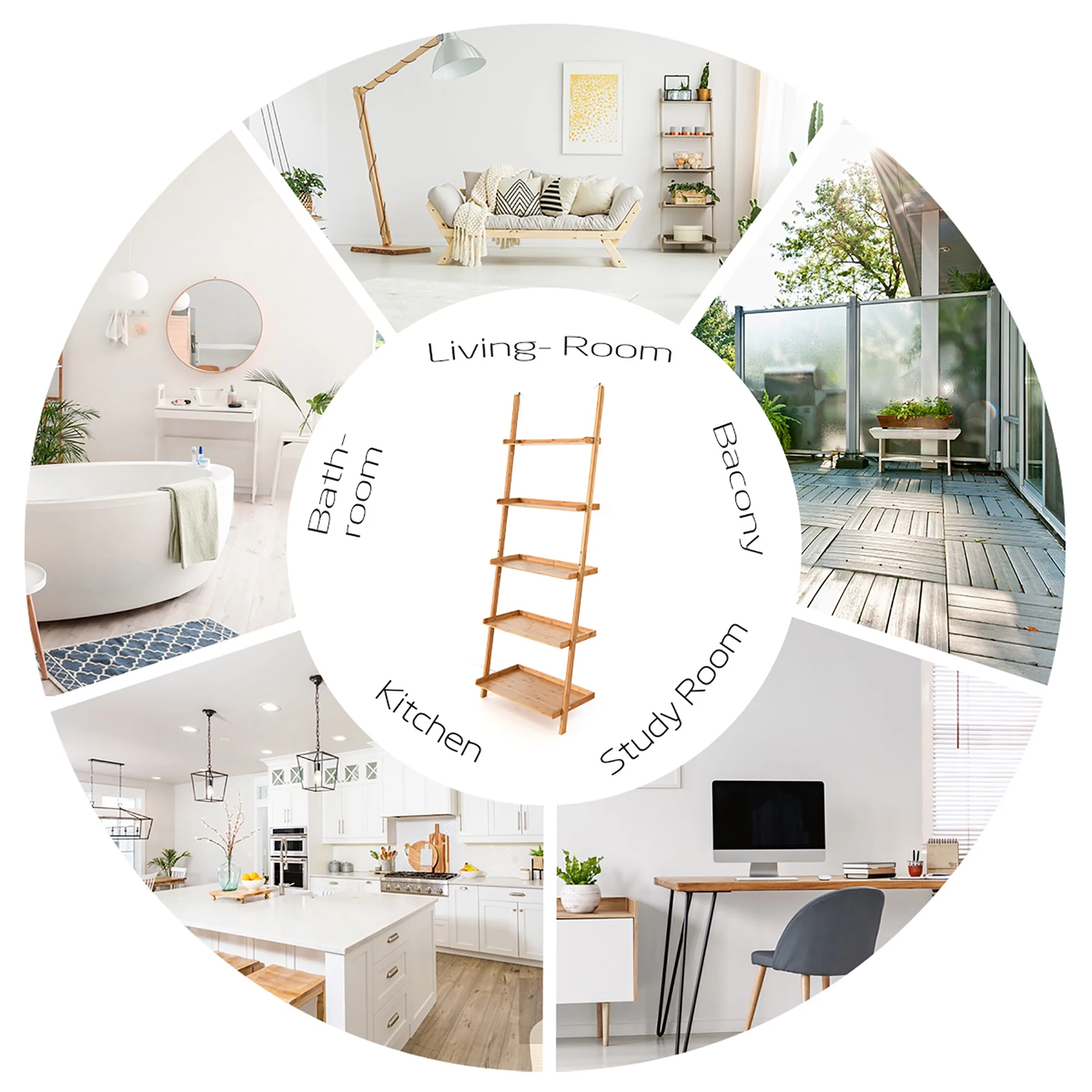 - 5 Shelves with Large Space: Equipped with 5 open storage shelves, the ladder rack max imizes the vertical storage space and provides plenty of storage space for your daily display items. And the edges of each shelf are raised to prevent items from falling off the shelves.