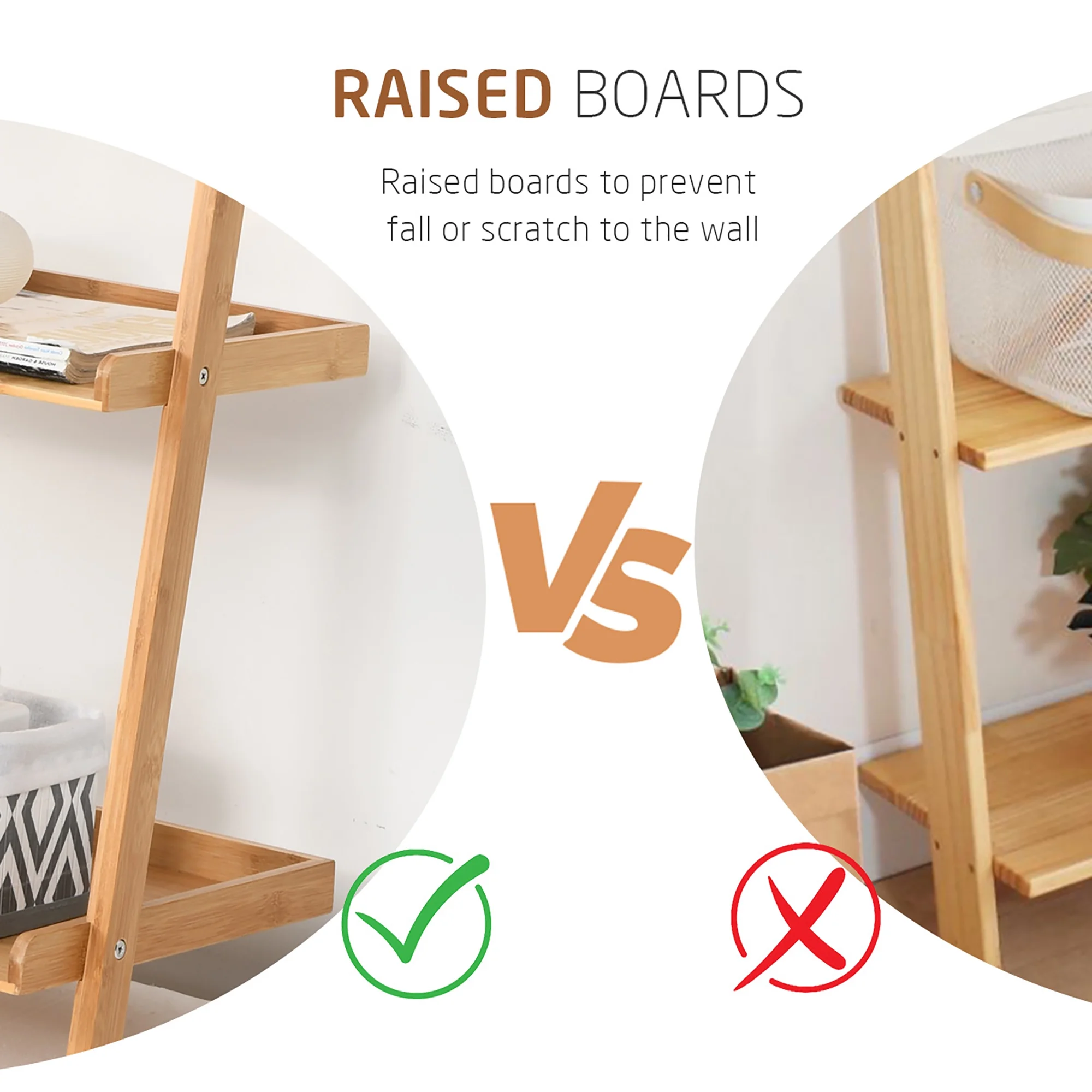 - Premium Bamboo Material: Made of natural bamboo, the ladder shelf is sturdy for long time use. Additionally, the ladder shelf is waterproof and lightweight. And the parts of display shelf are fix ed with high quality non-rusty screws to add load capacity.