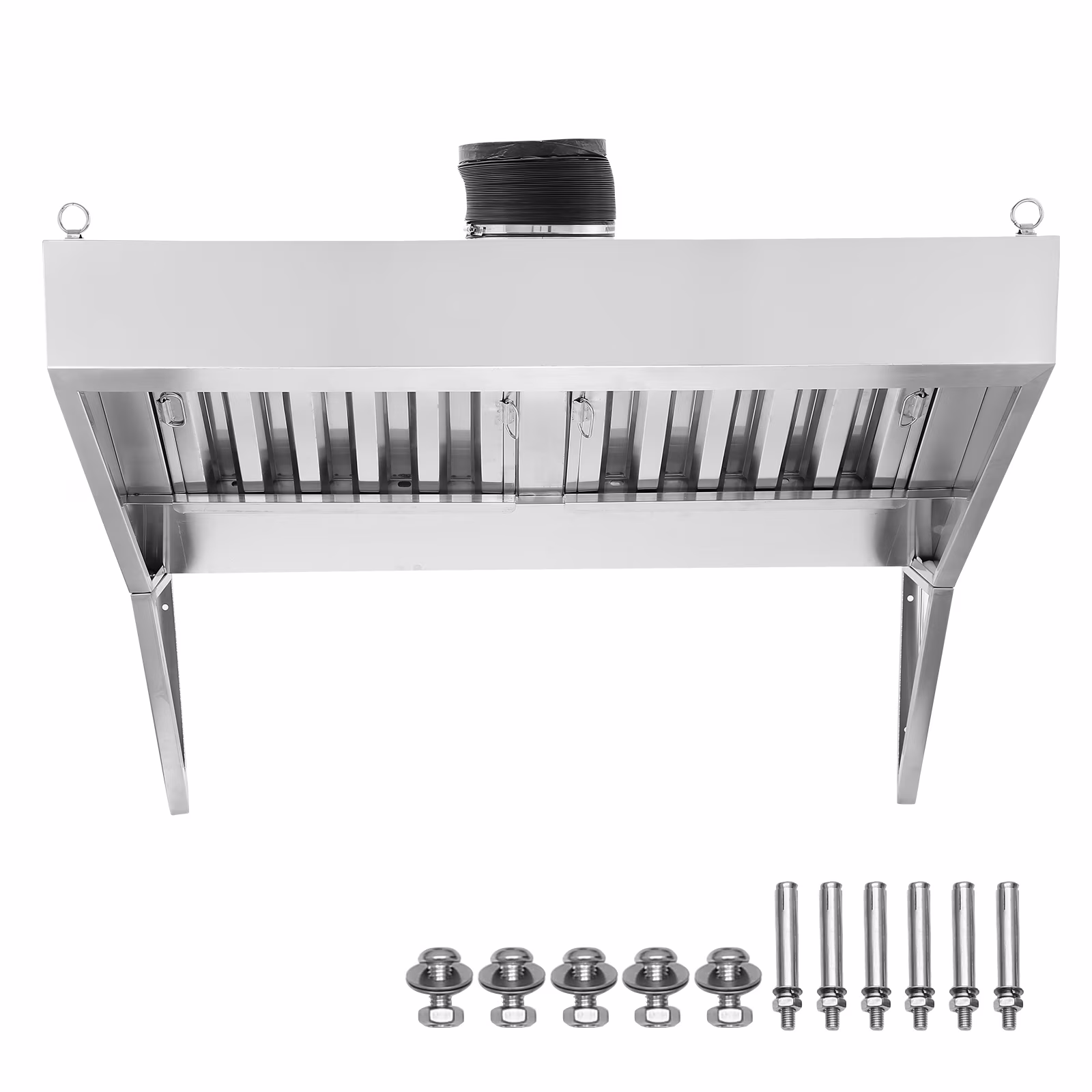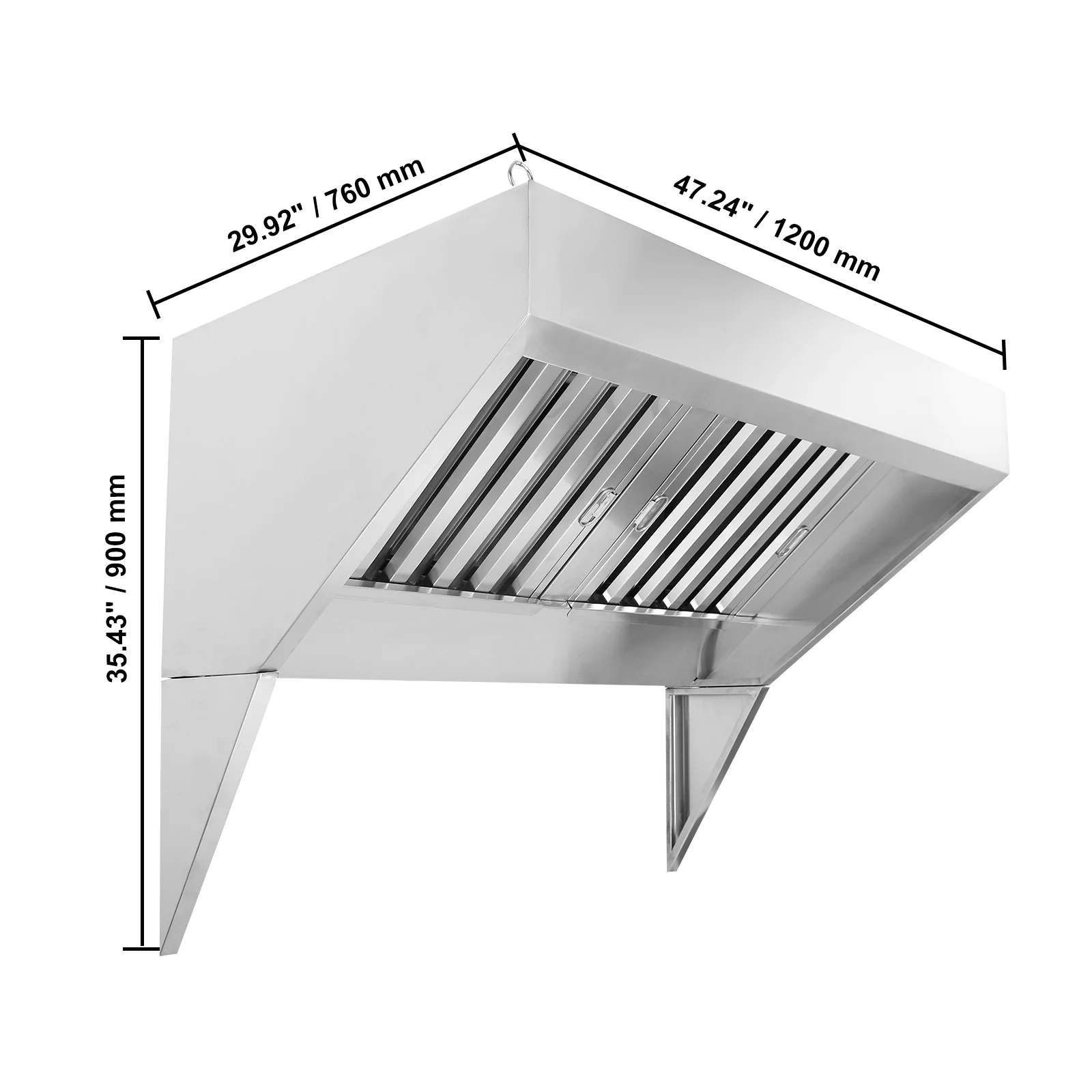 - Effortless Cleaning: Say goodbye to cloudy smoke with the KFFKFF commercial exhaust hood. This range hood comes with 2 additional locking smoke triangles for optimal smoke capture. With a spacious 47.24 inches, it can accommodate multiple cooktops at once while preventing fumes from spreading. Enjoy a clean and fresh kitchen atmosphere.