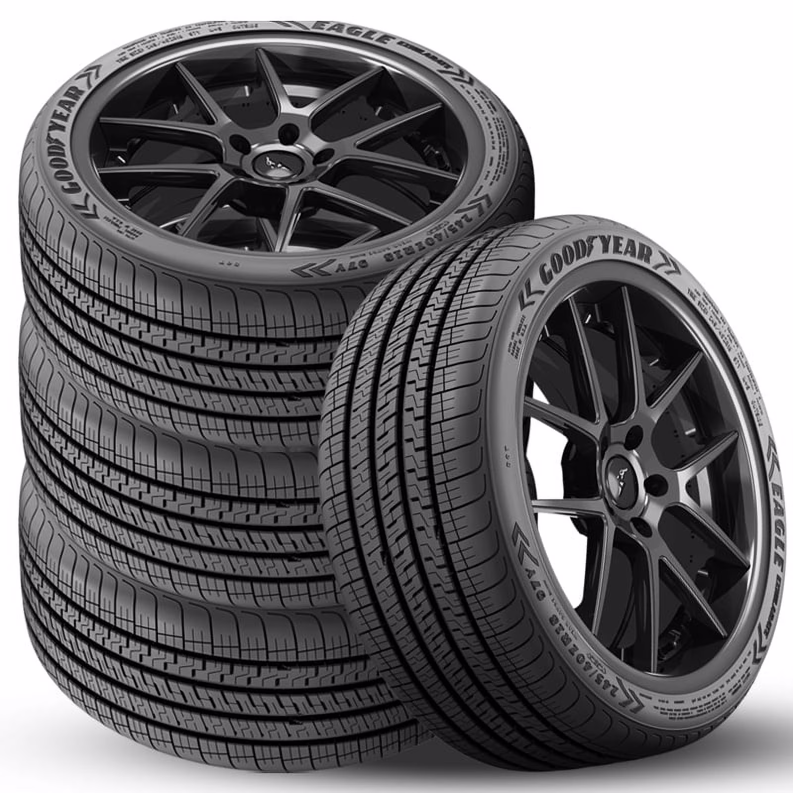 - The Eagle Exhilarate molds an all-season compound into an asymmetric, five-rib tread pattern. Goodyear's ActiveGrip Technology ensures even pressure distribution in the footprint, and ActiveBraking Technology uses an innovative tread block design to increase contact with the road during hard braking, resulting in enhanced handling and braking traction in dry and wet conditions. Backed by a limited 45,000 miles treadwear warranty.
