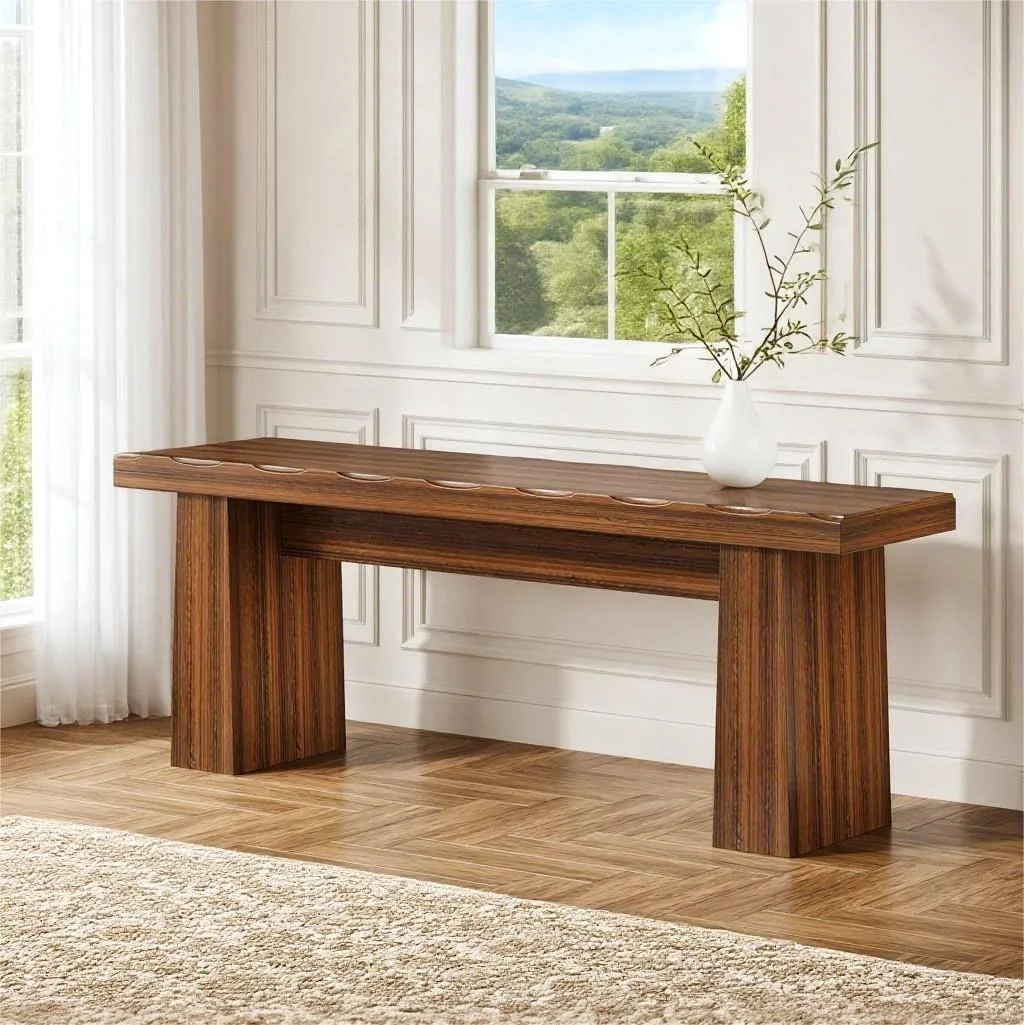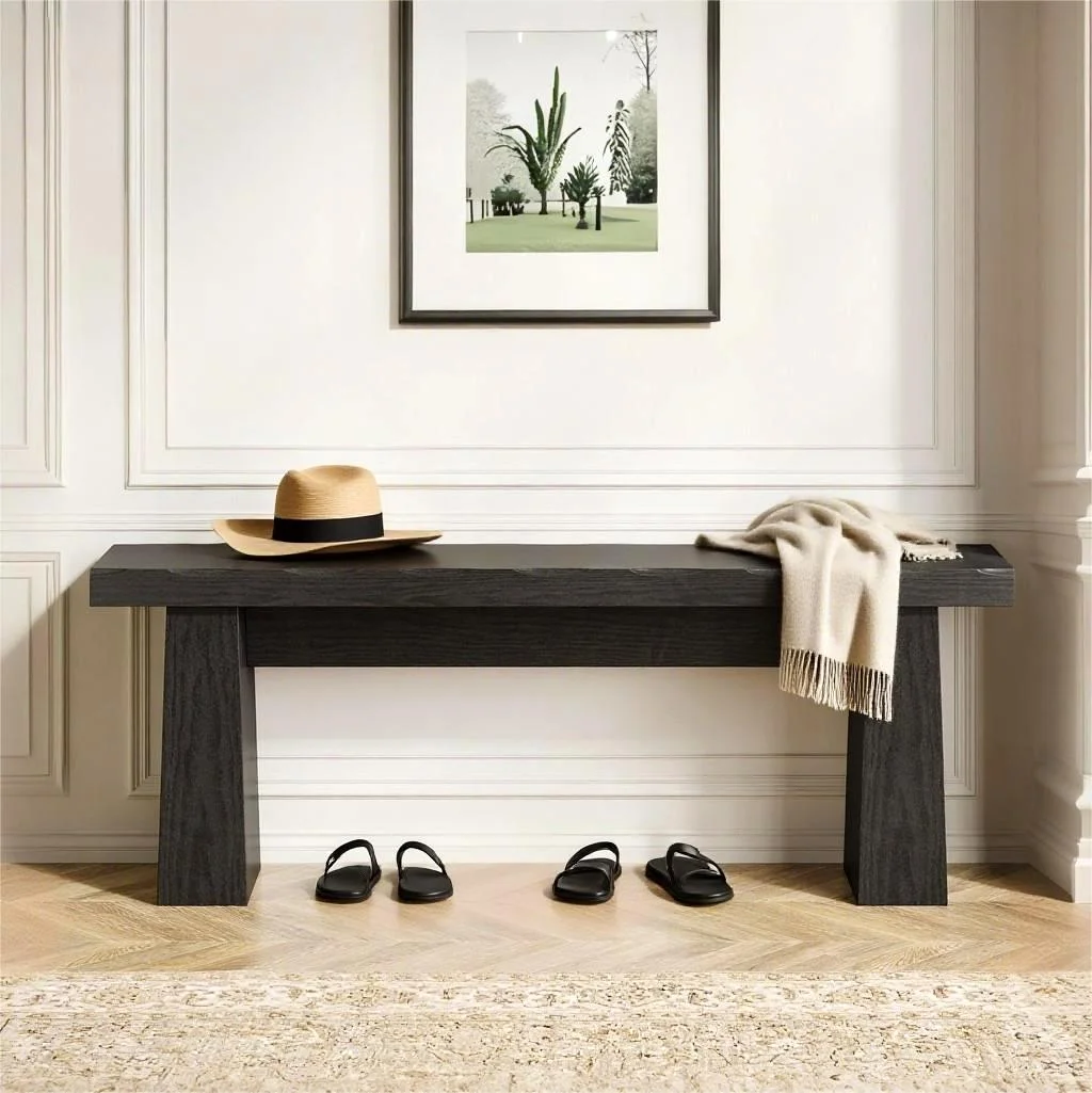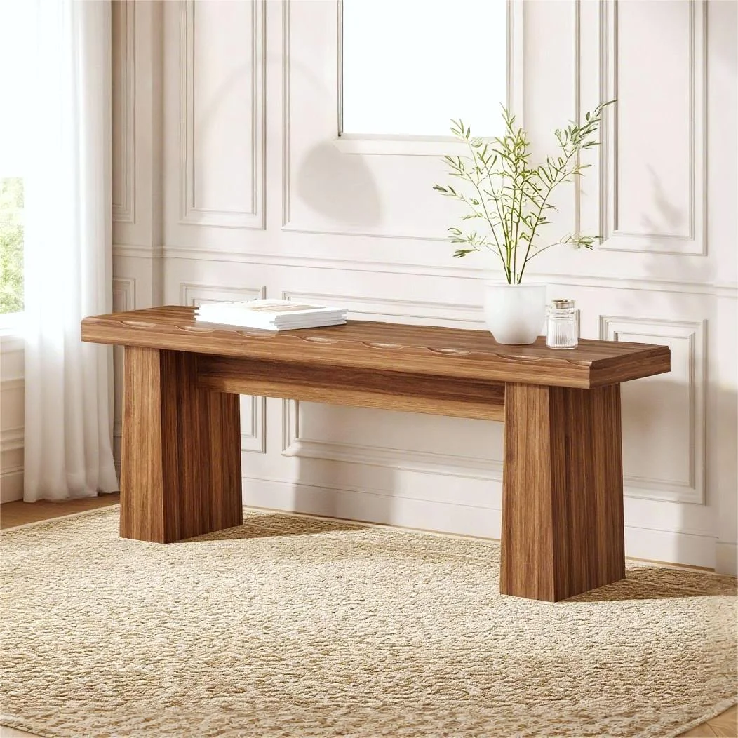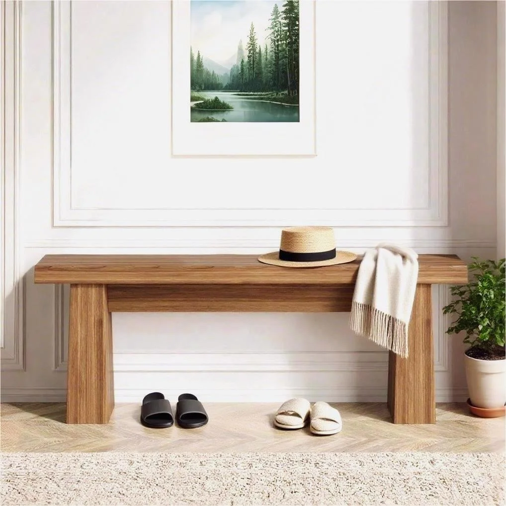 - Its design makes it suitable for a wide range of settings. In an entryway, it serves as a convenient shoe bench for putting on or taking off shoes. An outdoor garden provides a rustic garden bench seating option for enjoying the scenery. In living rooms or dining rooms, it can act as additional seating during gatherings, while in hallways, it adds both functionality and style as a streamlined bench seat.