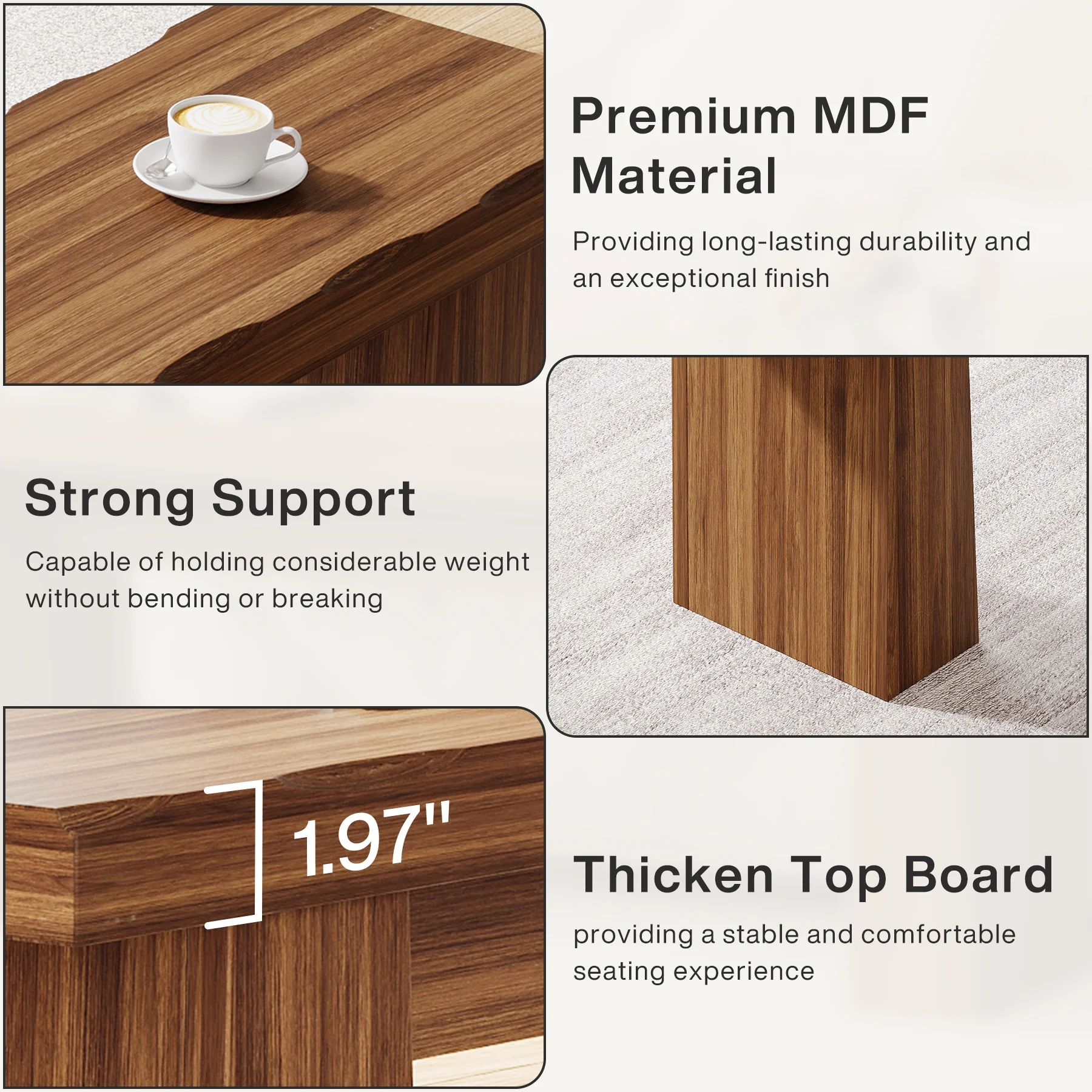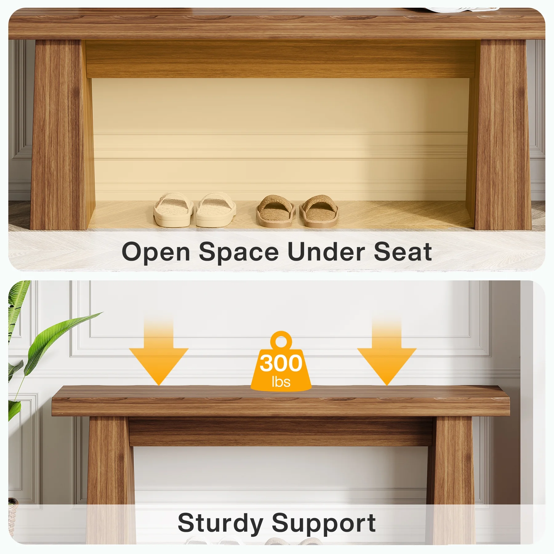 - Thanks to its robust construction with legs that are 10.24 inches wide at the base and 3.74 inches wide at the top, and 3.94 inches in height between the top of the leg and the seat surface, this bench offers reliable stability and a robust load - bearing capacity of up to 300 pounds. It can comfortably support the weight of multiple people, making it a durable choice for benches for bedroom, entry areas, or outdoor gatherings.