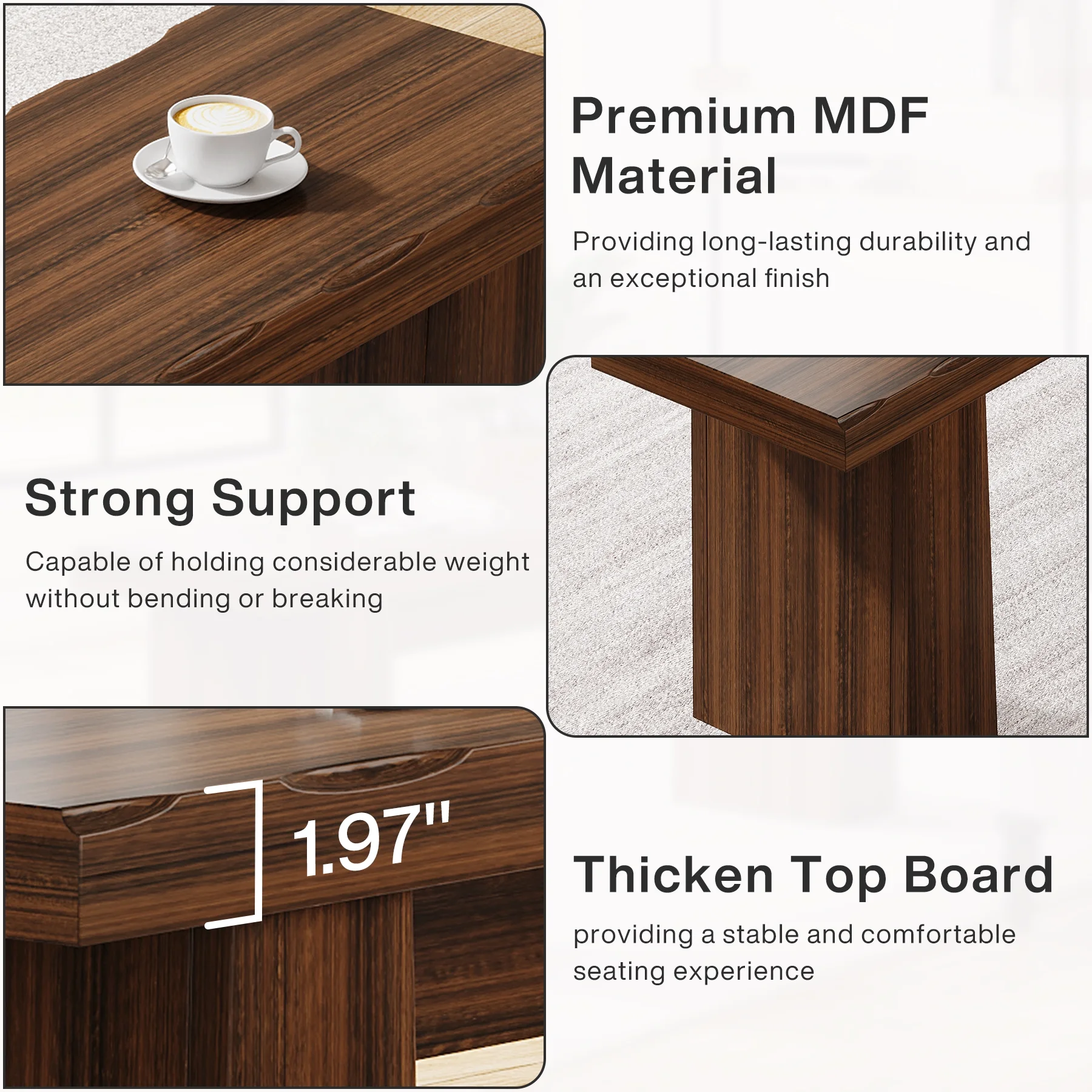 - Constructed from premium wood, this indoor bench/outdoor bench boasts excellent durability and a natural aesthetic. The wood's rich, dark brown finish not only enhances its visual appeal but also provides a layer of protection against wear and tear, suitable for both indoor and outdoor environments.