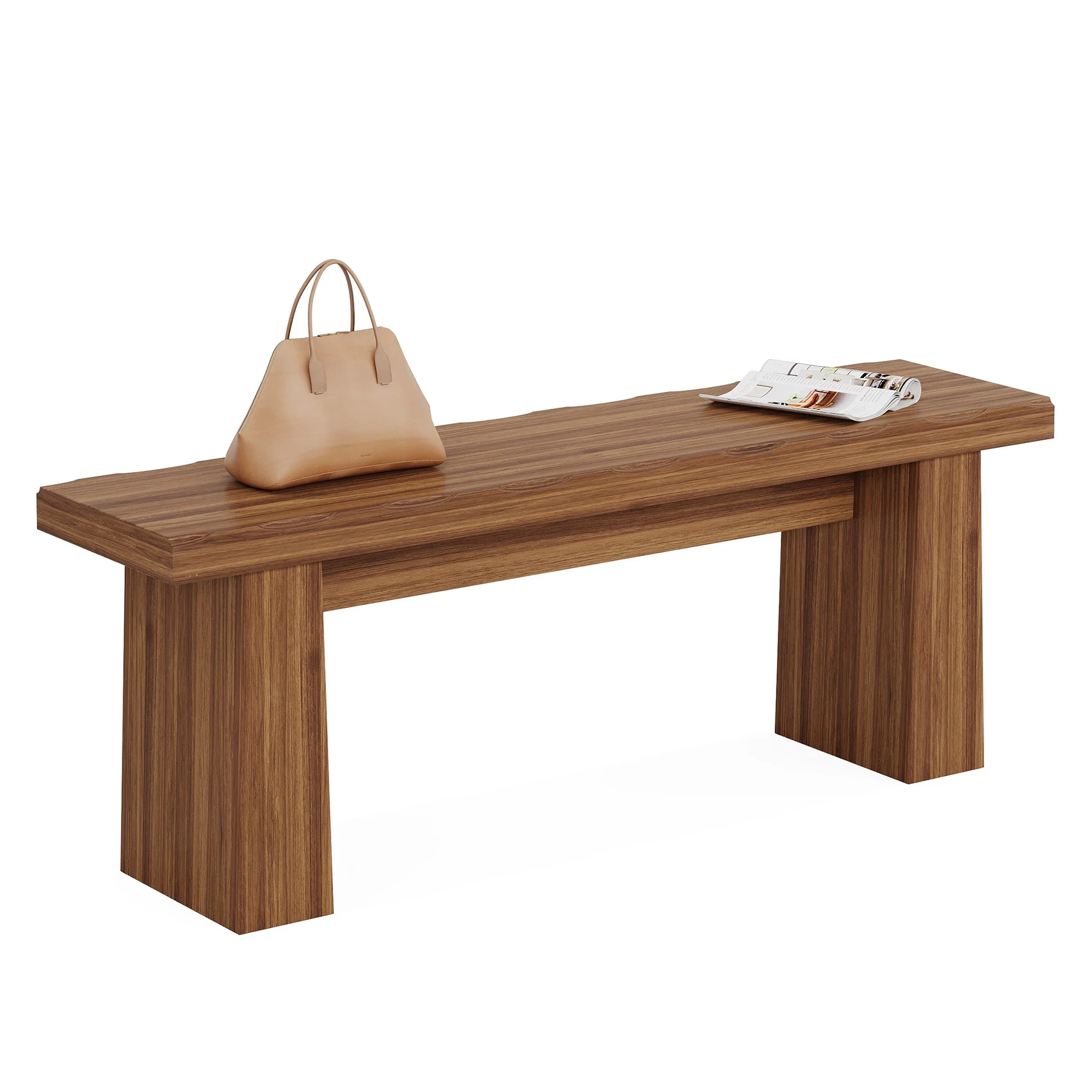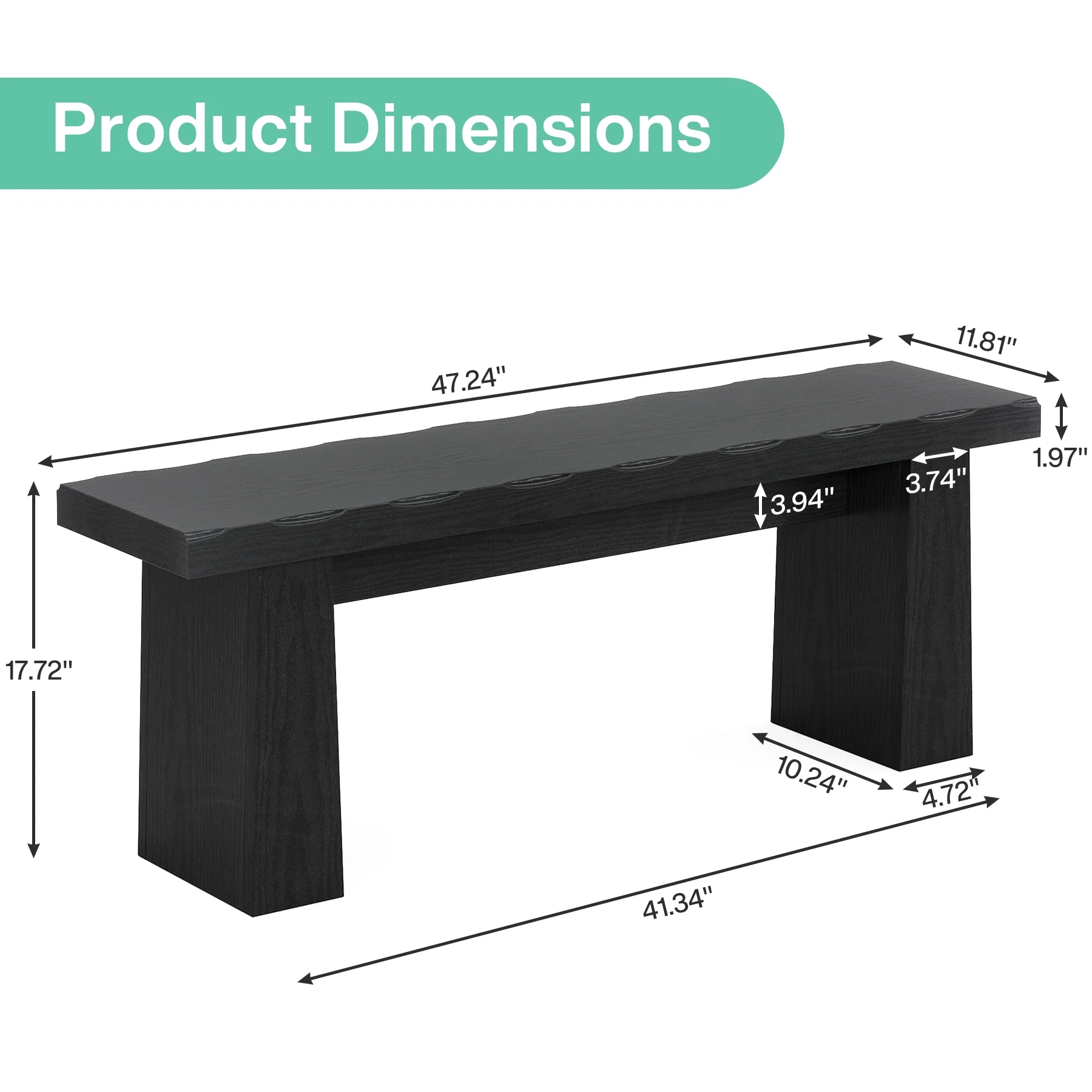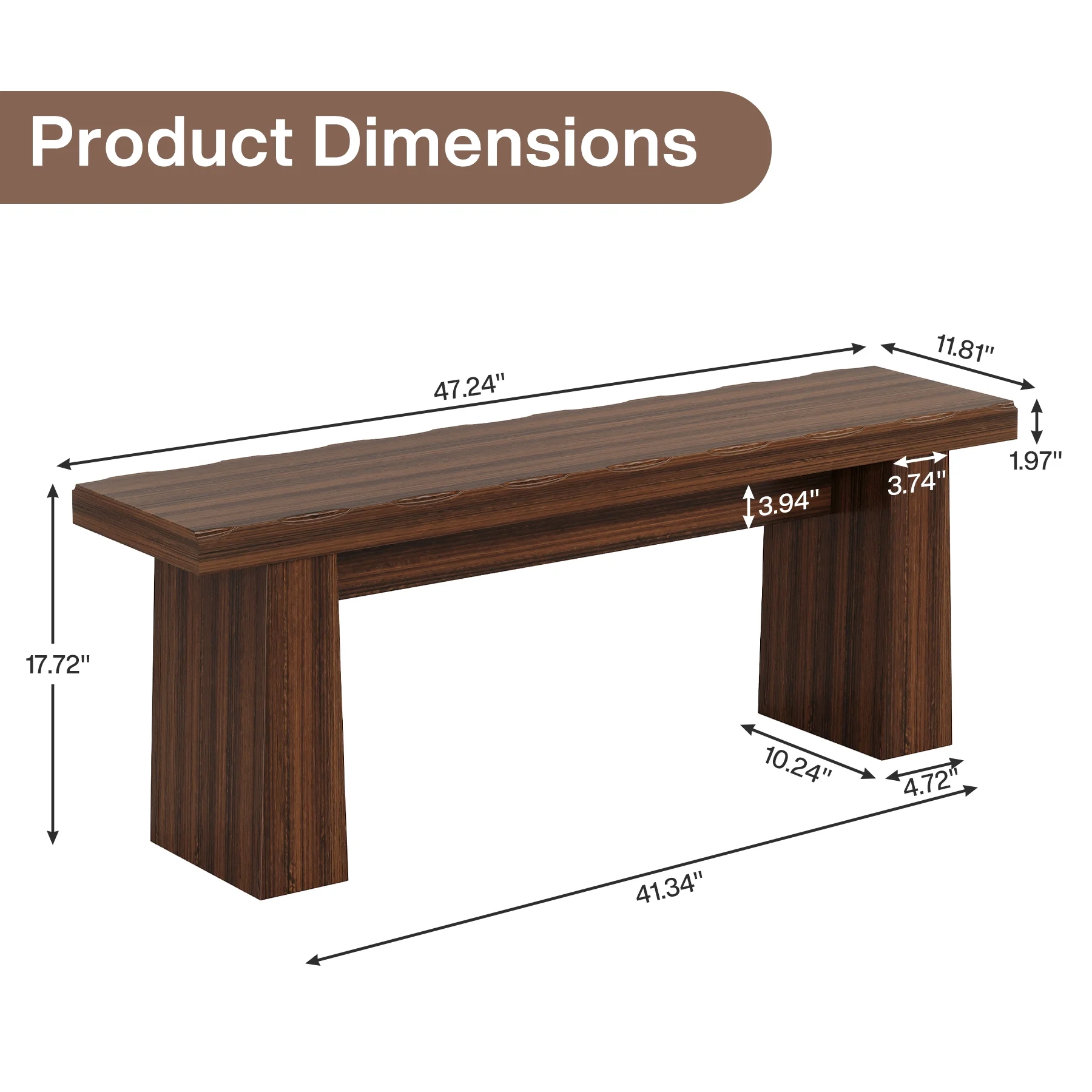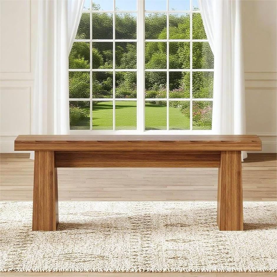 - This wood bench showcases a simple and uncluttered silhouette, with clean lines and a backless structure. Measuring 47.24 inches in length, 11.81 inches in width, and 17.72 inches in height, its dimensions make it a versatile addition to various spaces. Whether it's an entryway, garden, living room, dining room, or hallway, its streamlined form easily blends with different decor styles, adding a touch of modern charm without overwhelming the space.