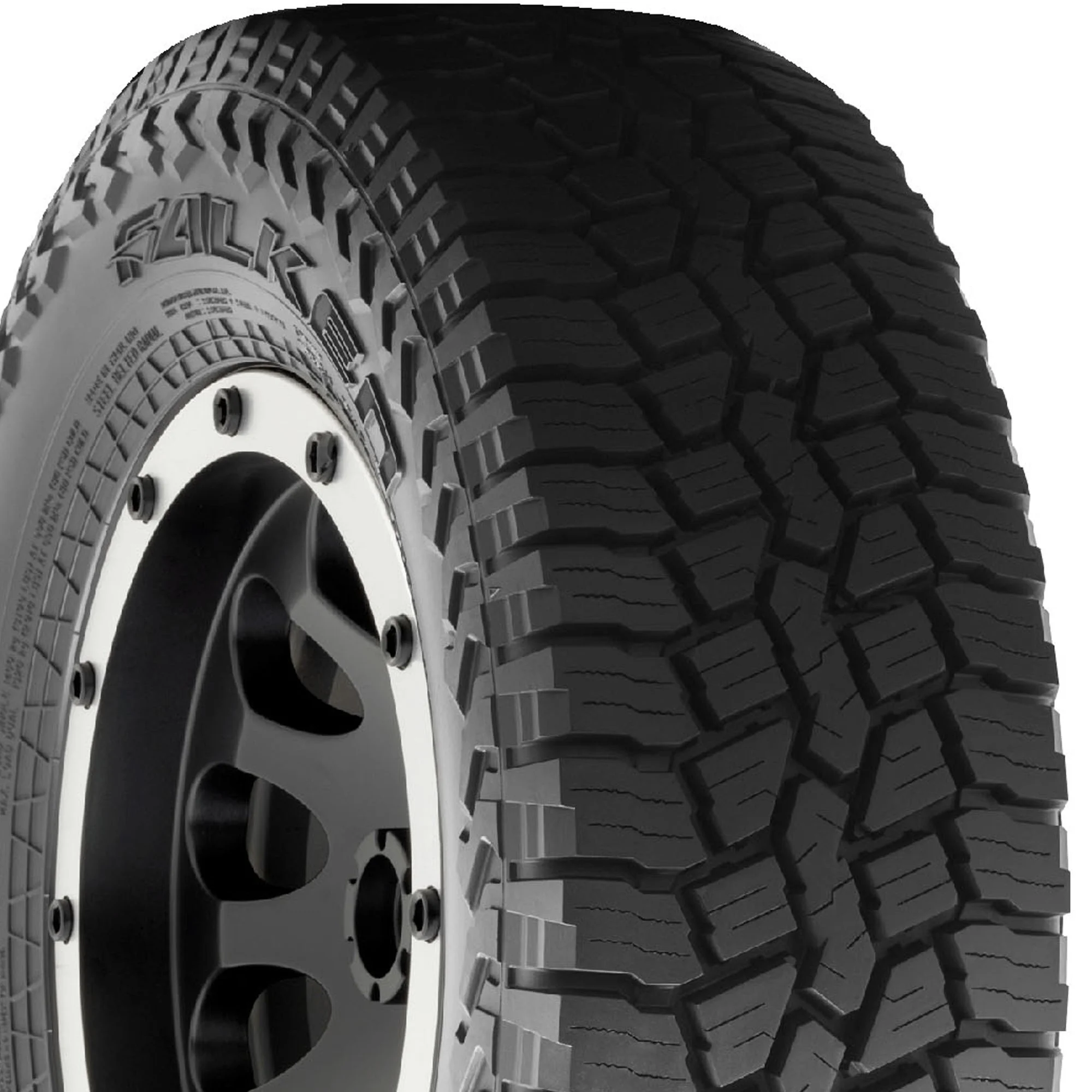 The Rubitrek A/T from Falken is an all-terrain tire that's built for every adventure, with an aggressive all-terrain tread pattern that has a class-leading 19/32" tread depth for reliable grip in mud, snow, sand, and gravel. Heat-diffusing technology in the lower sidewall prolongs tire life and enhances stability (especially for towing), and the Rubitrek A/T features a tough silica-rich rubber compound for wet-weather traction and long wear. Offset shoulder blocks wrap around onto the upper sidewall for lateral traction and clawing out of ruts, and the Rubitrek A/T is protected by a 55,000 mile limited manufacturer tread life warranty.