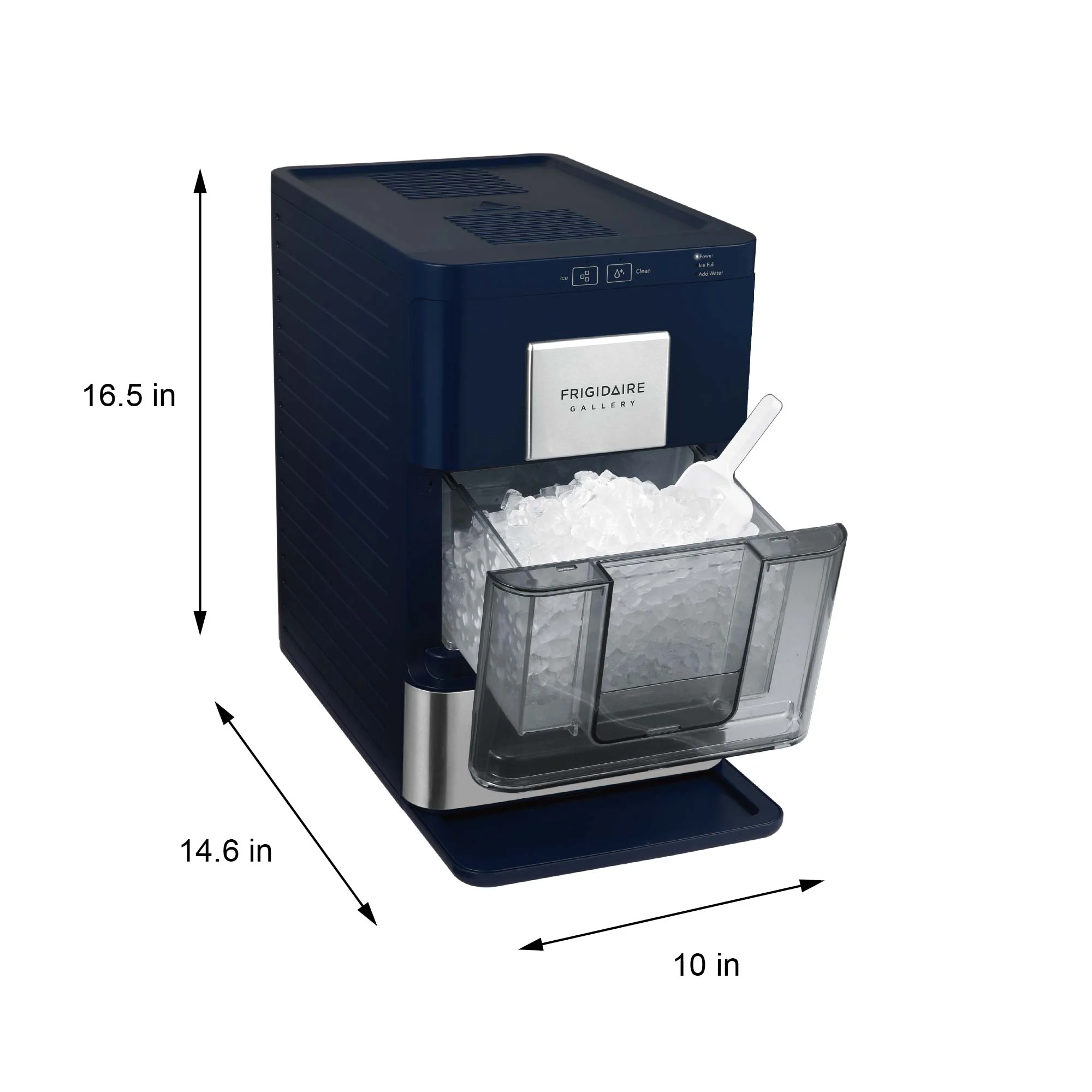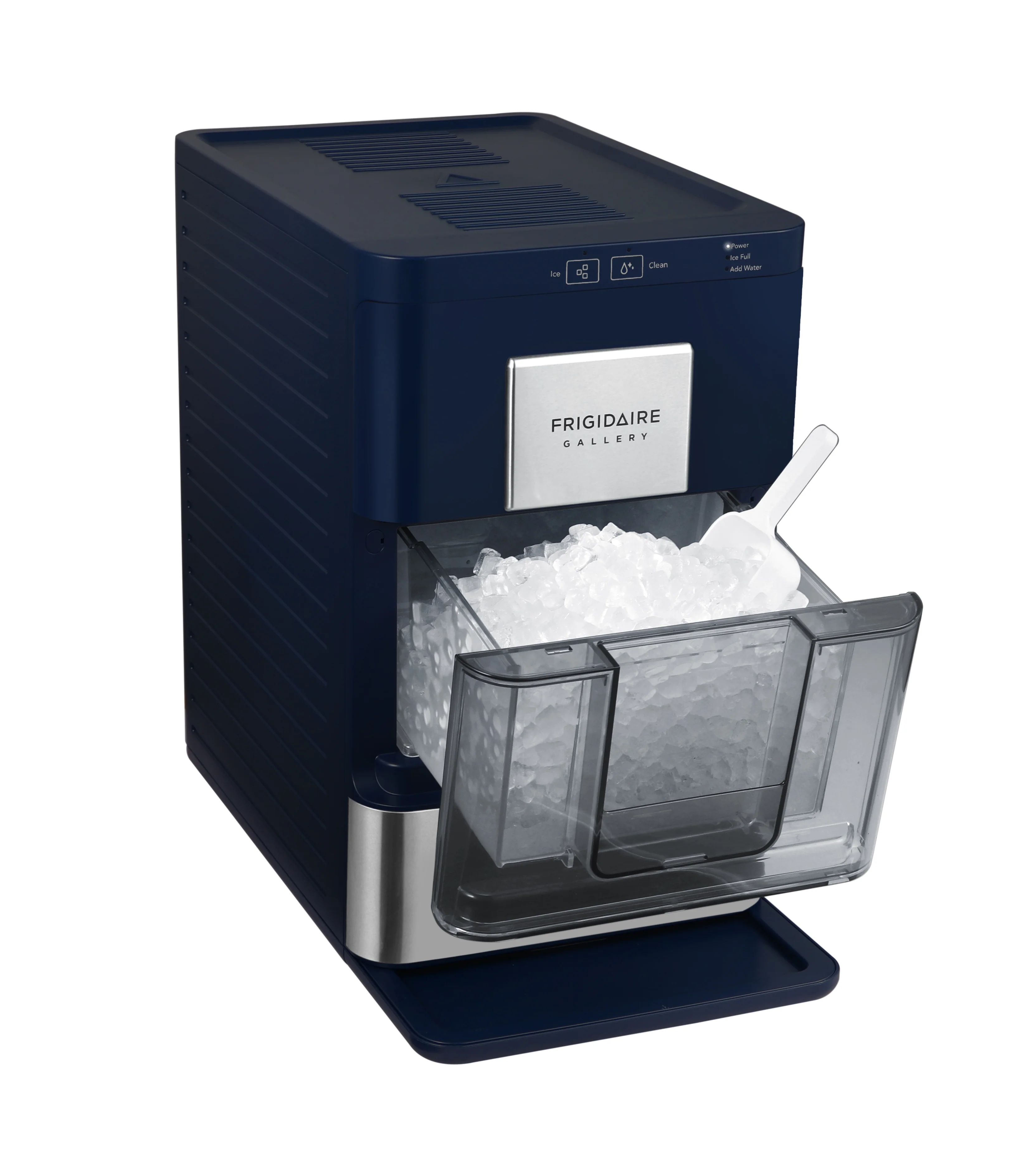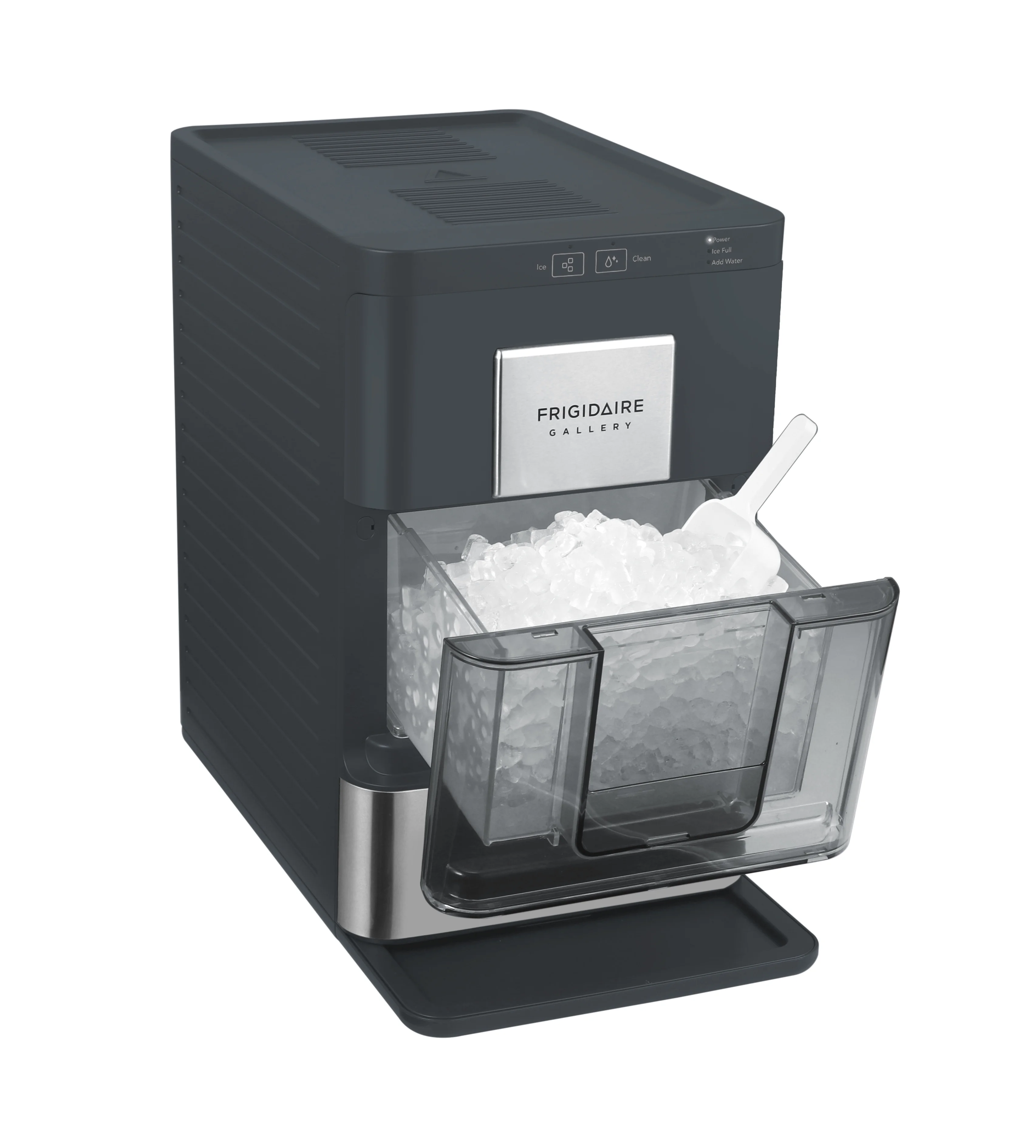 - Ice scoop included with drip tray.