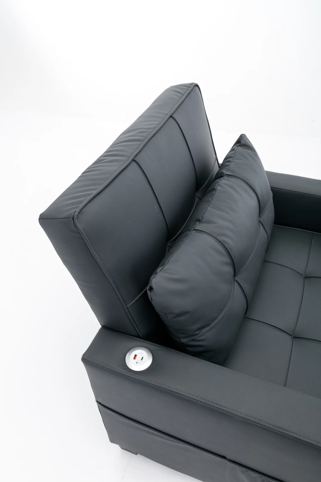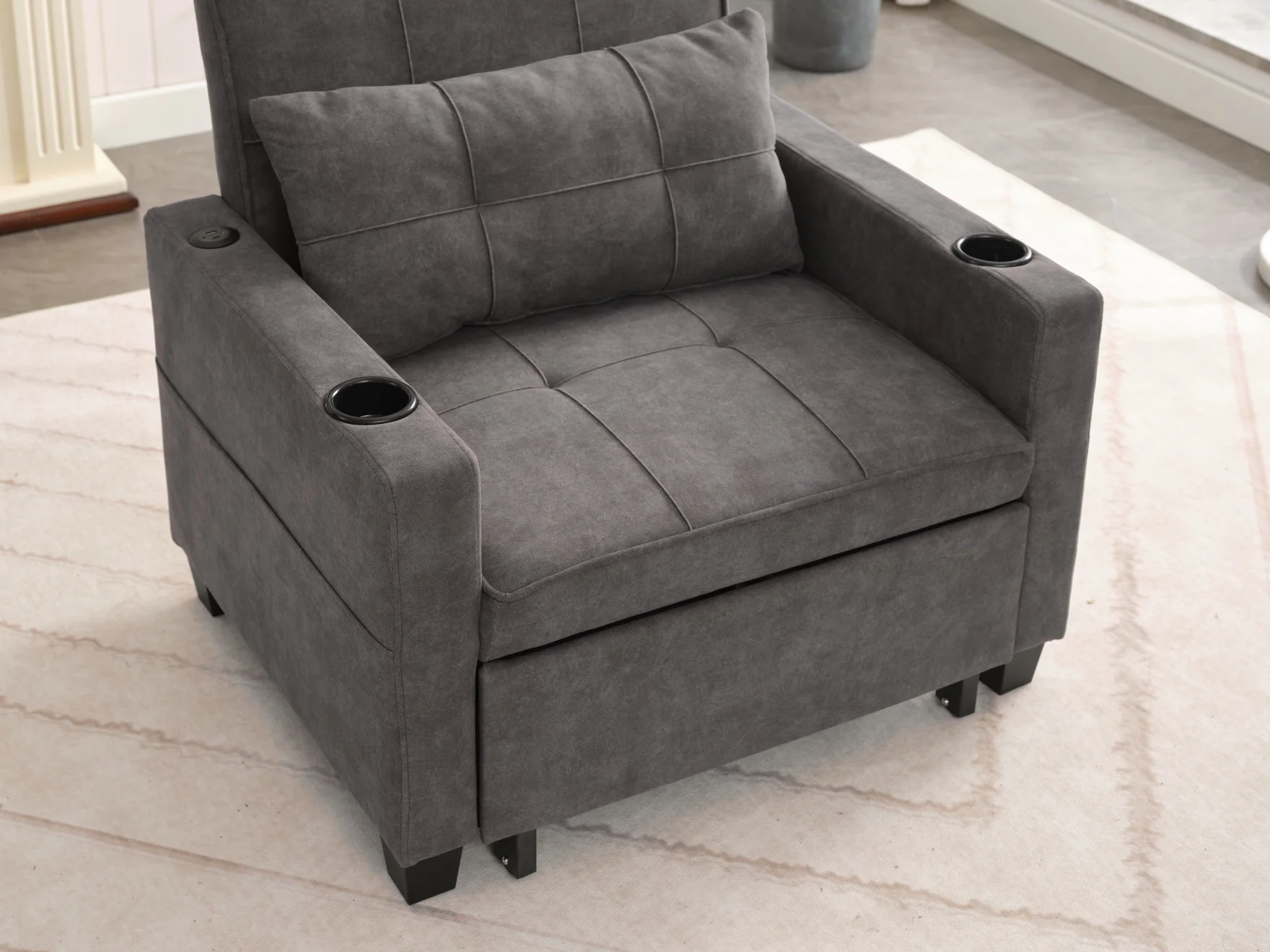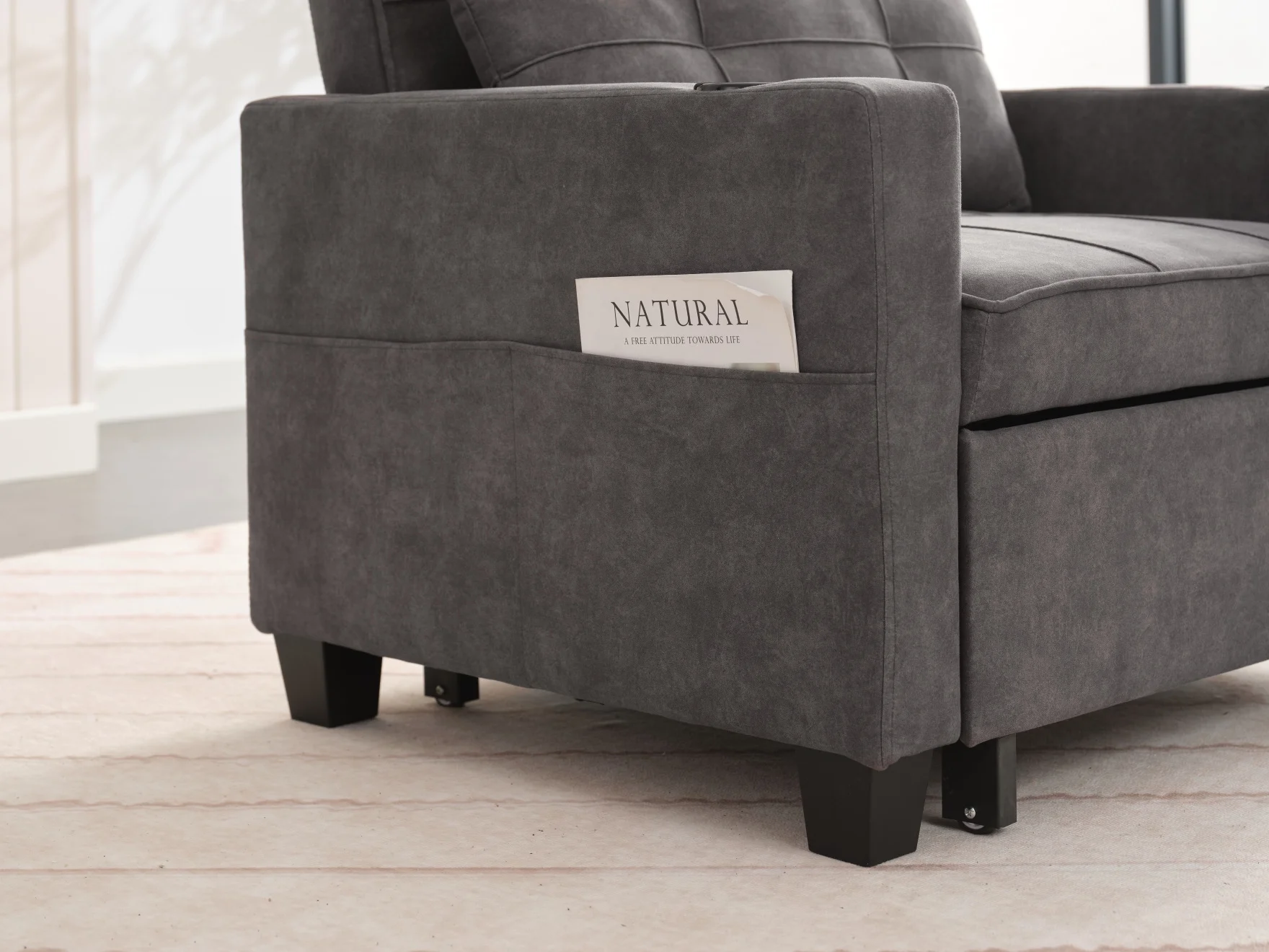 Convertible Futon Sofa Bed, 3 - in - 1 Multi - Functional Sleeper Chair Bed with USB Ports, Adjustable Backrest Recliner, for Living Room Bedroom Small Space, Tech Cloth, Dark Grey