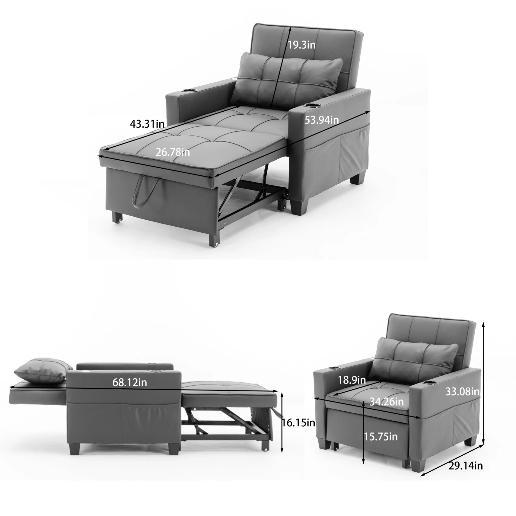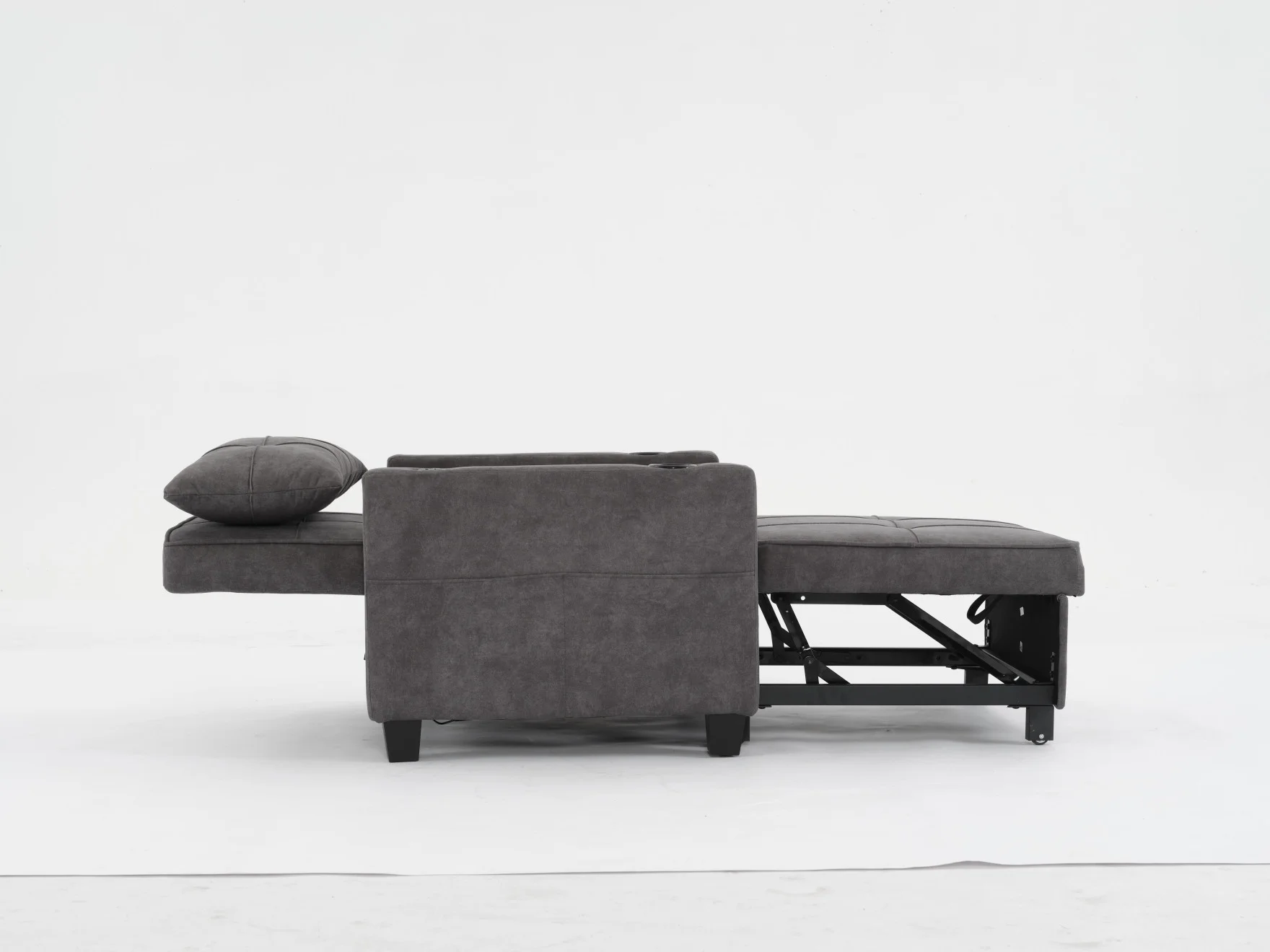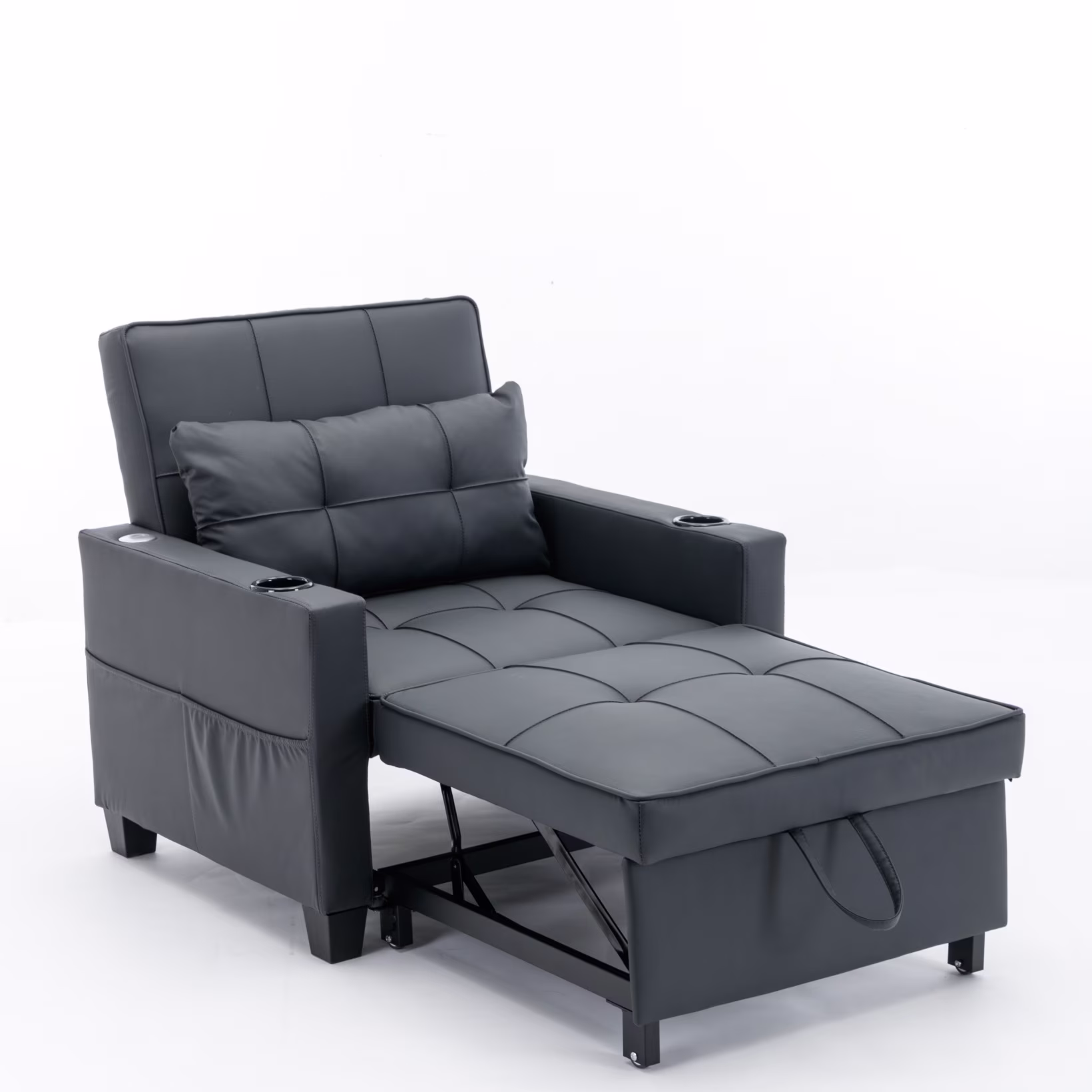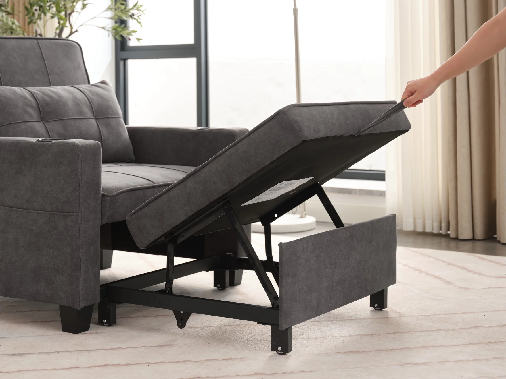Convertible Futon Sofa Bed, 3 - in - 1 Multi - Functional Sleeper Chair Bed with USB Ports, Adjustable Backrest Recliner, for Living Room Bedroom Small Space, Tech Cloth, Dark Grey