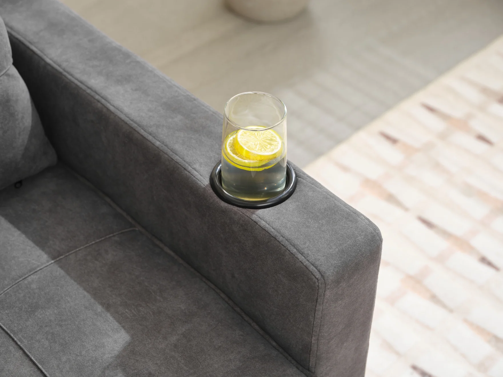 - USB AND CUP HOLDERS: There are 1 USB charging port and 1 Tapy C interface on the left armrest of the sofa for various charging cables, which can provide continuous power supply for your phone. There is a convenient cup holders design on the seat back to place drinks and cups. There are 4 side pockets and built-in cup holders to meet your daily needs.