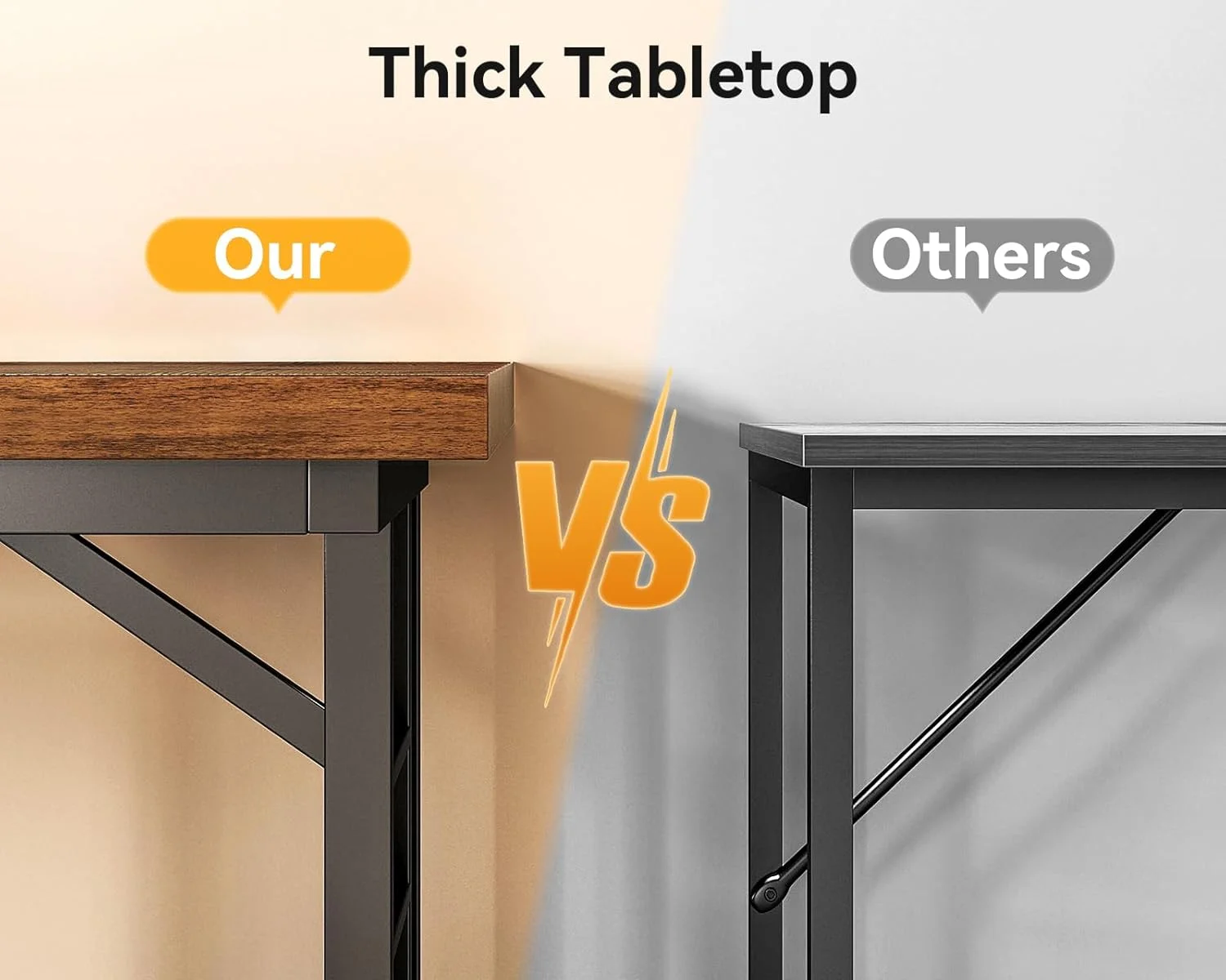 - ��Heavy-Duty, Sturdy Desk Frame for Durability��Built with a 1.37-inch thick engineered wood surface, this desk offers exceptional strength. The reinforced steel frame supports multiple monitors, printers, or heavy equipment. Adjustable leg pads keep your desk steady on uneven floors, ideal for home or writing desks.