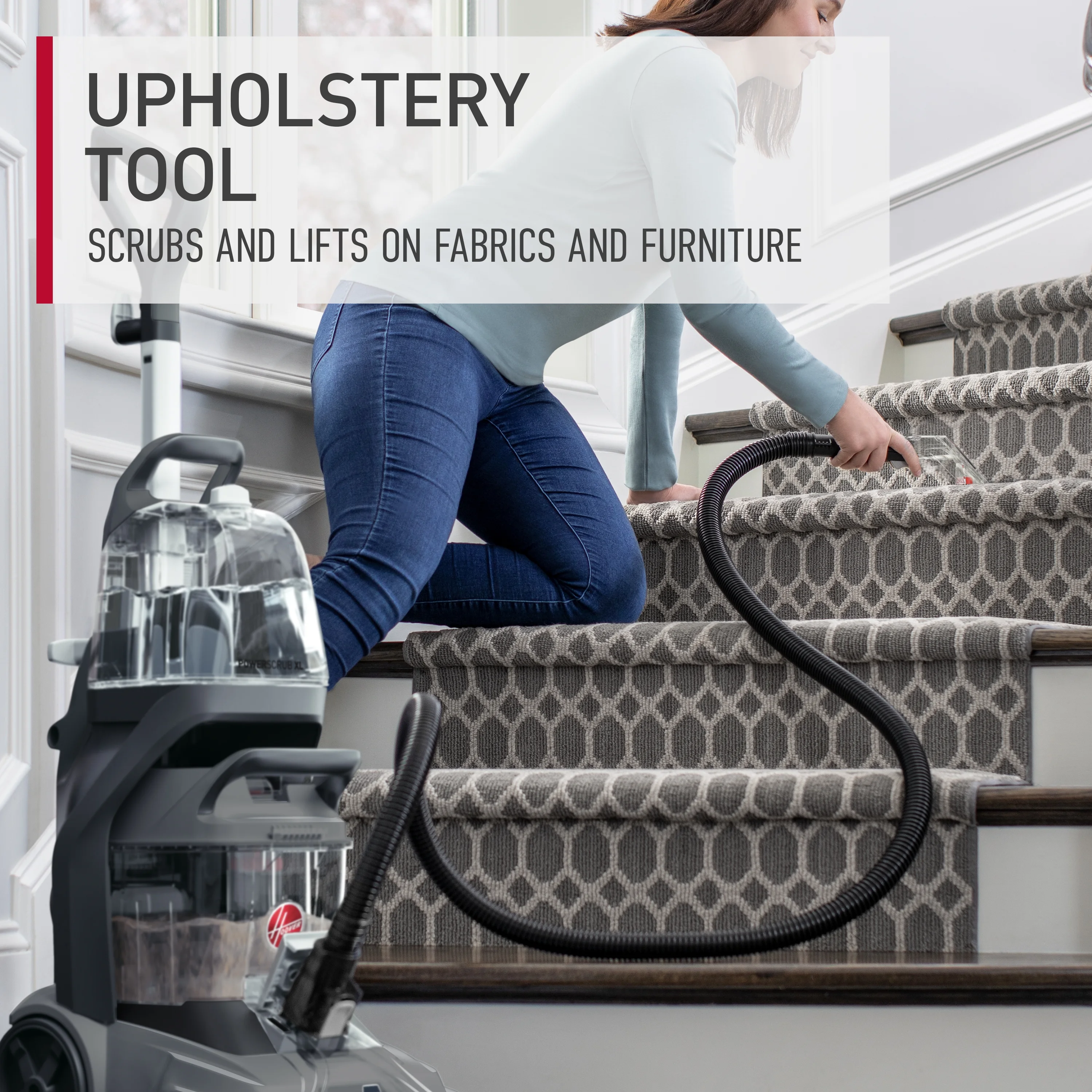 - UPHOLSTERY TOOL: Scrub and lift stains on fabrics & furniture with the Upholstery Tool