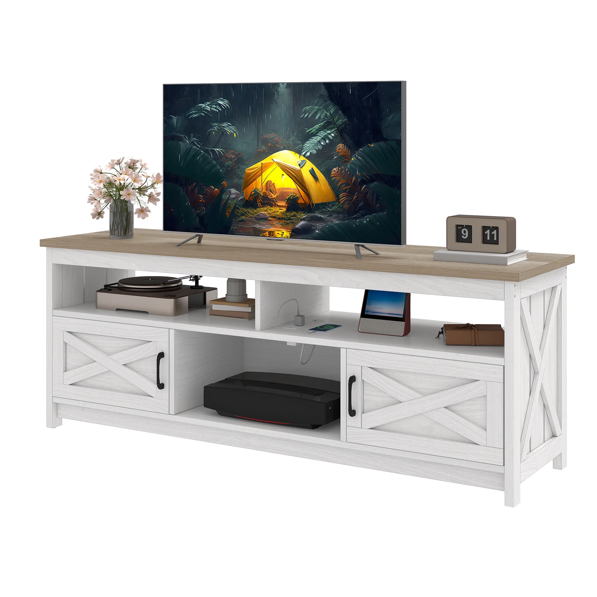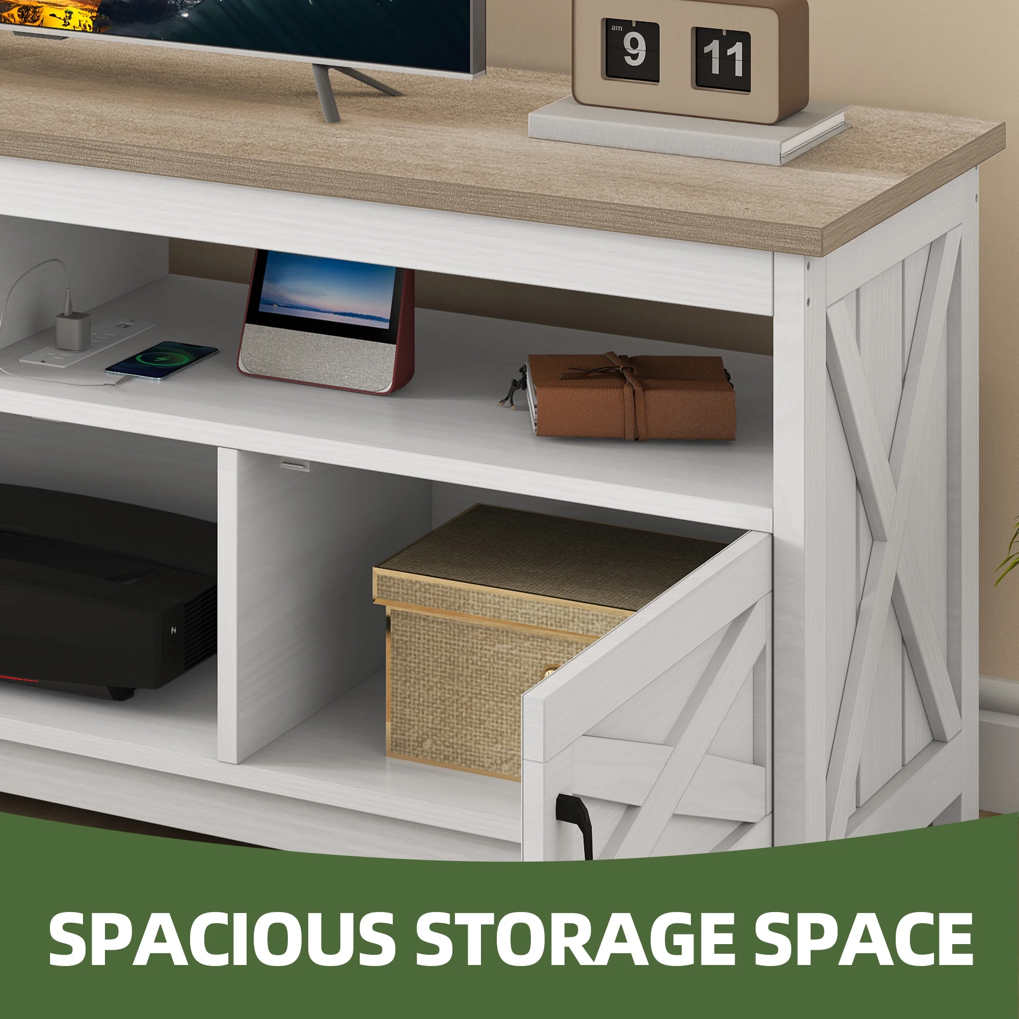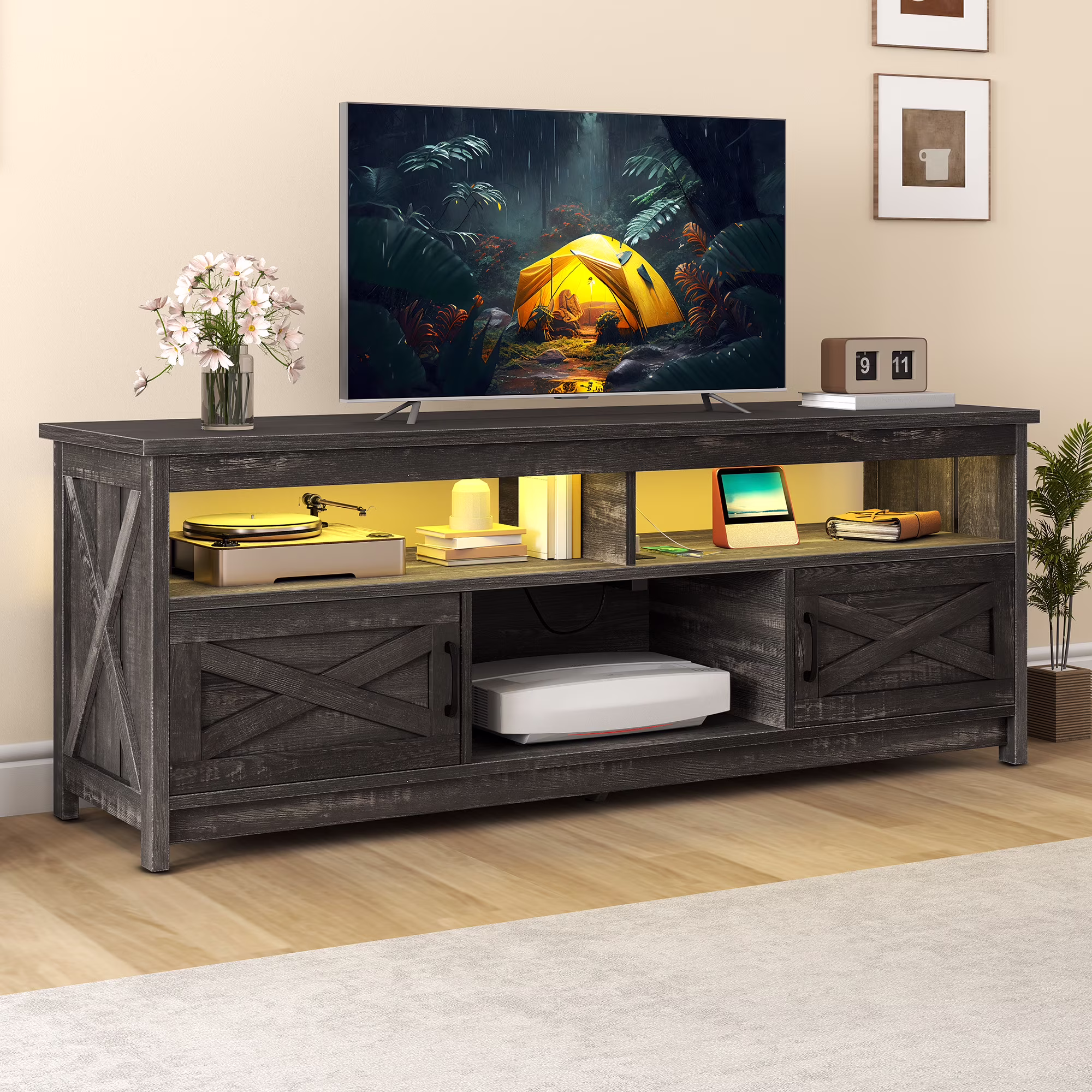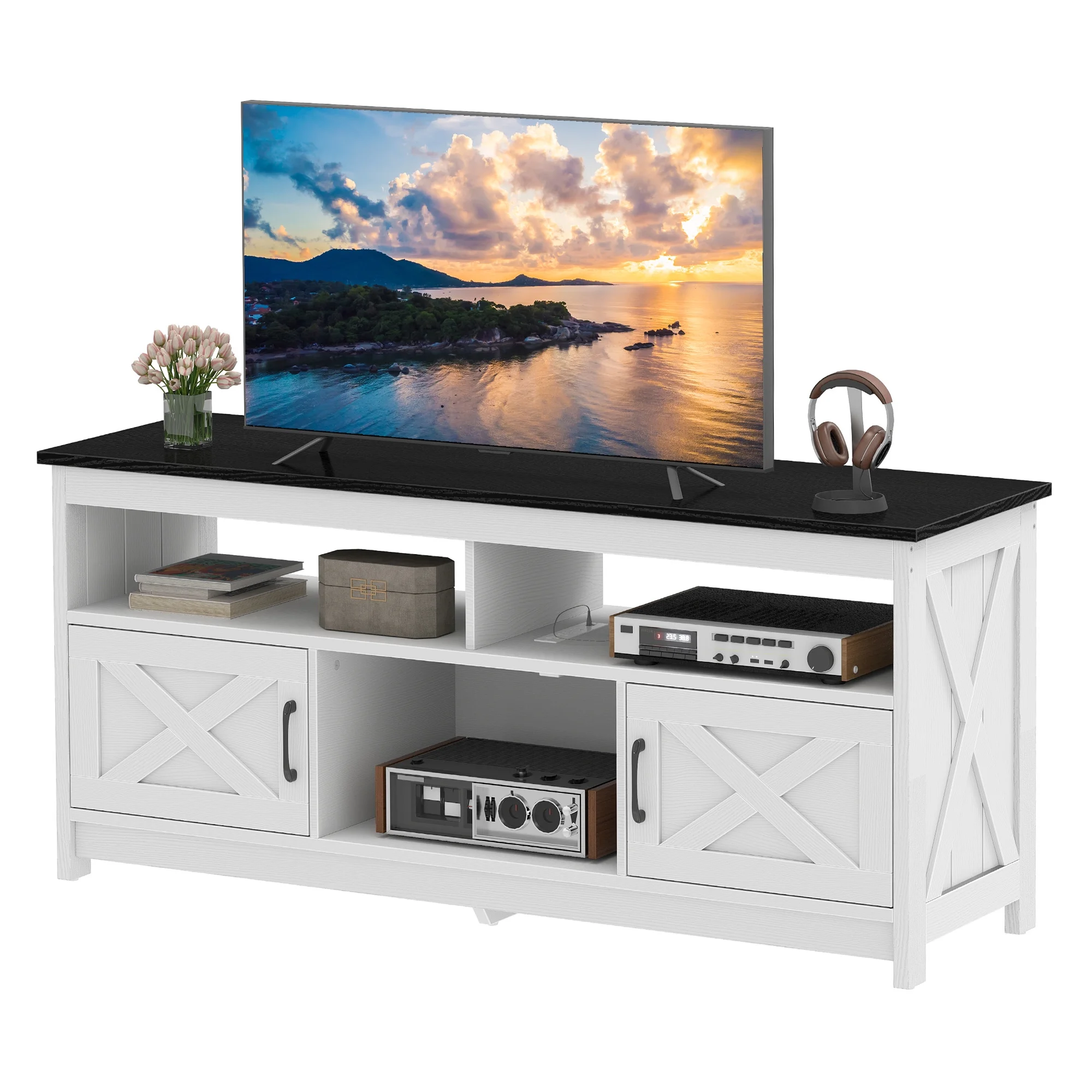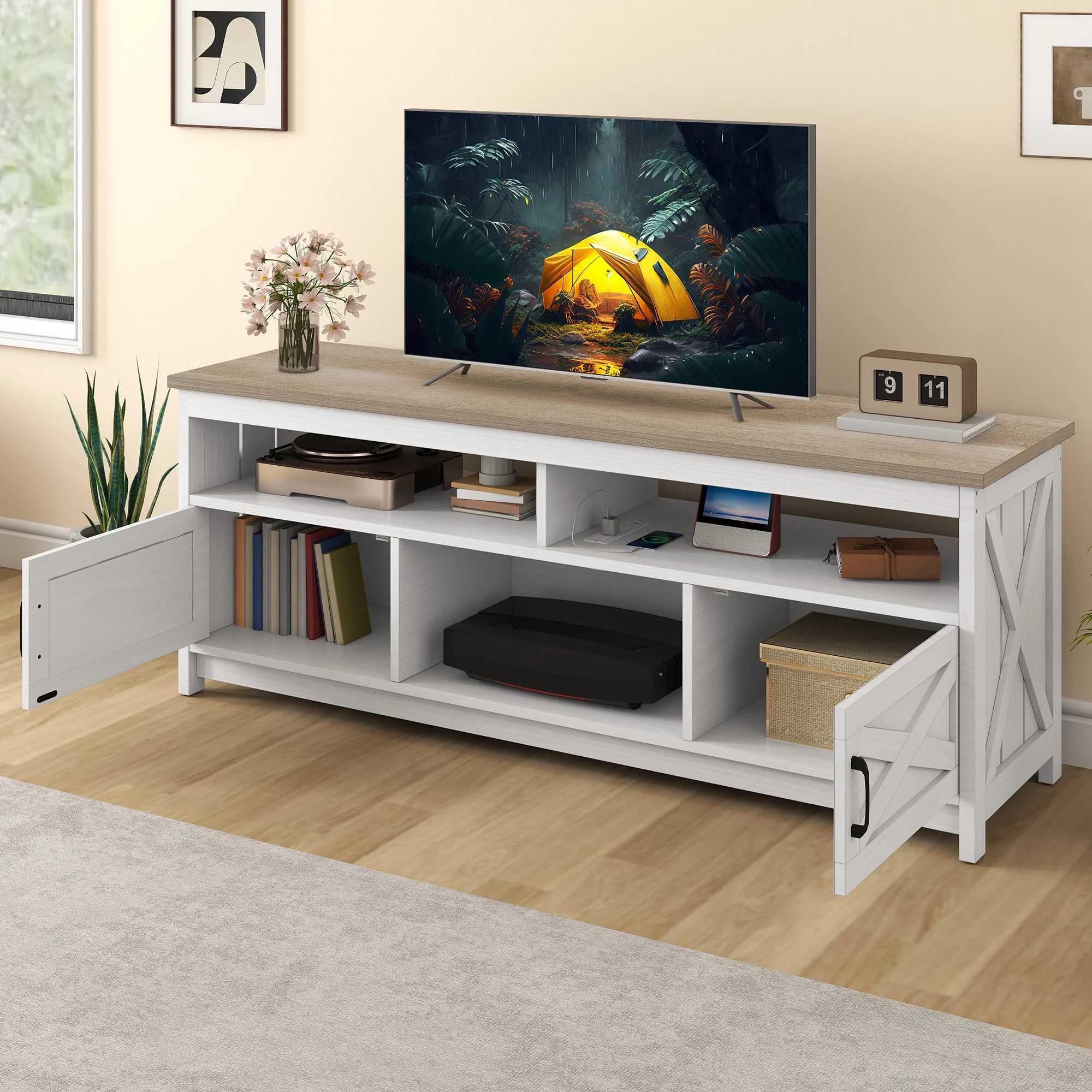 - Multi-Functional Elegance: This 65-inch TV stand isn��t just for your TV. The farmhouse X-shaped barn doors add rustic charm, making it ideal as a coffee bar, storage unit, or entryway cabinet. With easy instructions, assembling is a breeze, even for first-timers.