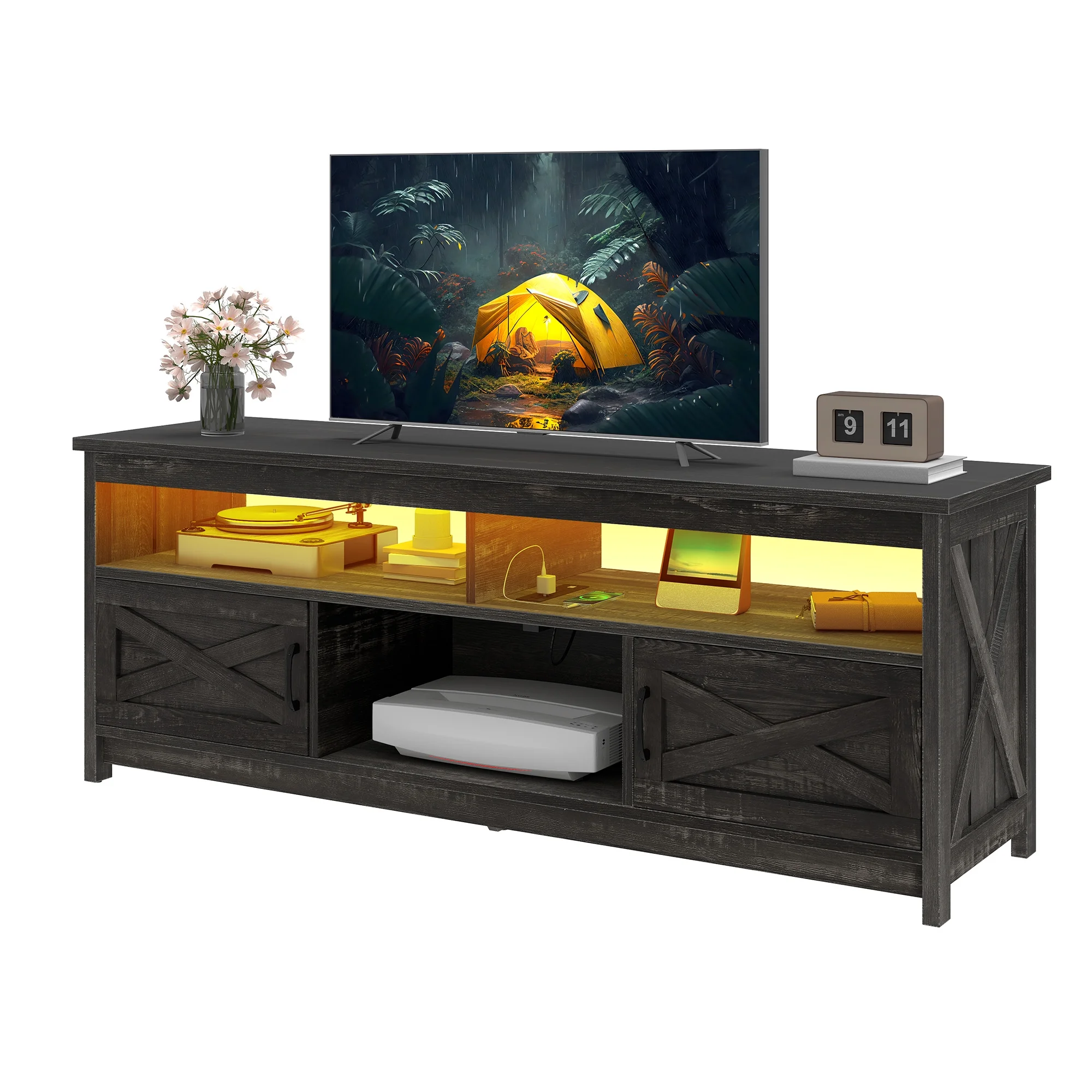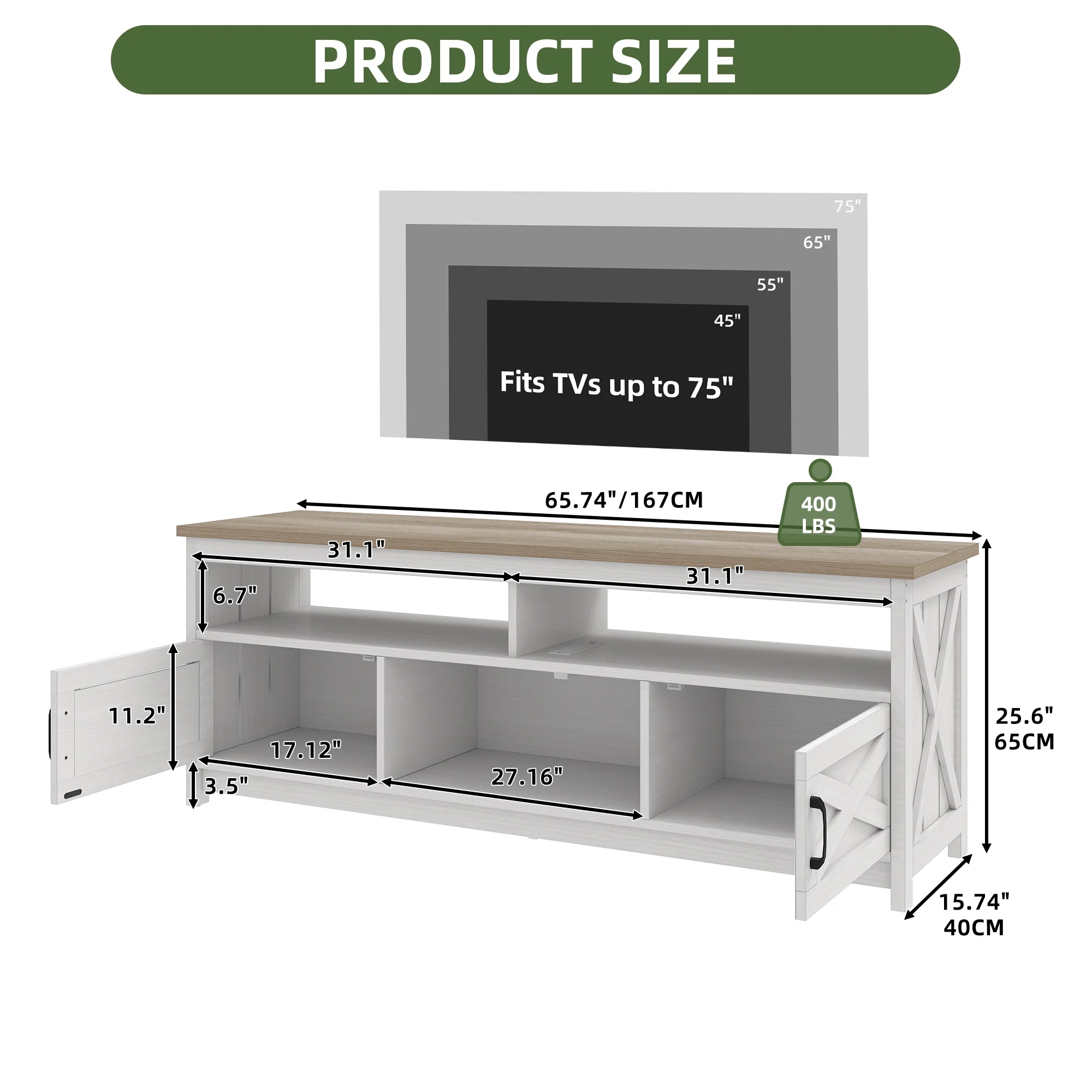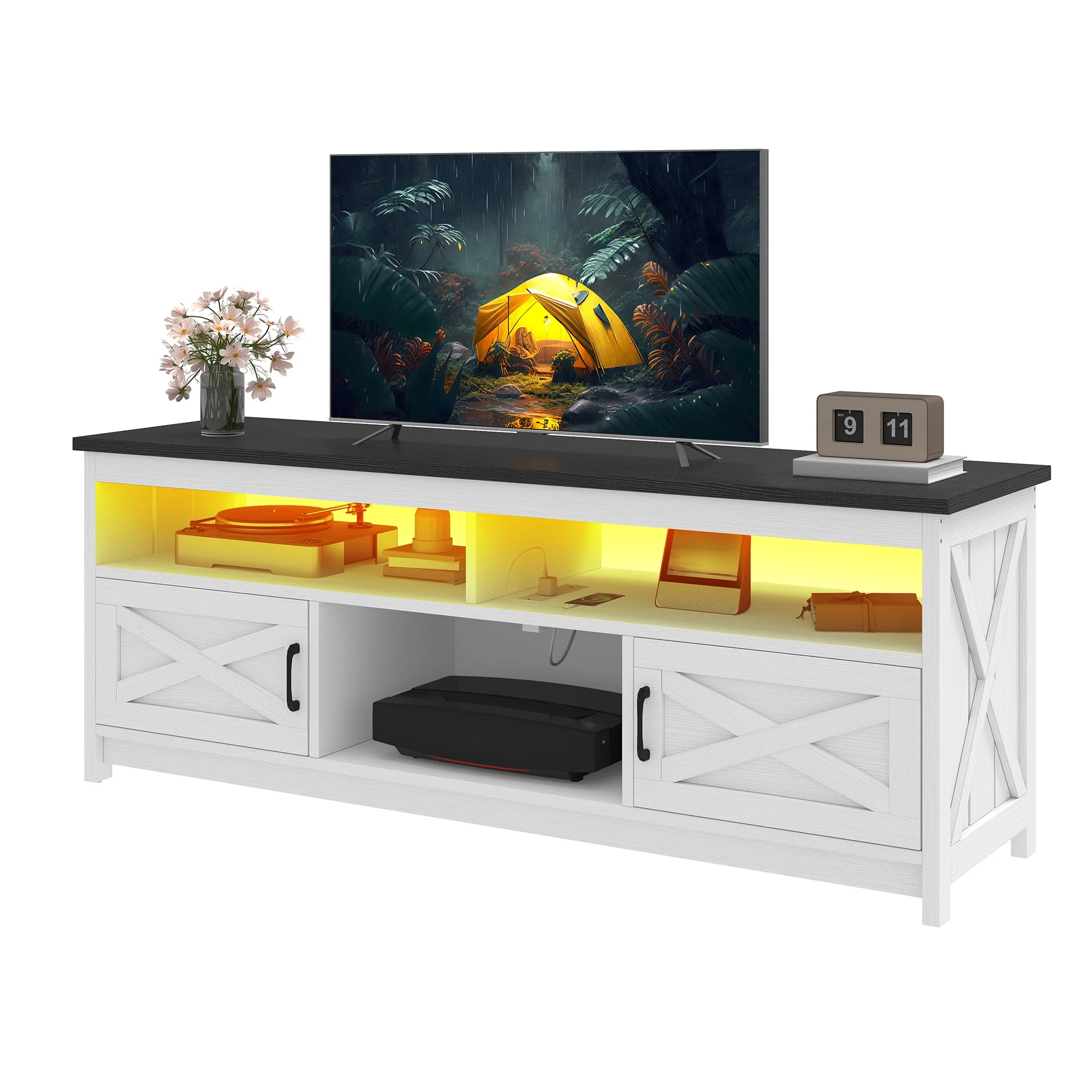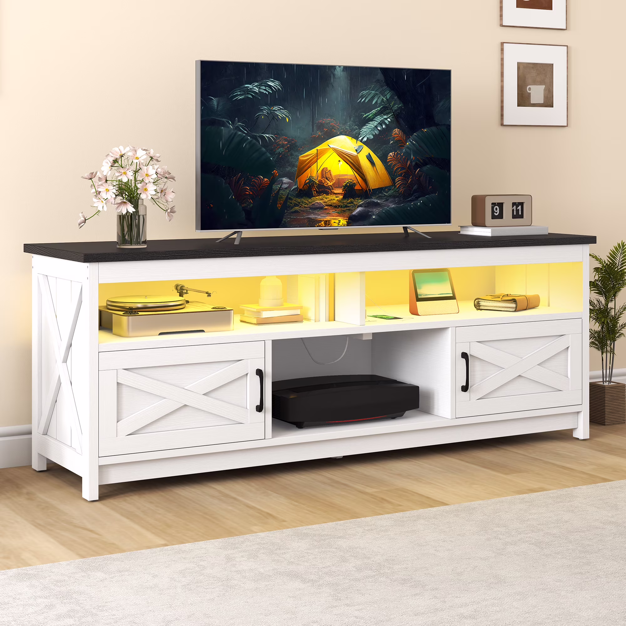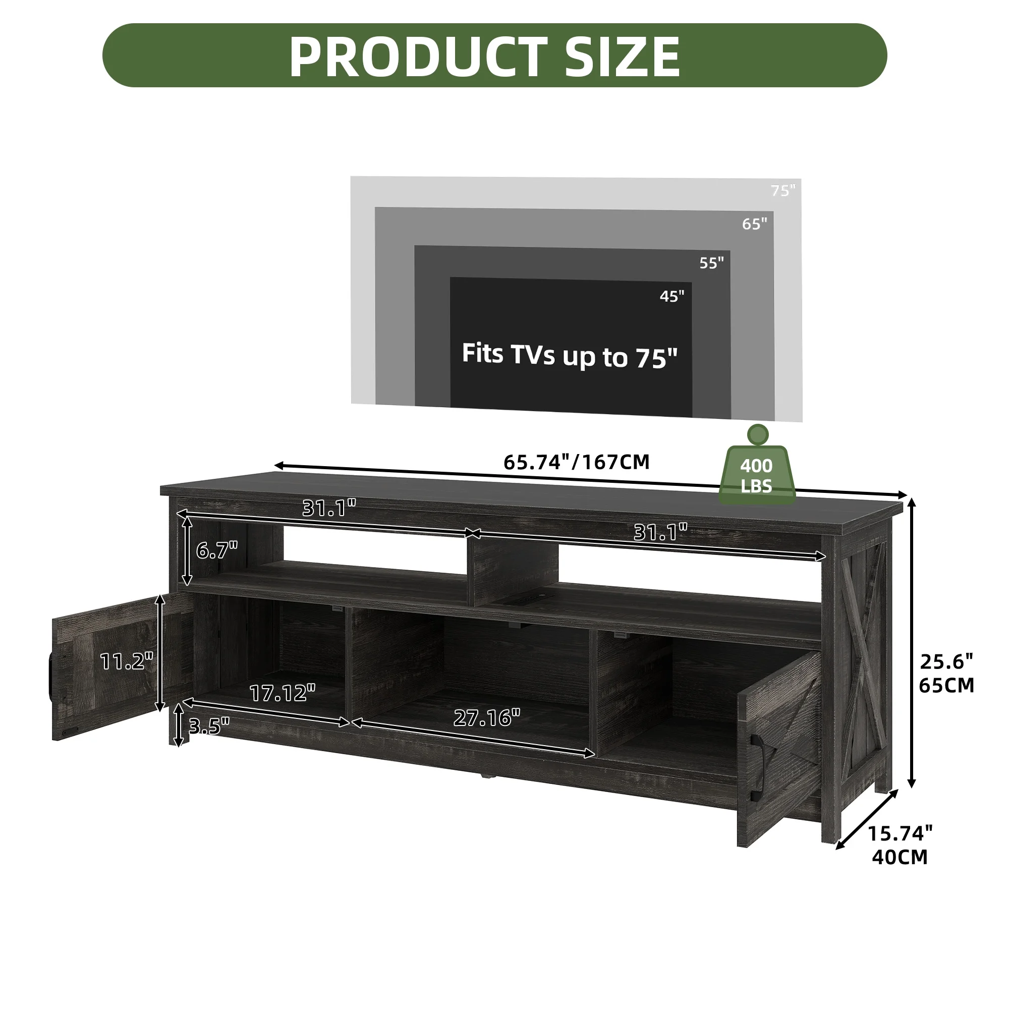 - Multi-Functional Elegance: This 65-inch TV stand isn��t just for your TV. The farmhouse X-shaped barn doors add rustic charm, making it ideal as a coffee bar, storage unit, or entryway cabinet. With easy instructions, assembling is a breeze, even for first-timers.