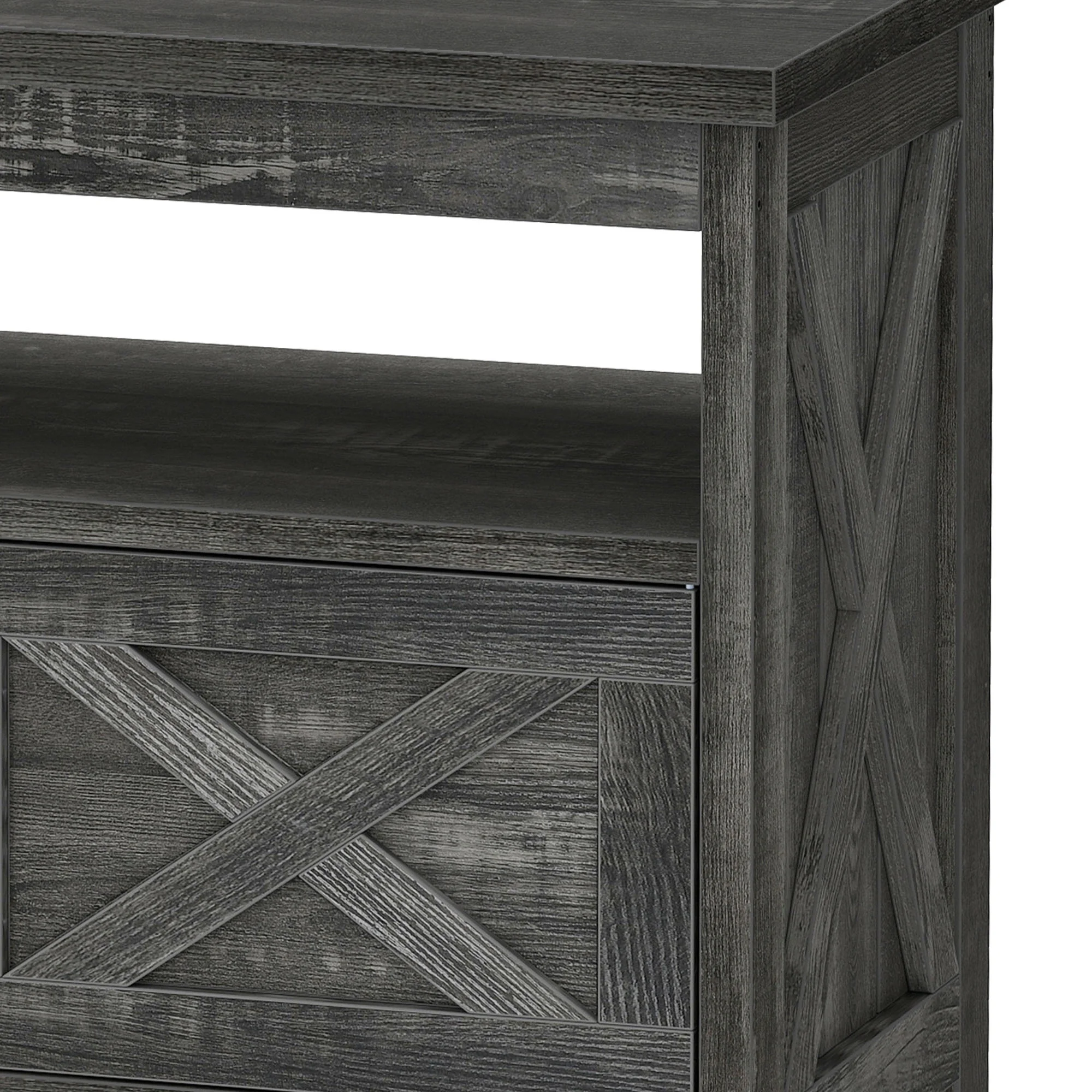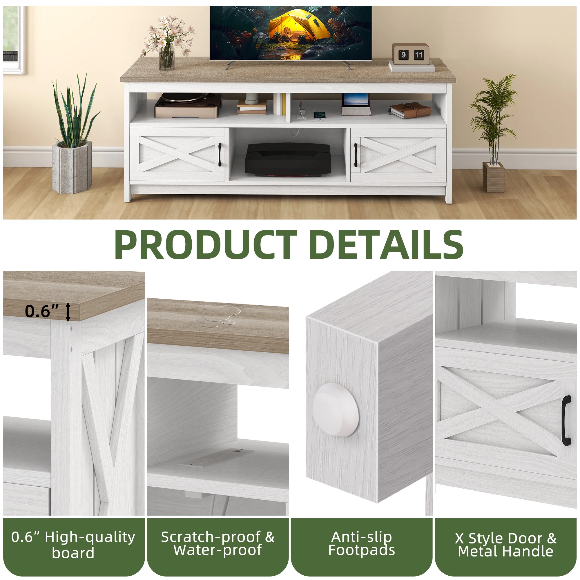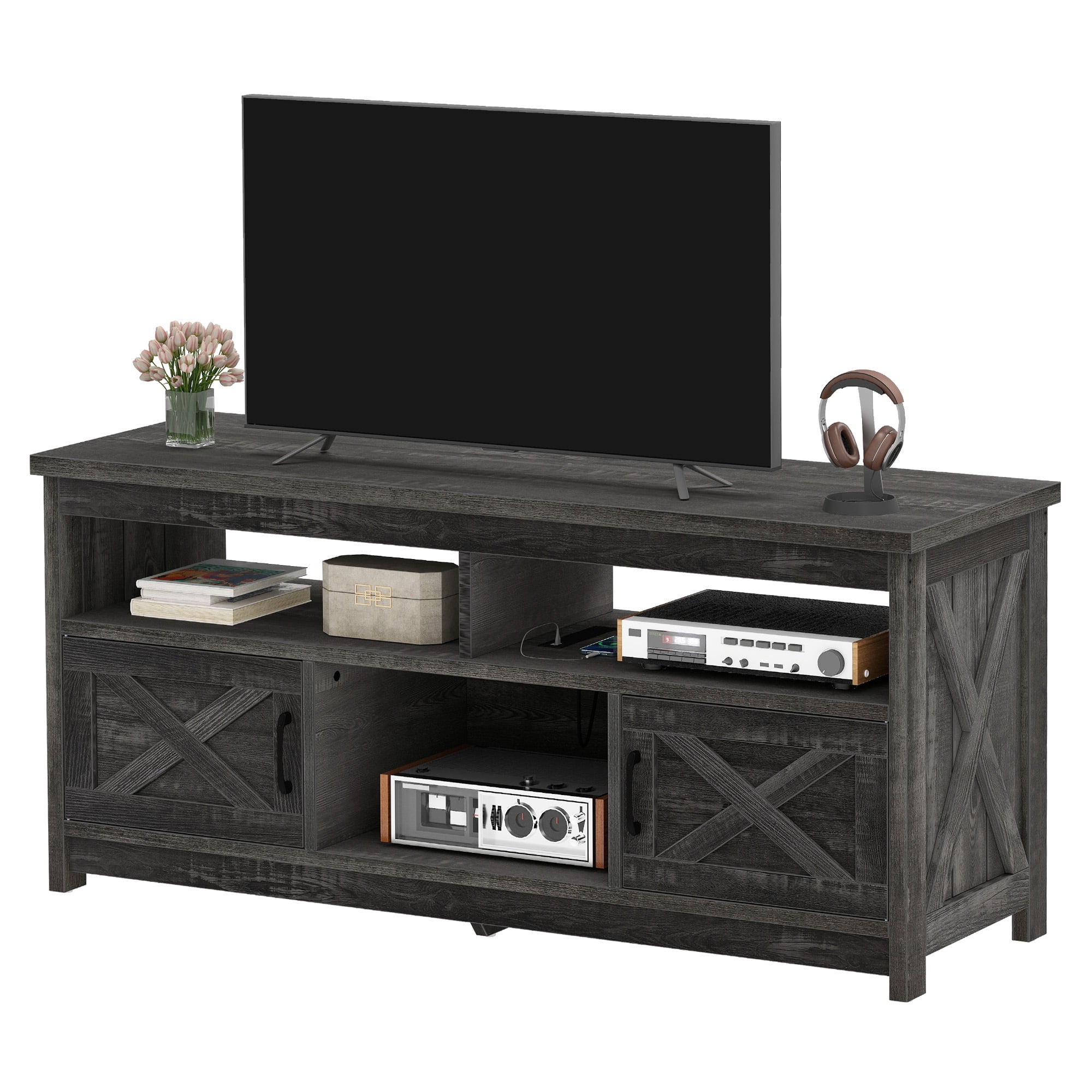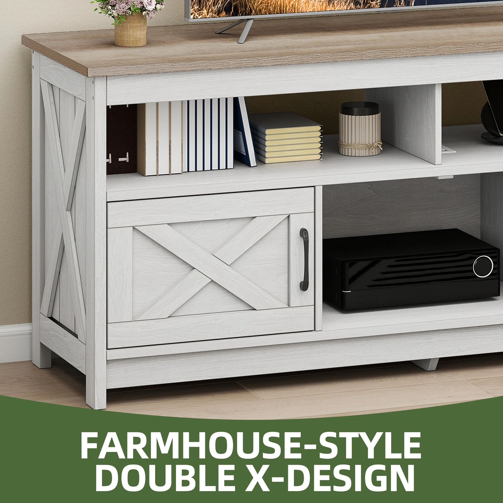 - Farmhouse Charm at Home: Step into comfort with this wash gray TV stand that brings a calming, relaxed vibe to your living room. The classic X-design on each side adds sophistication, making you feel like you��re in a stylish farmhouse retreat every time you walk in.