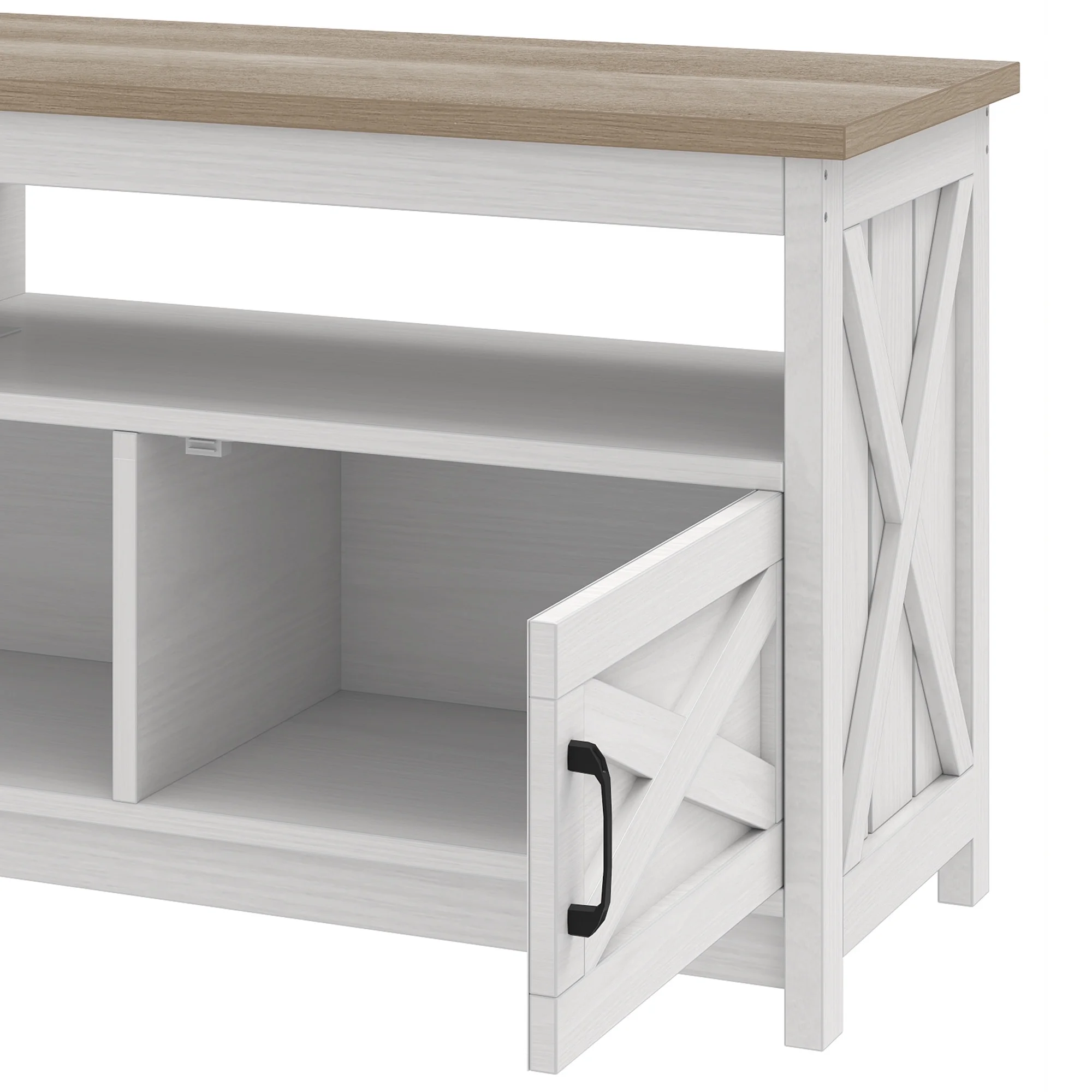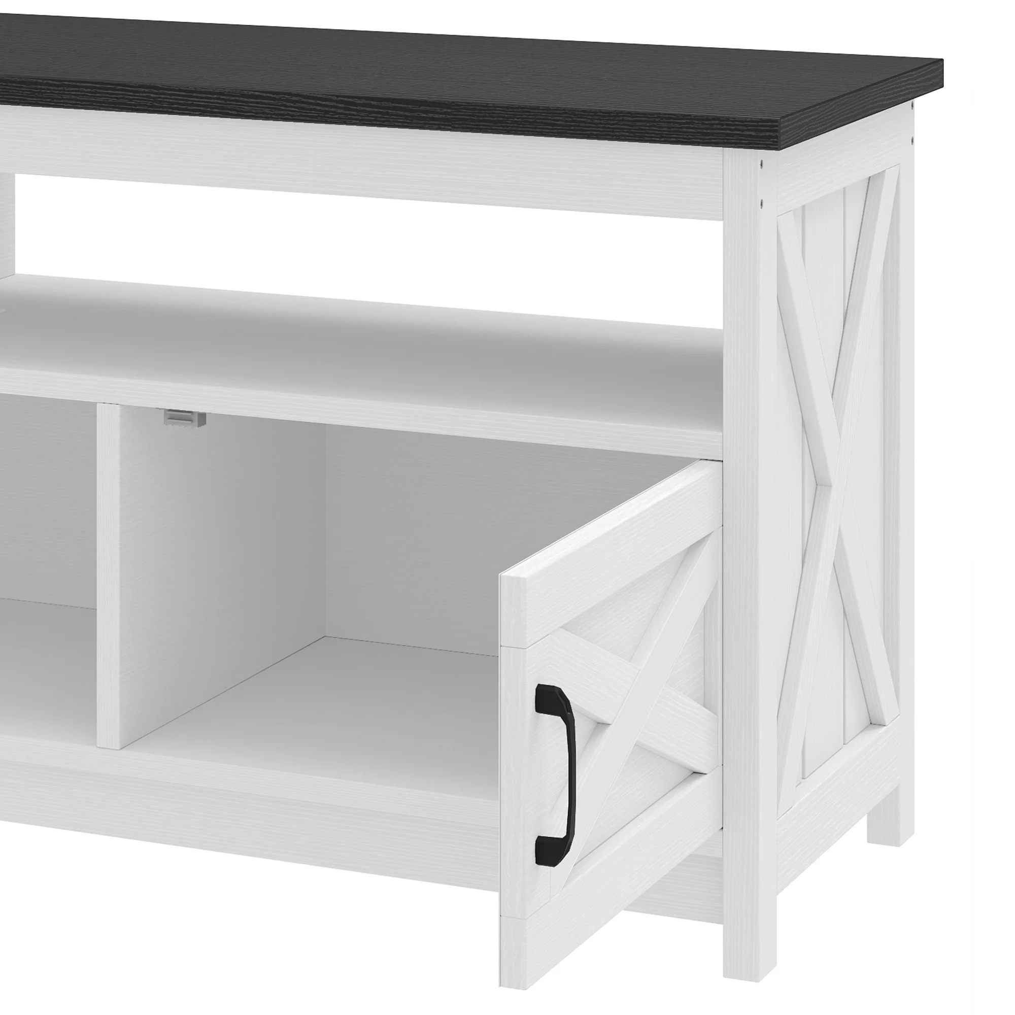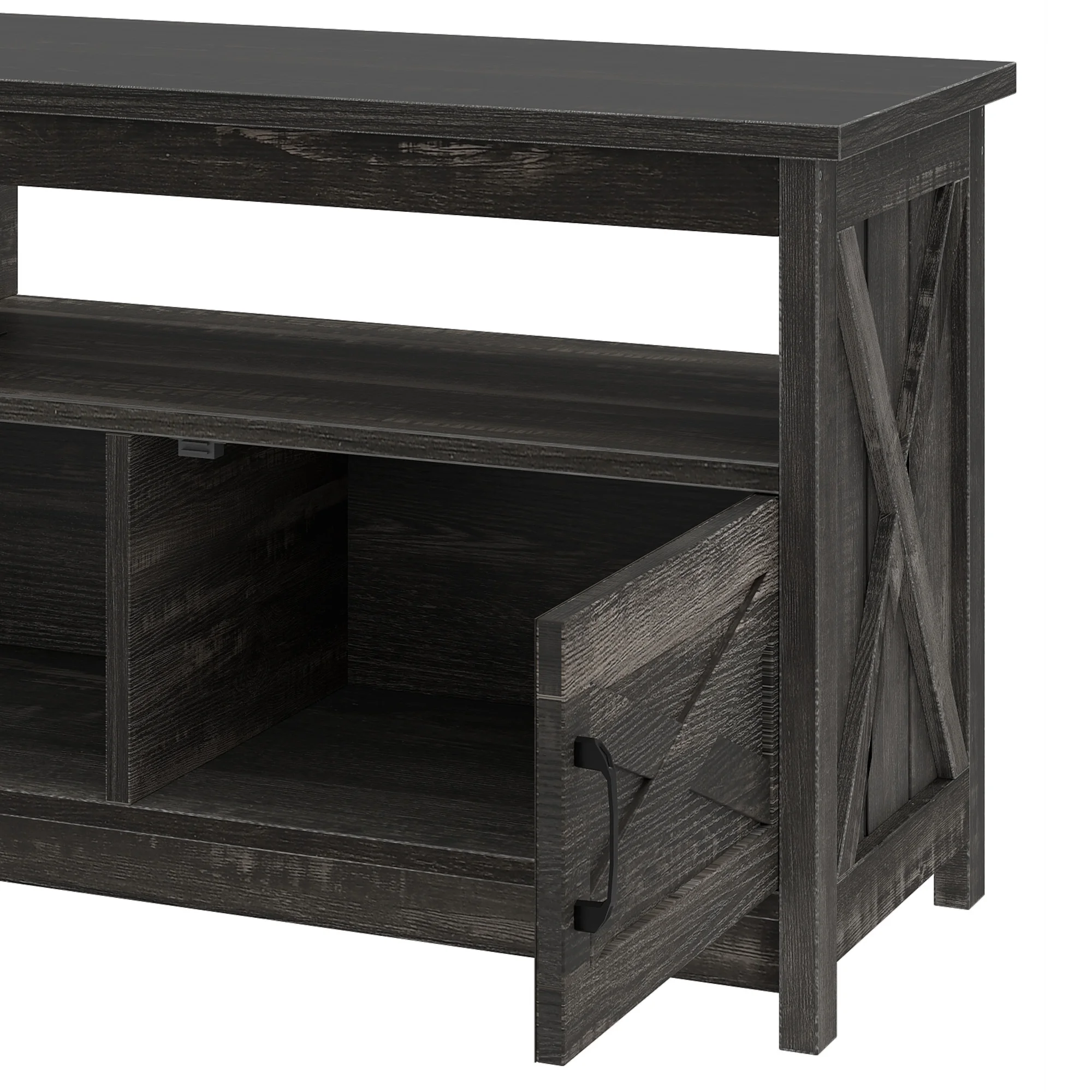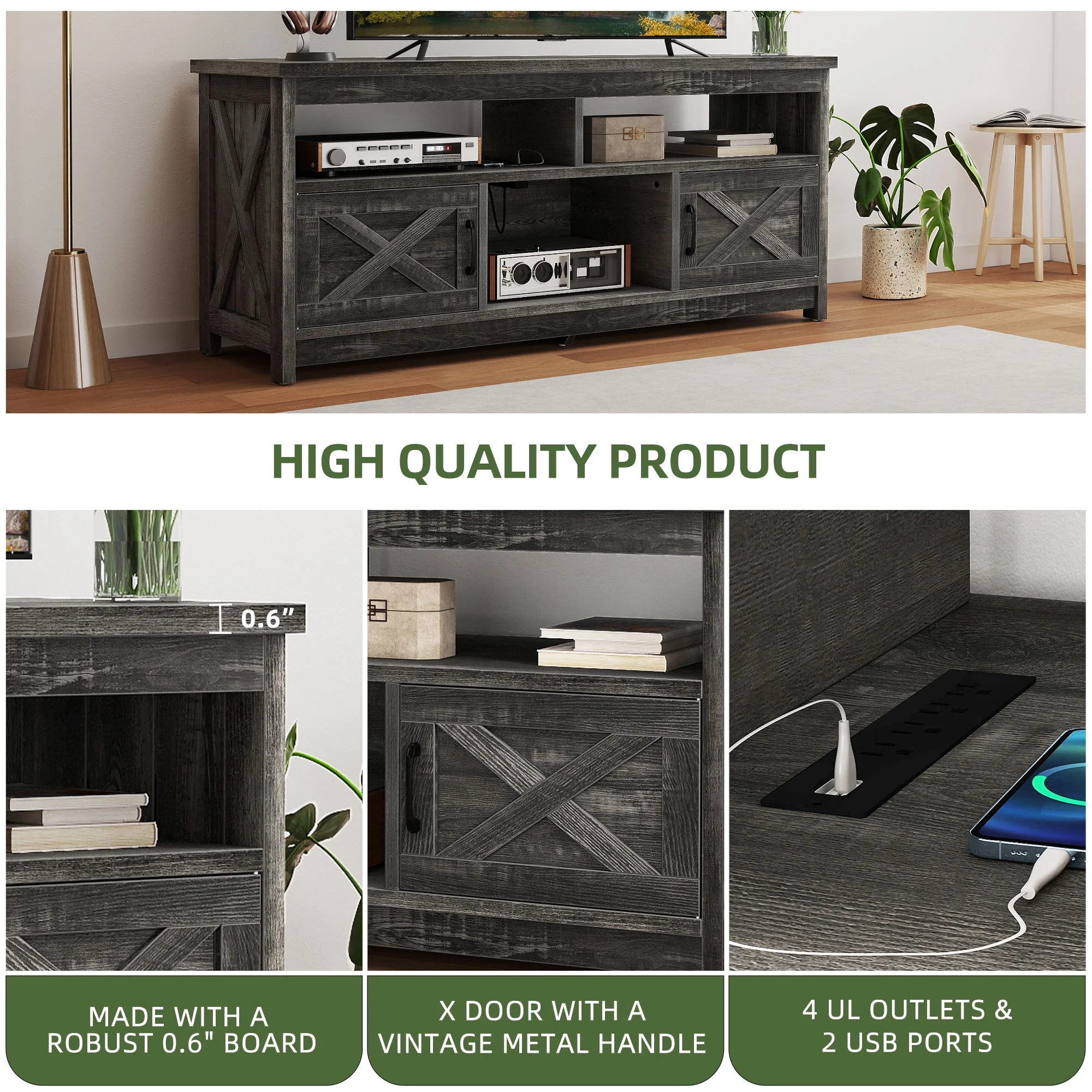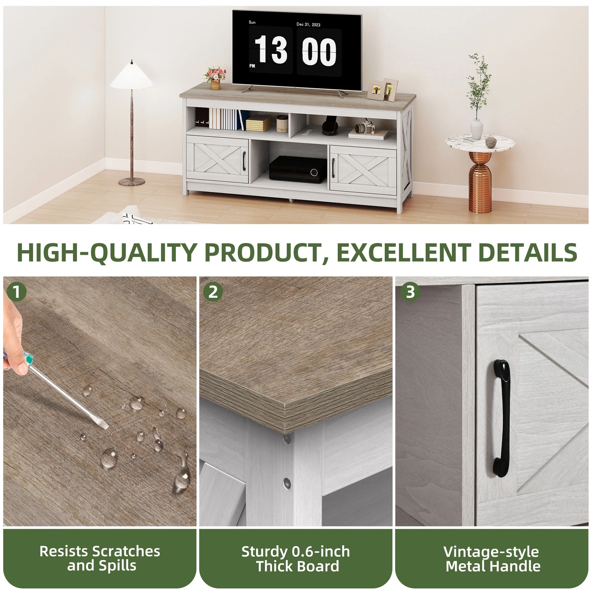 - Farmhouse Charm at Home: Step into comfort with this wash gray TV stand that brings a calming, relaxed vibe to your living room. The classic X-design on each side adds sophistication, making you feel like you��re in a stylish farmhouse retreat every time you walk in.