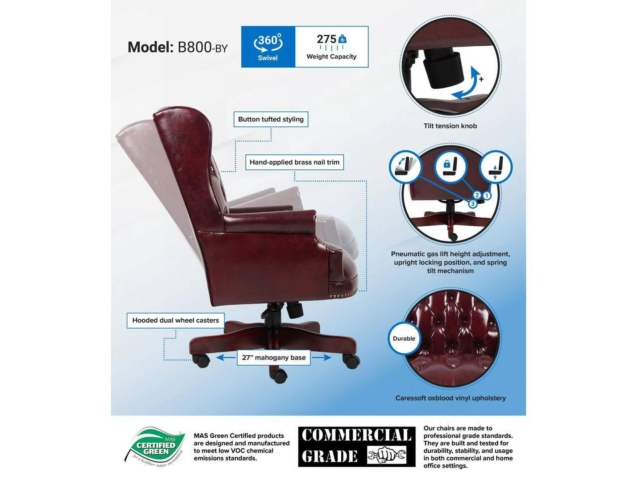 - Mahogany-Finished Wood Components - Rich wood tones elevate the chair��s elegance and presence.