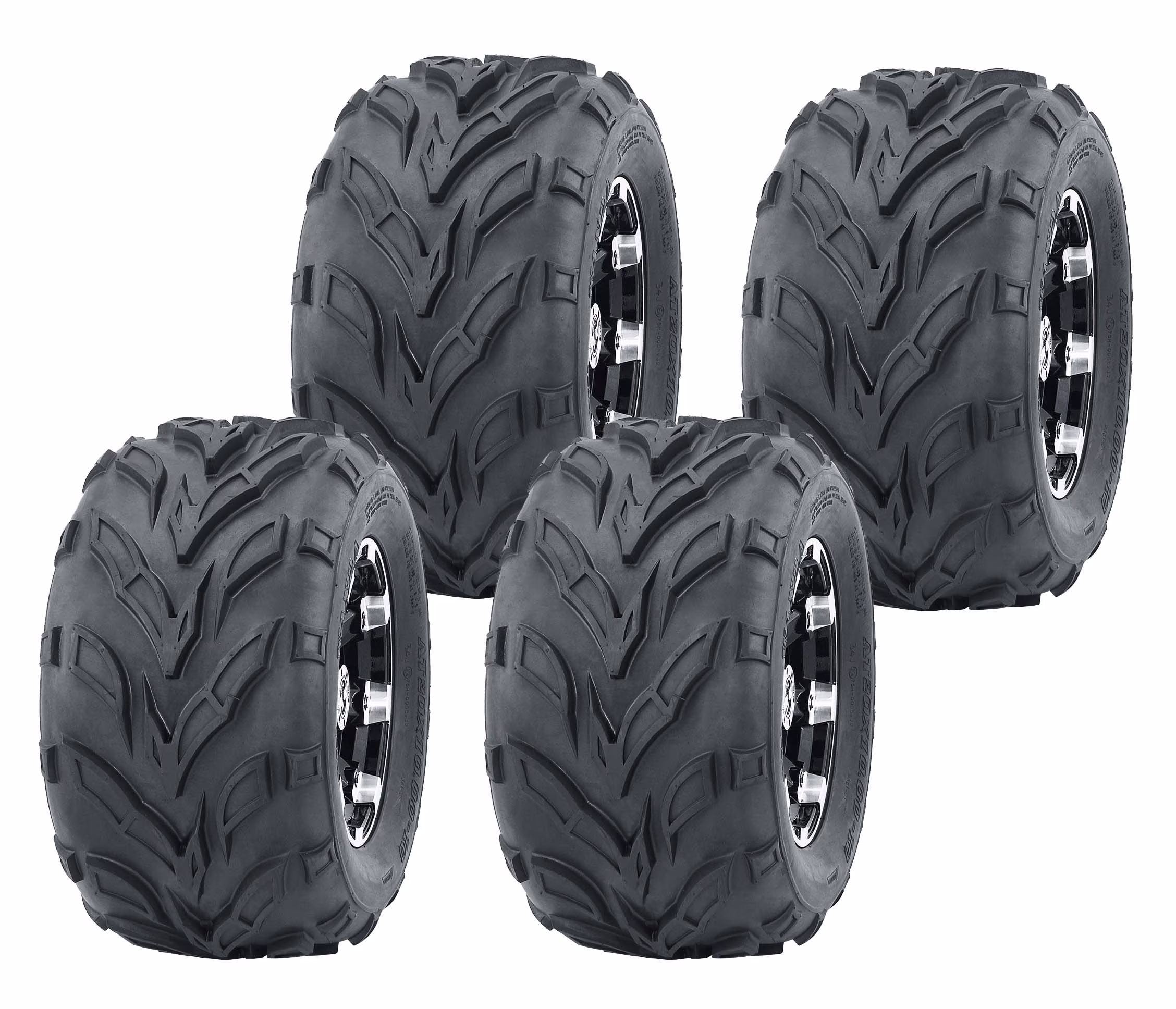 Set of 4 WANDA 145/70-6 Go-Kart tires fit for a variety of ATV applications. Tubeless tires have fox-like directional tread pattern and widely spaced tread bars, which can shed mud. Ideal for mud, snow and sand. Heavy 4 ply rated nylon construction resists punctures and abrasions. Tires only, wheels are not included.