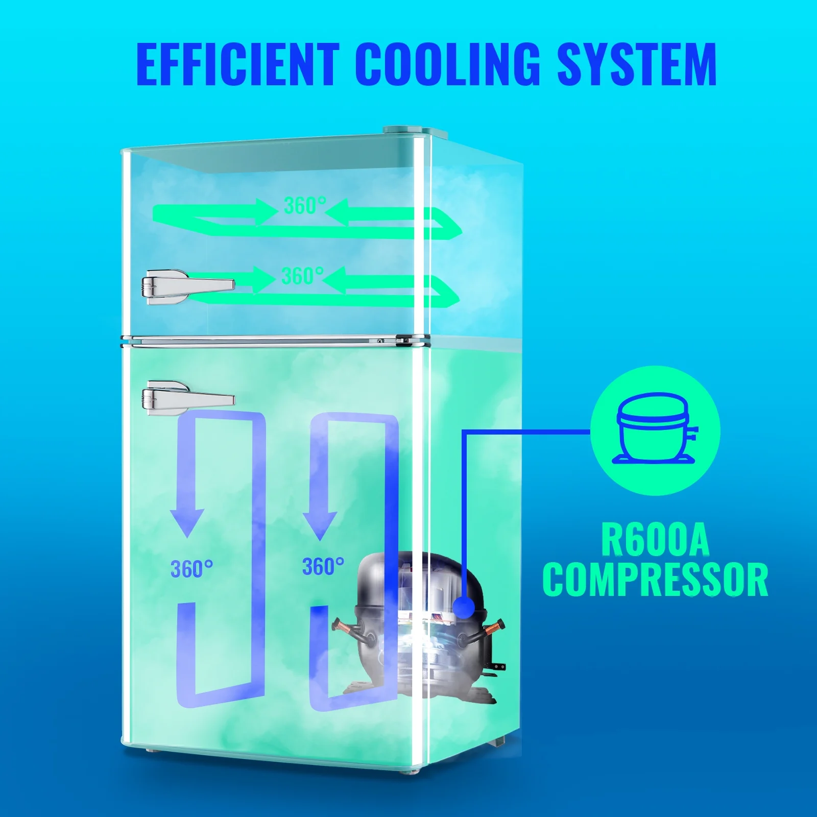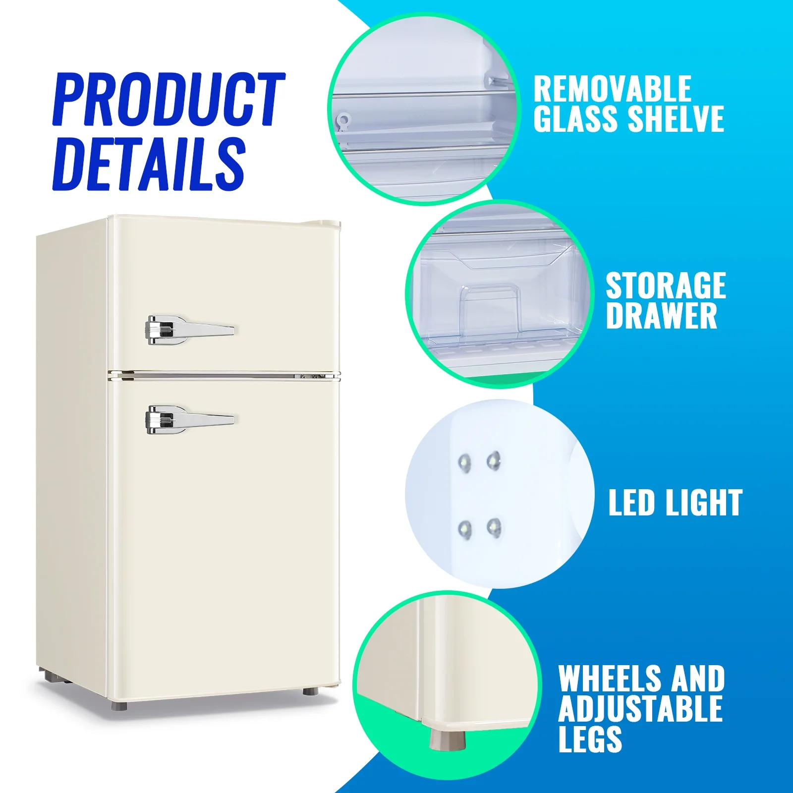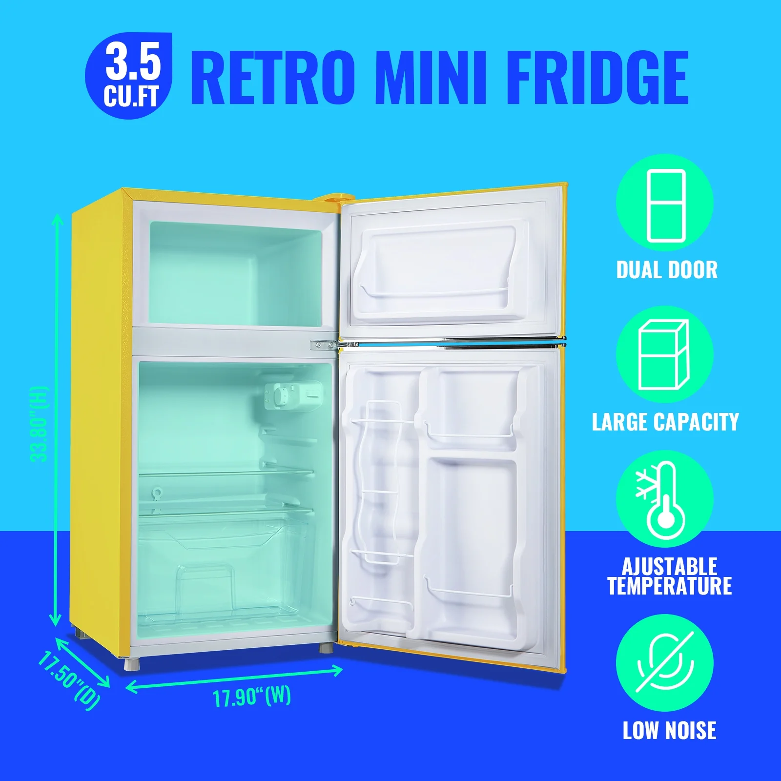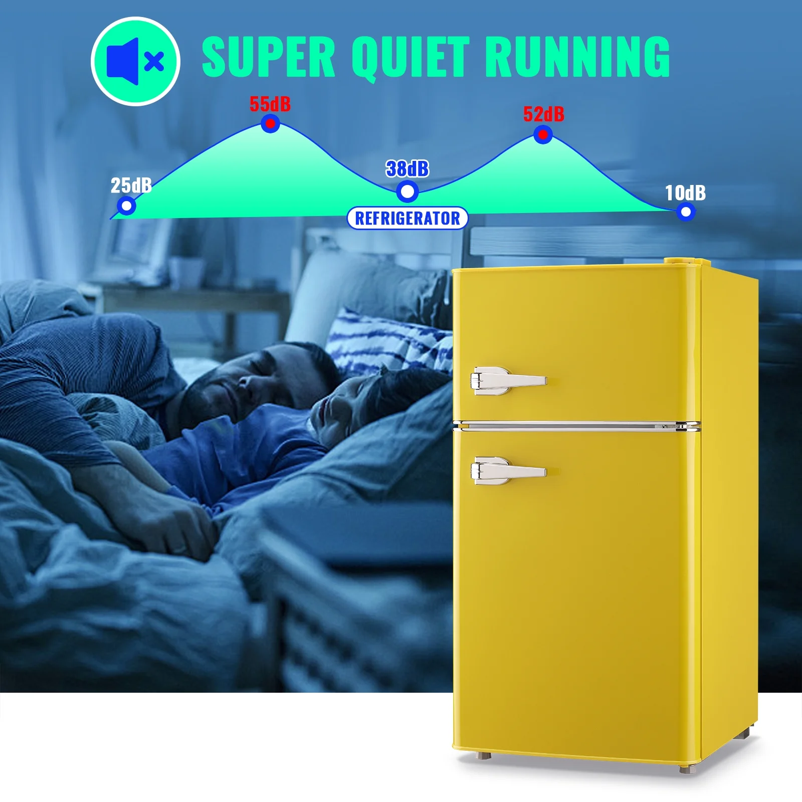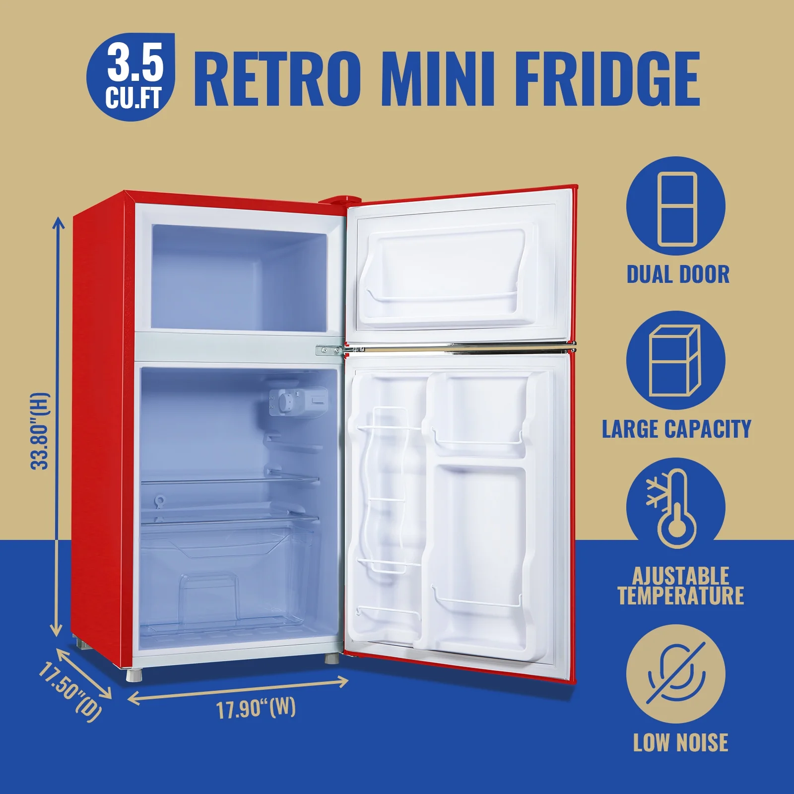 - Double Door Versatility: This mini fridge offers a double door design, featuring 1.0 Cu.Ft of refrigerator space for vegetables and a 2.5 Cu.Ft freezer section for meat and ice cream. This provides versatile storage options, allowing you to easily organize and access your fresh and frozen foods, catering to all your refrigeration needs in one convenient unit.