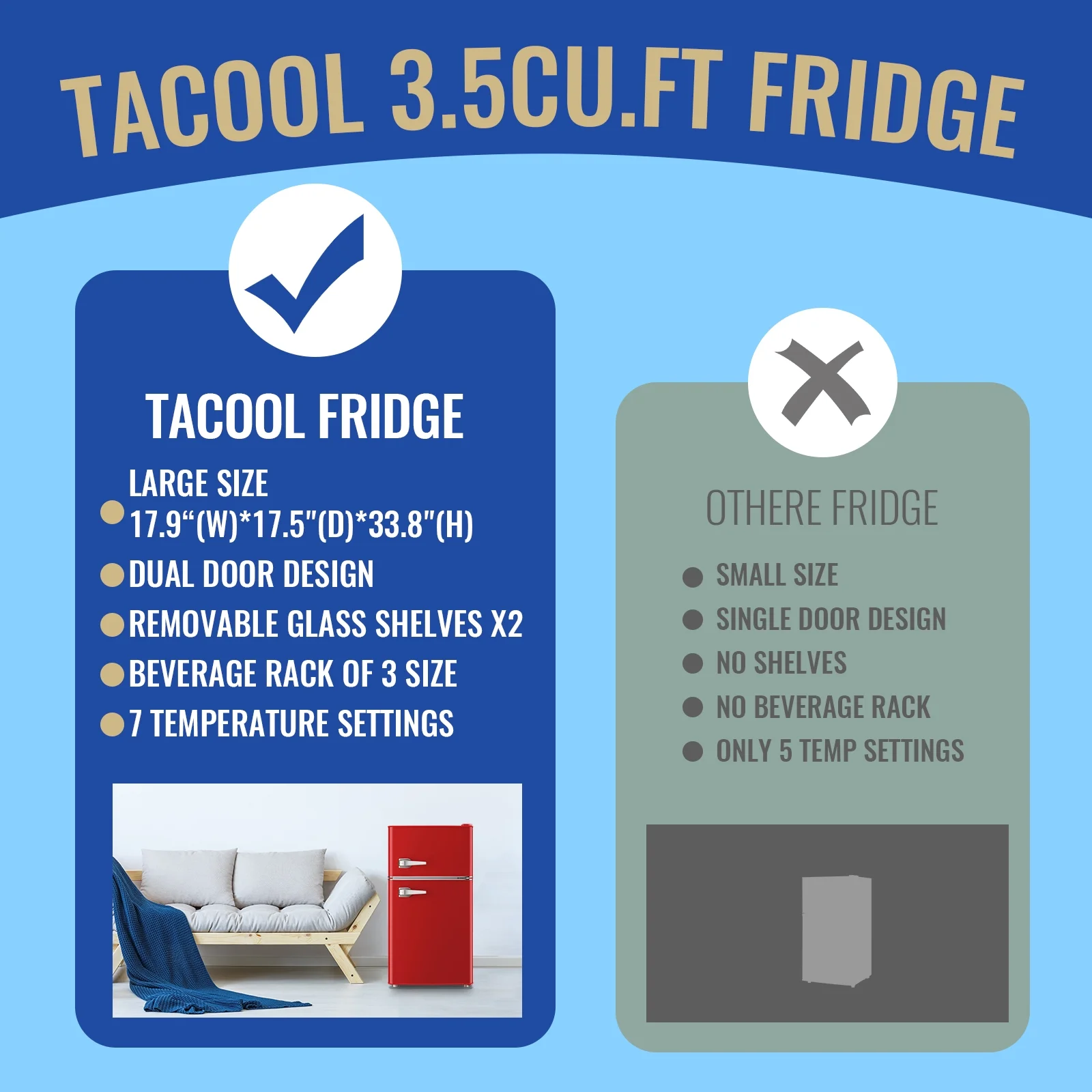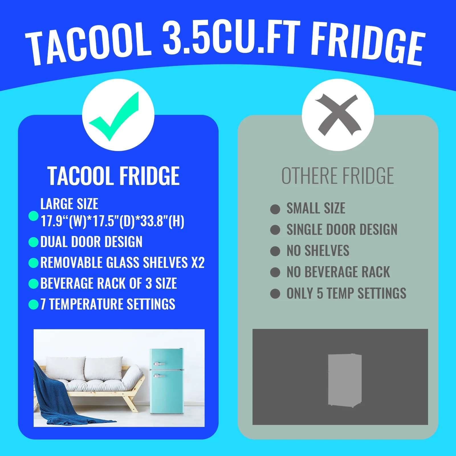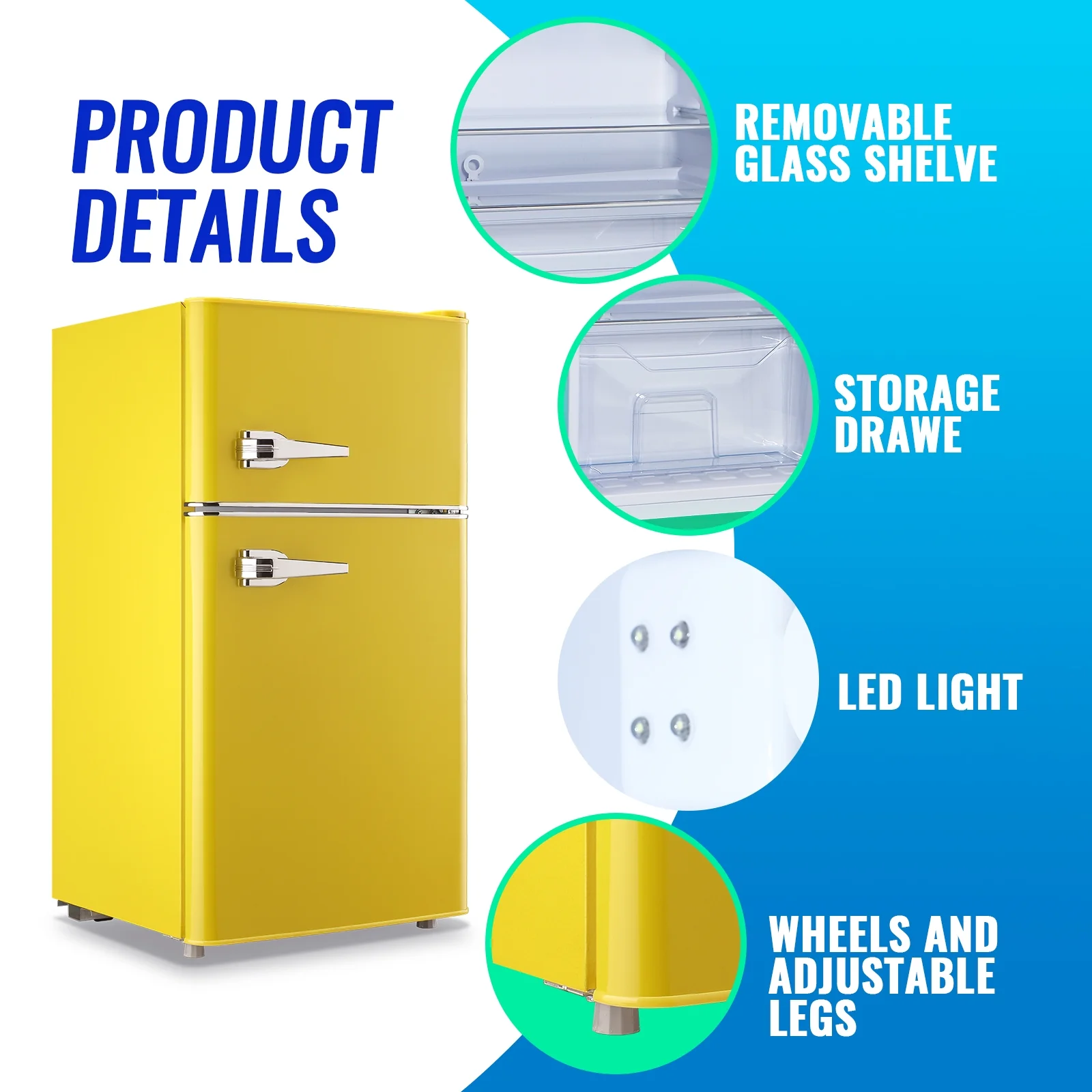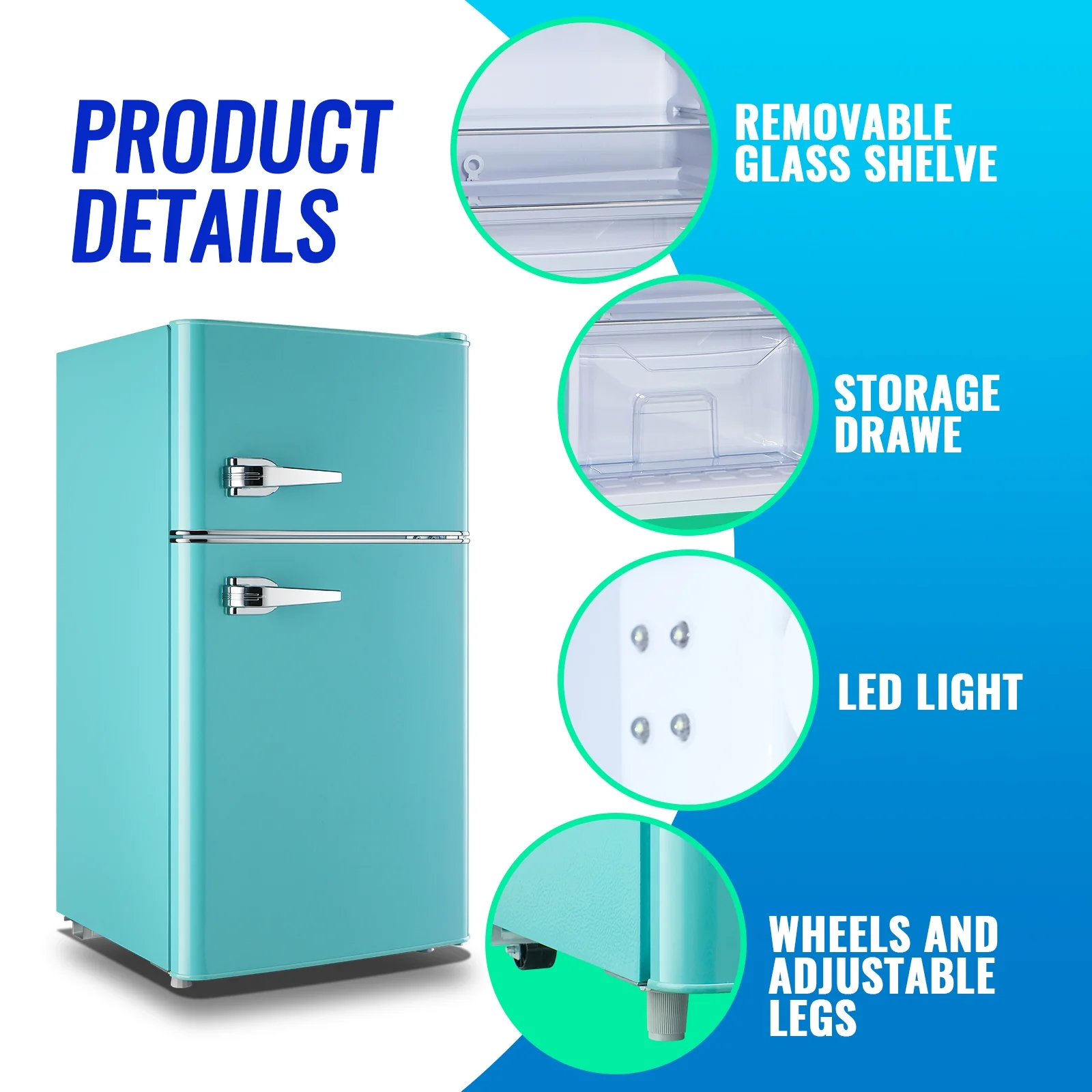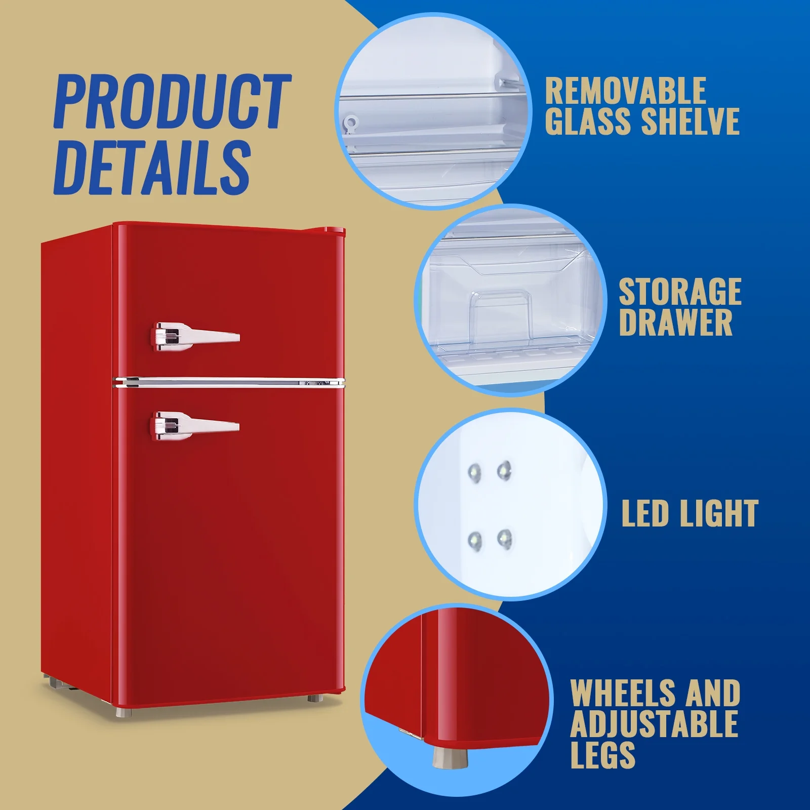 - Double Door Versatility: This mini fridge offers a double door design, featuring 1.0 Cu.Ft of refrigerator space for vegetables and a 2.5 Cu.Ft freezer section for meat and ice cream. This provides versatile storage options, allowing you to easily organize and access your fresh and frozen foods, catering to all your refrigeration needs in one convenient unit.