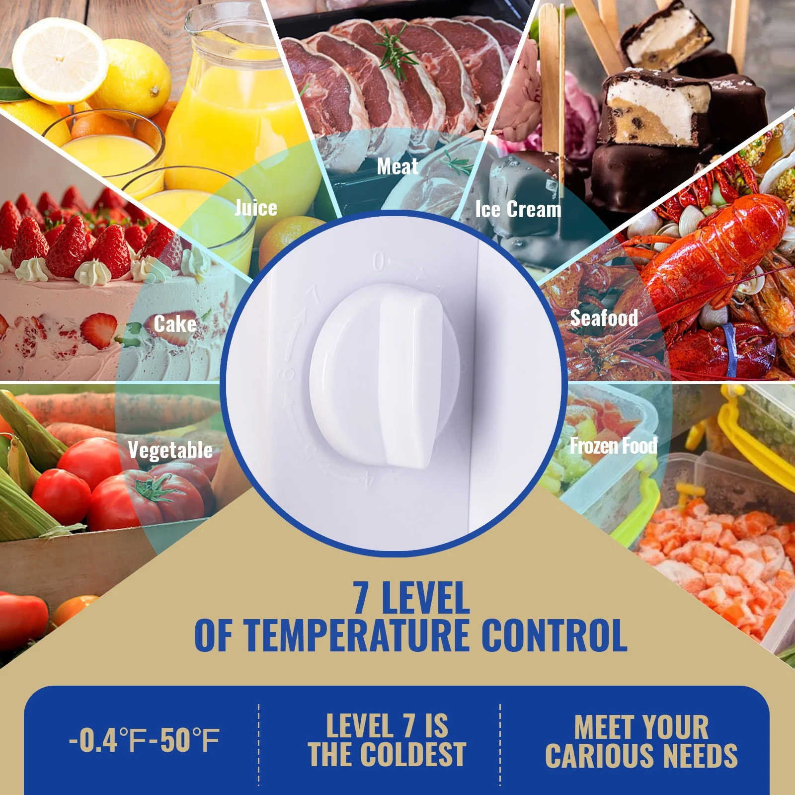 - Advanced 7-Level Temperature Adjustment: Equipped with cutting-edge 3D refrigeration technology, this mini fridge supports 7 temperature settings ranging from -0.4�H to 50�H. This ensures your items are always stored at the optimal temperature. Whether you need to keep beverages cool or freeze perishables, this fridge adapts to your specific cooling requirements effortlessly.