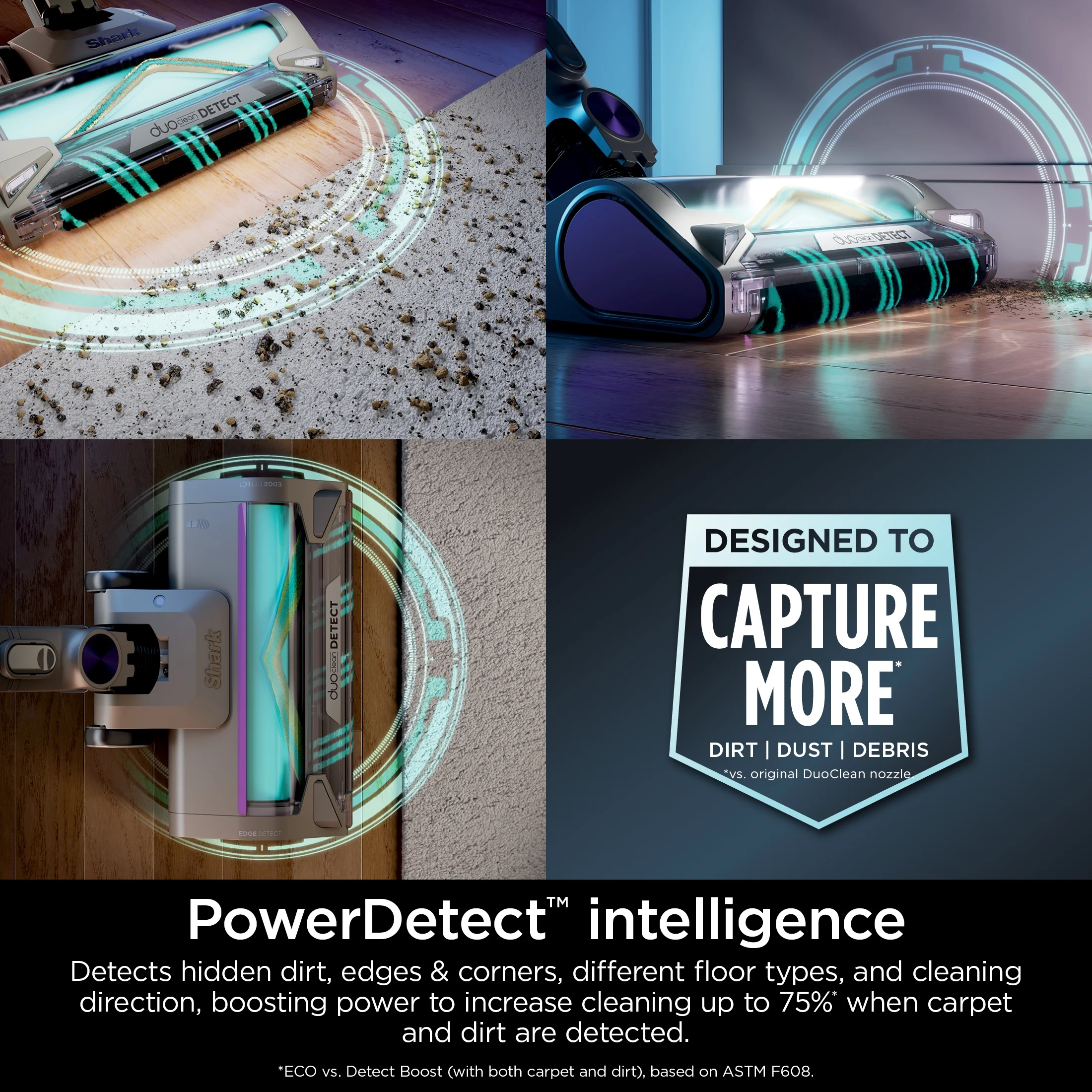 - DESIGNED TO CAPTURE MORE* DIRT, DUST, & DEBRIS: Shark?��s redesigned DuoClean Detect? nozzle features 2X brushrolls for ALL floors* and ULTRA-POWERFUL hair pickup.(*vs. original DuoClean? nozzle)