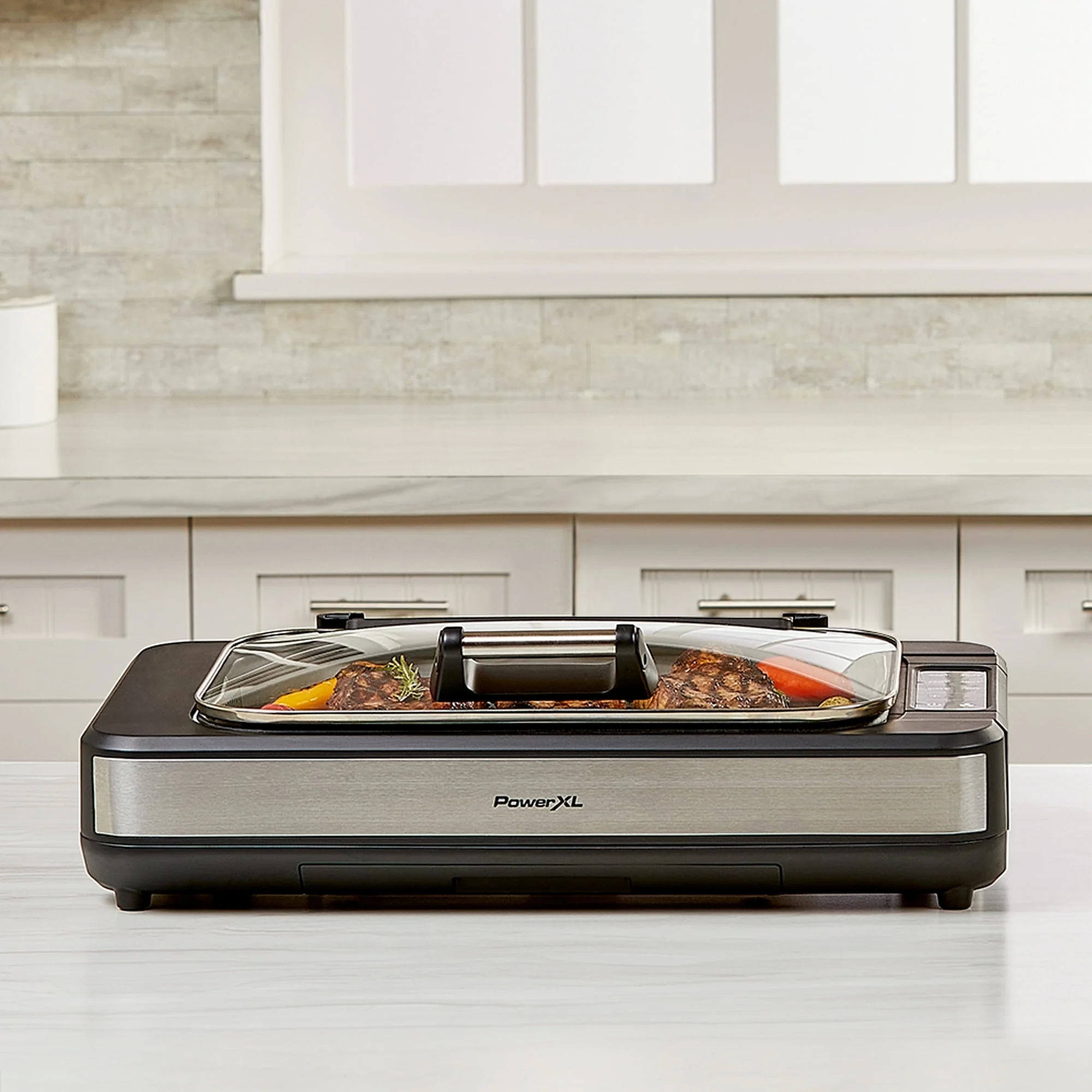- Whether you're grilling juicy steaks, succulent burgers, or even vegetables, the Powerxl 13.75 in. Metal Nonstick Surface Indoor Grill provides a reliable and efficient cooking experience. Enjoy the convenience of grilling indoors all year round with this versatile and stylish appliance.