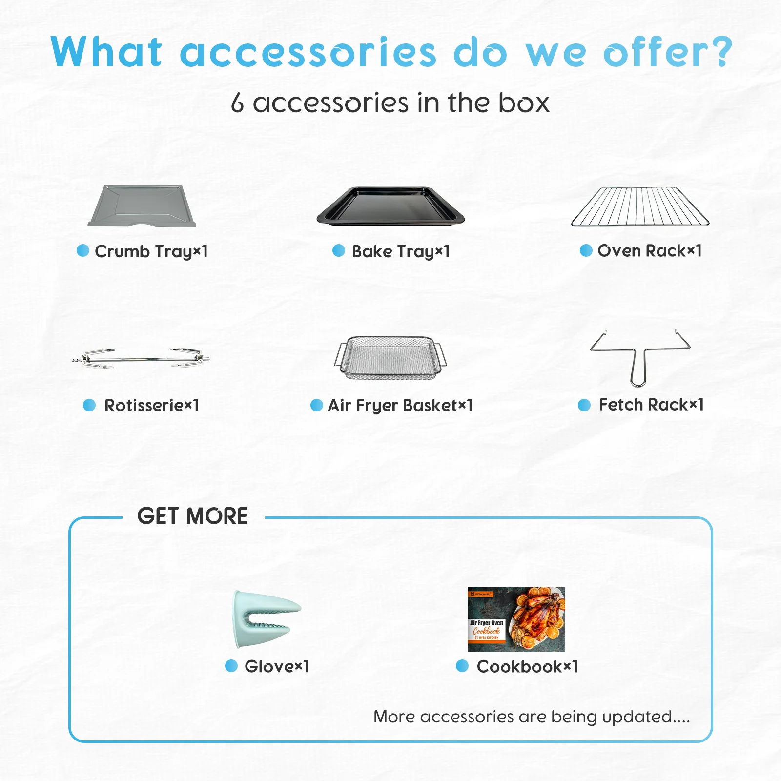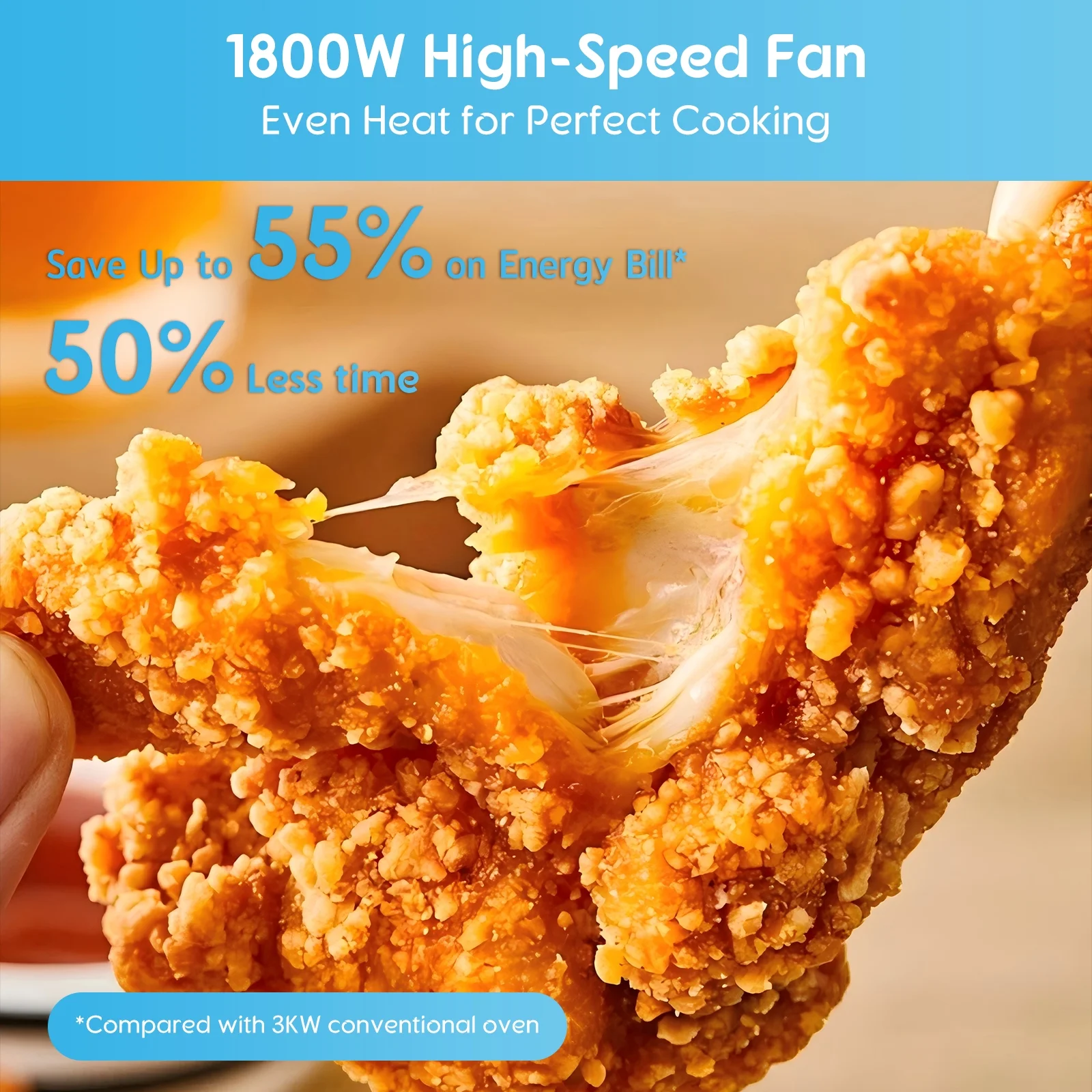 - [Rotisserie Kit for Home Roasting]Equipped with a rotisserie kit, this convection oven air fryer makes it easy to roast whole chicken and other meats at home. The rotating function helps cook food evenly, bringing flavorful results that are ideal for family dinners or weekend gatherings.