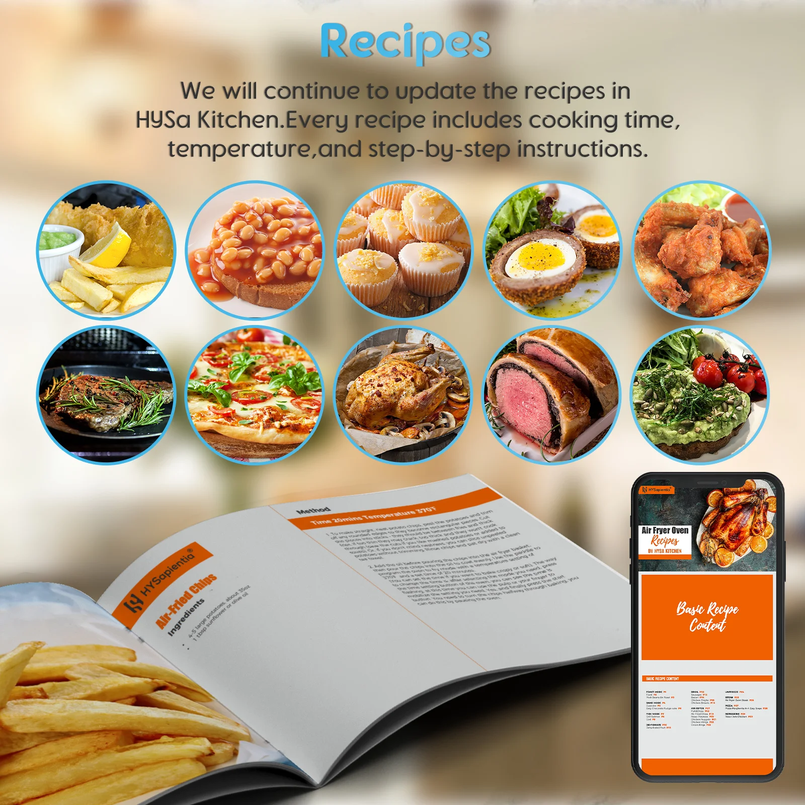 Hysapientia 26QT Air Fryer Oven with Rotisserie 1800W Toaster Oven Air Fryer Combo, 10 in 1 Convection Oven Countertop, Airfryer Toaster Oven, Mini Toaster Oven, Stainless Steel Outer