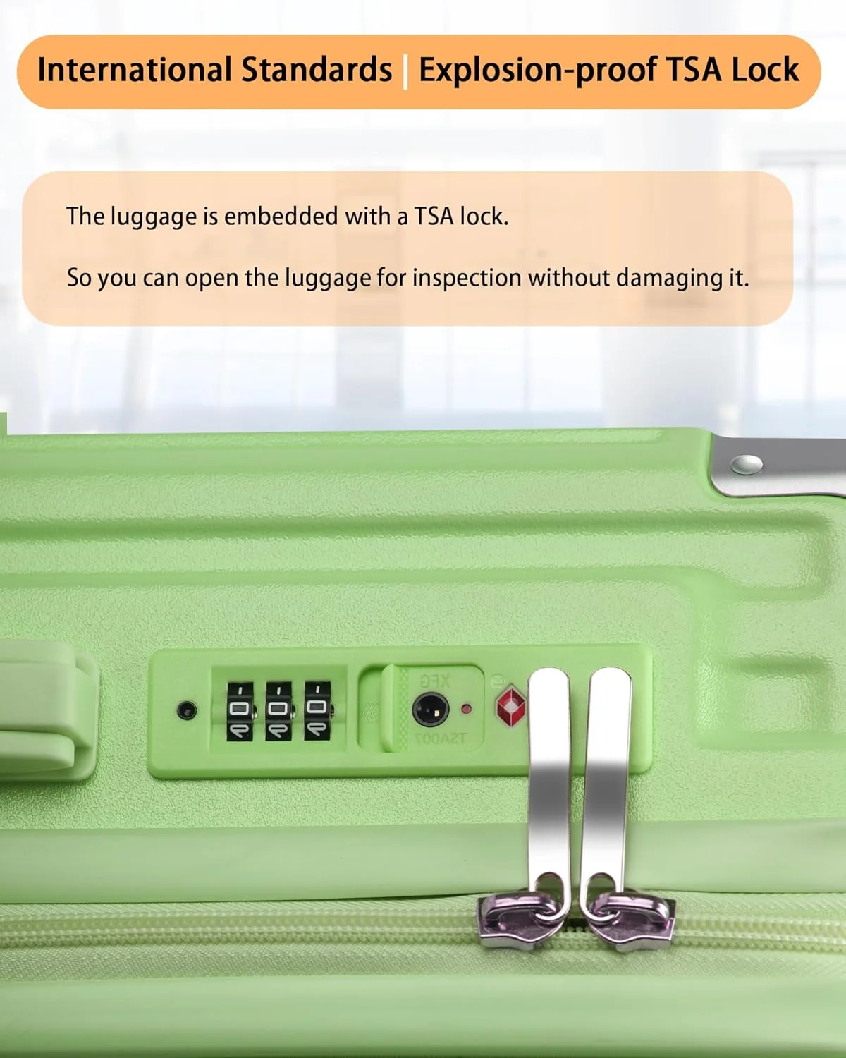 - ��TSA Lock & 360�� silent spinner Wheel��Mounted TSA LOCKS extremly improved the safety,TSA secure and practical, this lock provides added security while complying with airport security regulations, allowing tsa agents to inspect your luggage without causing damage; 4 multi-directional spinner wheels made the luggage smooth rolling effortless mobility��can reduce noise easily.