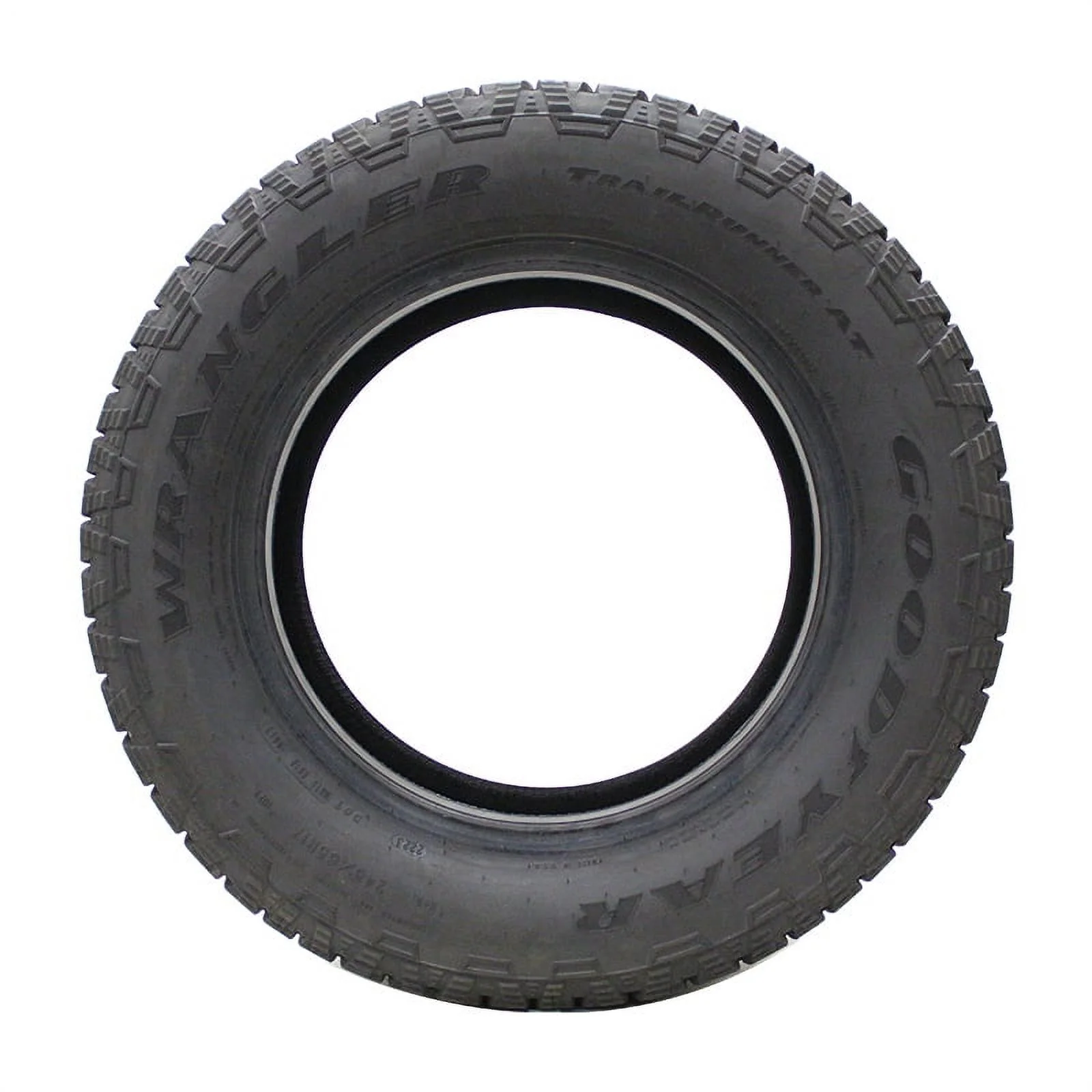 The Goodyear Wrangler TrailRunner AT is an all-terrain tire that's designed for use on light trucks and SUVs and offers drivers unbeatable off-road traction with good ride quality, noise levels, and road manners on the highway. Backed by a 55,000 mile limited manufacturer tread life, the Wrangler TrailRunner AT's large interlocking tread blocks with a dense sipe pattern, stepped shoulder, and sawtooth block edges allow for versatile traction on any terrain. Additionally, TrailRunner AT's tread pattern is computer-tuned for low road noise, and the tire also features a durable rubber compound for a longer tread life.