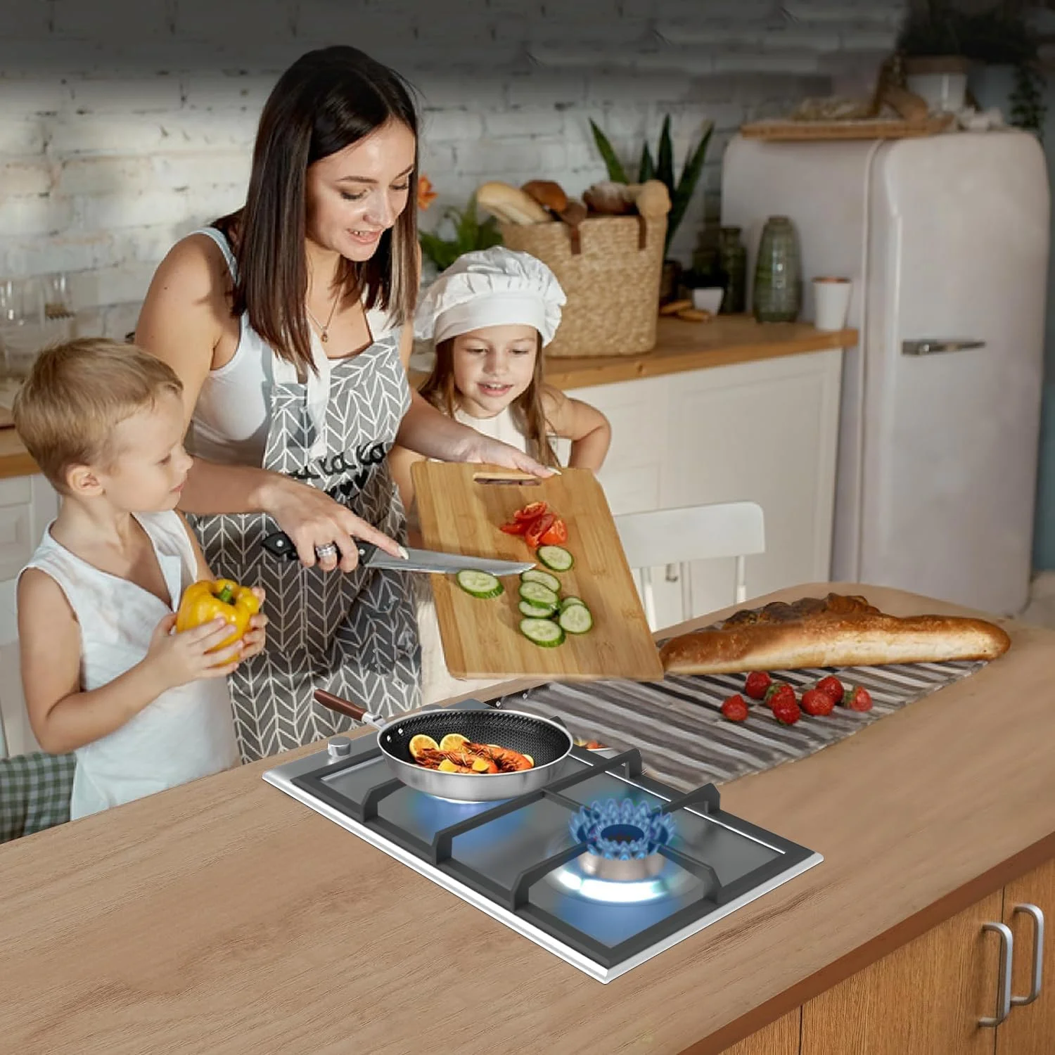 - LPG/PROPANE GAS 304 stainless steel Cooktop with option to convert into NATURAL gas and 110V AC pulse Ignition with standard 110V plug.