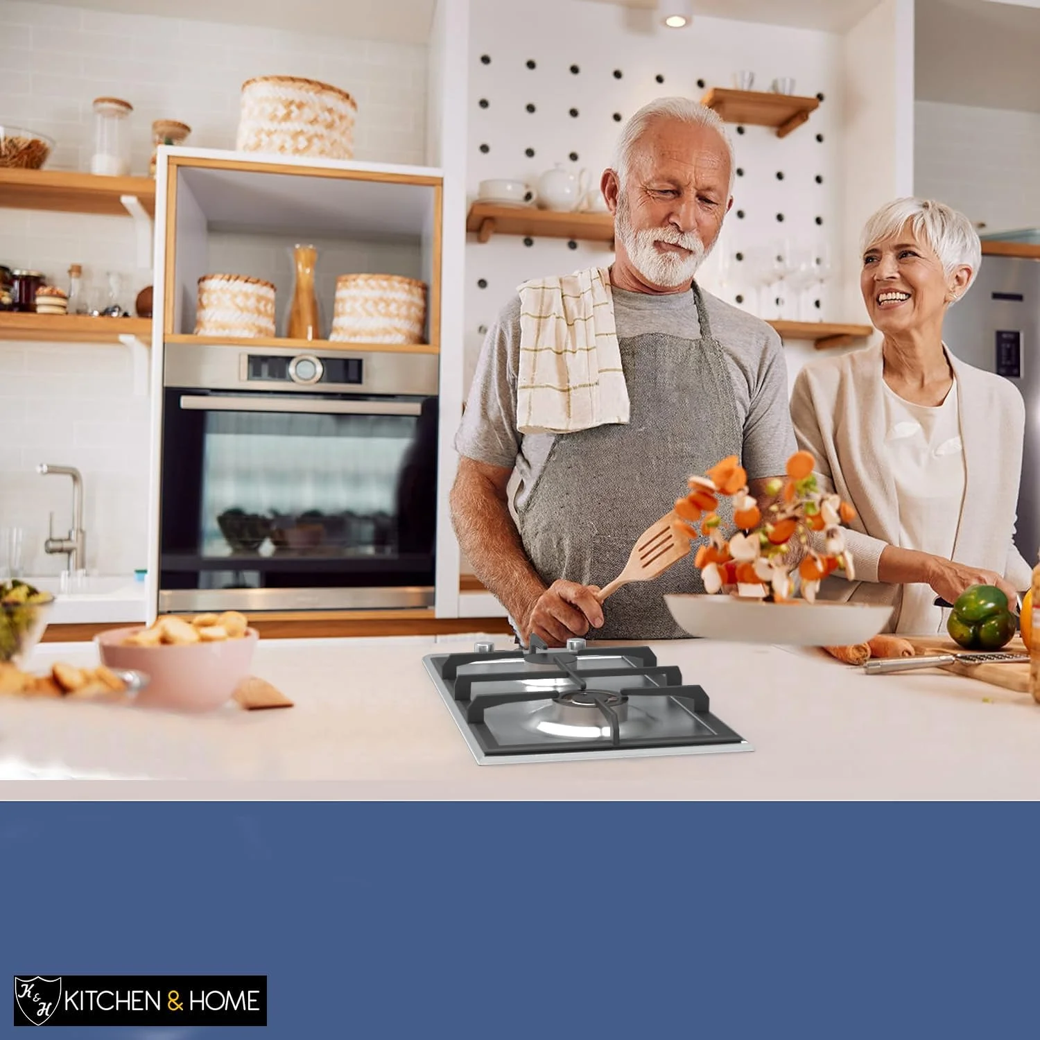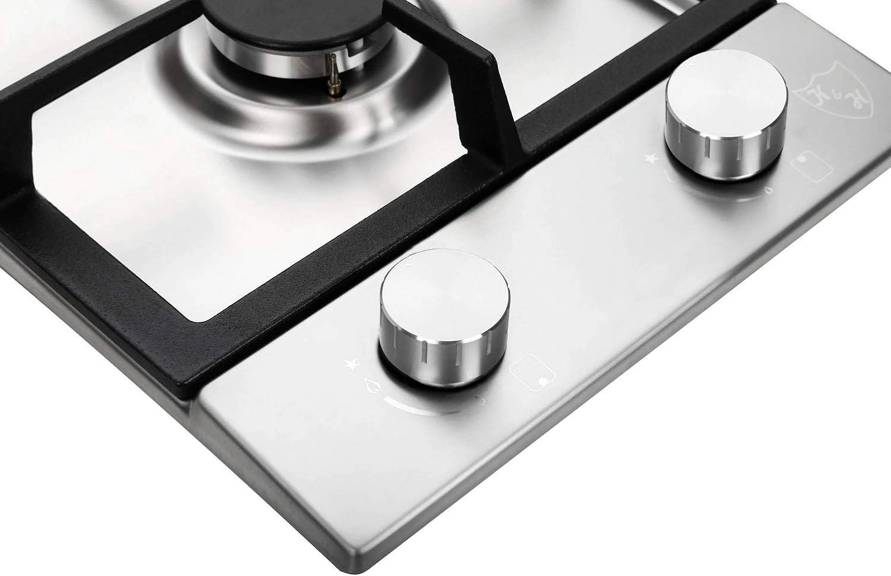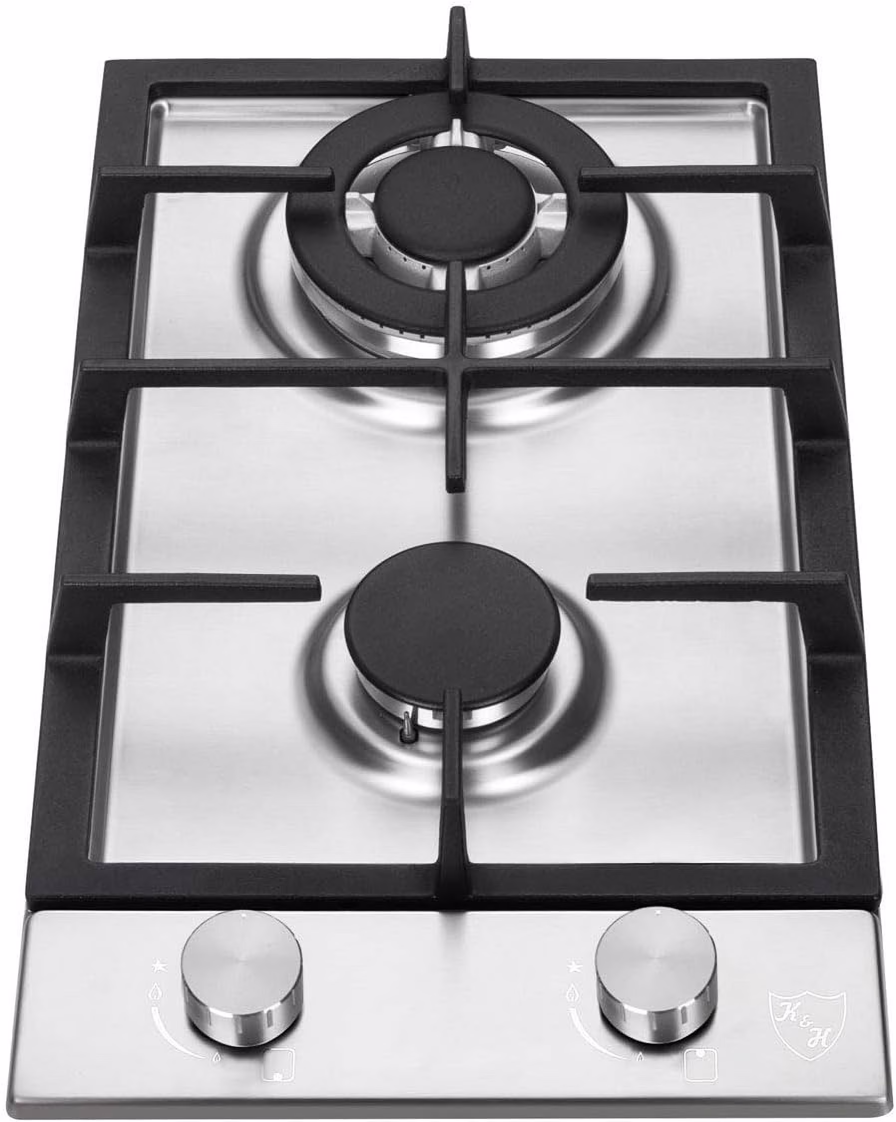 2 POWERFUL BURNERS with heavy cast iron pan support grates included Triple Flame Wok burner (K&H Wok Support Ring is separately available). - NORTH AMERICAN NORM ETL / UL safety certified and German designed / developed K&H cooktop from Kitchen and Home.