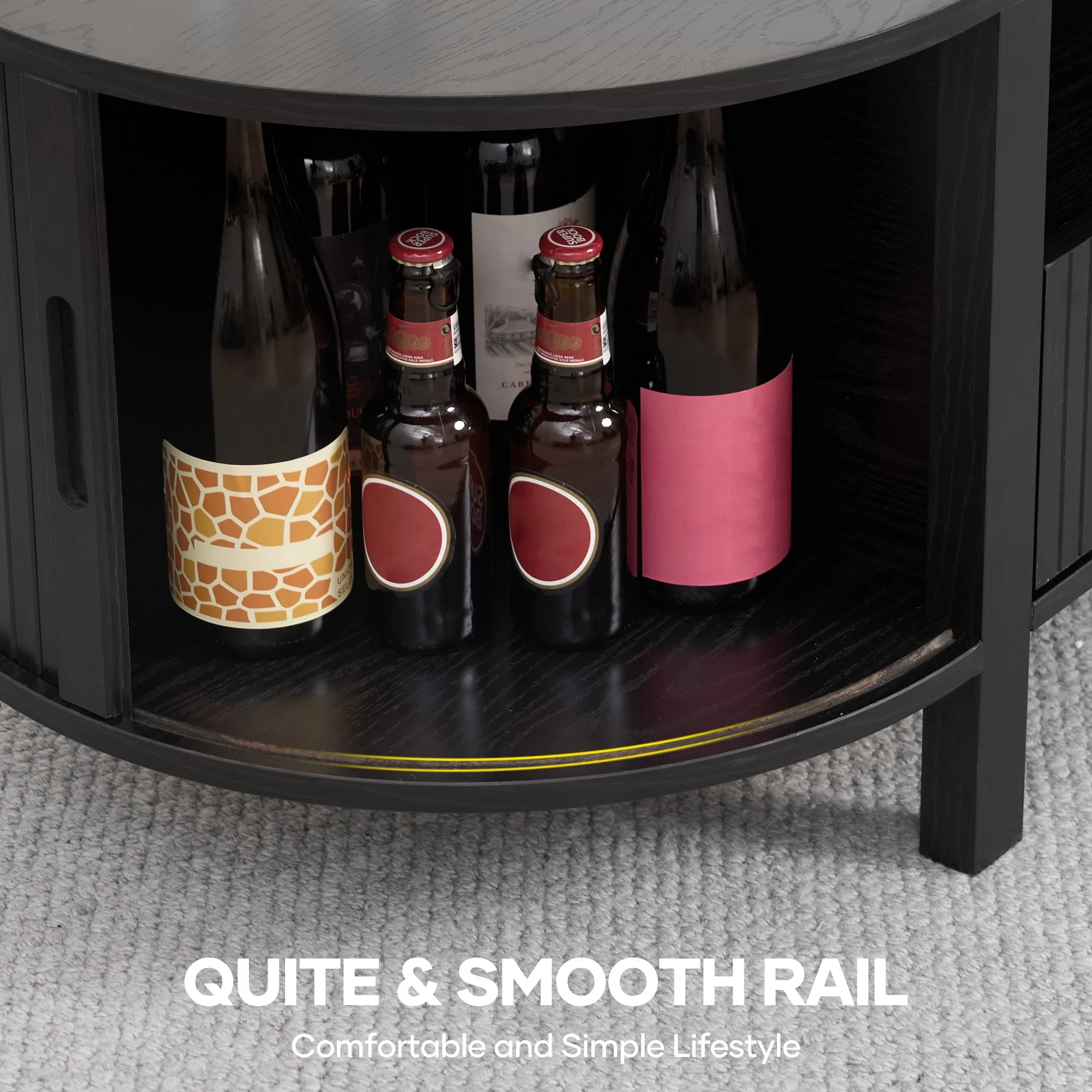 - Safe & Thoughtful Design �C Built-in recessed handles and rounded corners prevent bumps and enhance safety. This tambour sliding doors coffee table is ideal for families with kids or pets.