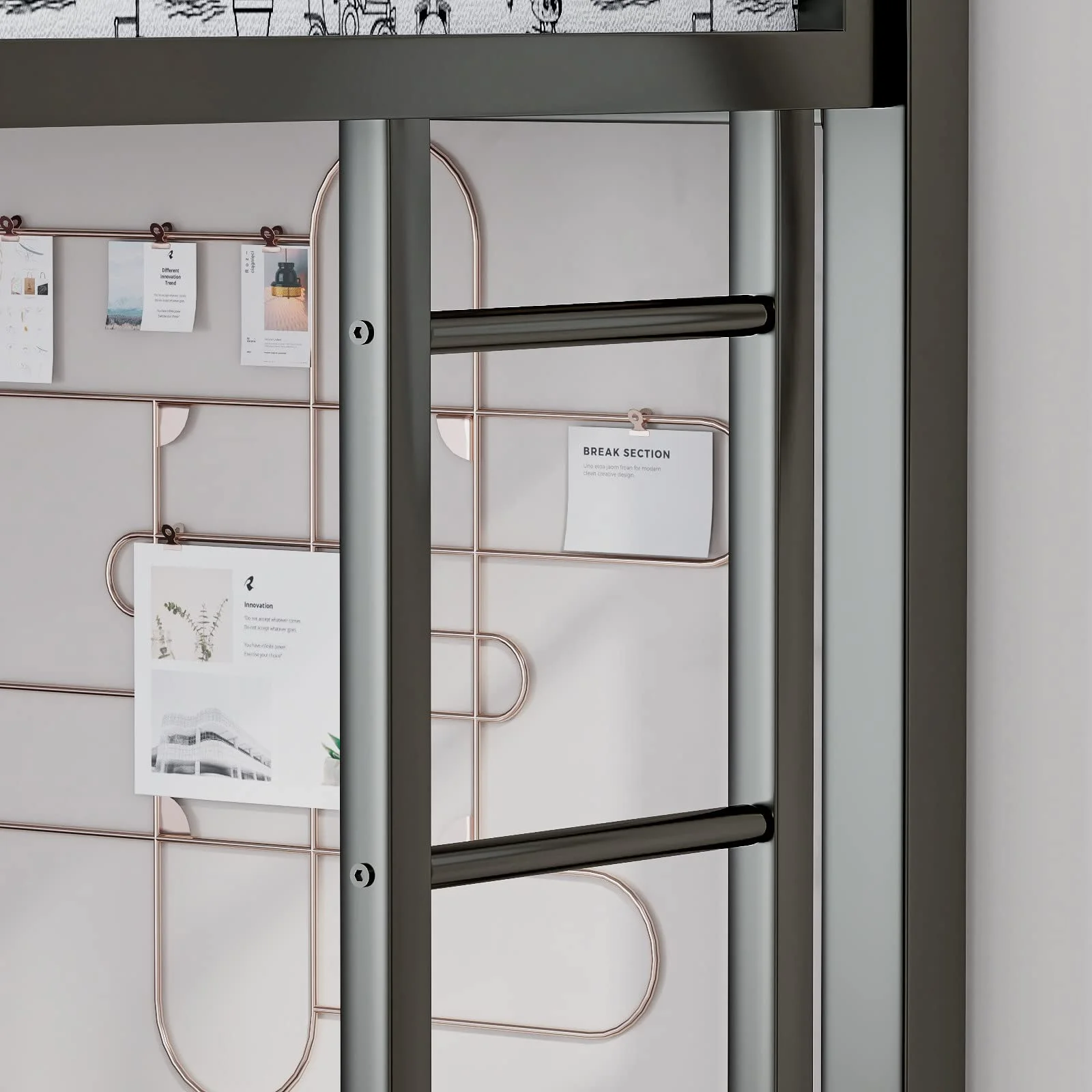 This loft bed has a unique design, the plastic buckle design can firmly fix the slats, reduce the noise when the slats are moving and flipping, and provide an immersive sleeping experience. The raised guardrail not only stabilizes the structure of the bed, but more importantly, it is safe enough that you don't have to worry about falling off the bed.