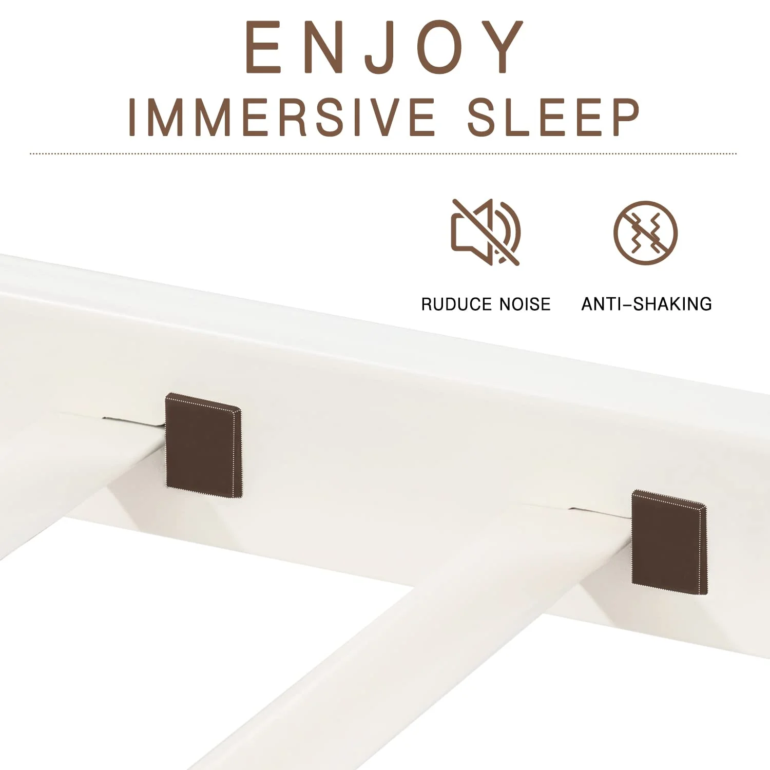 - Noiseless Design: The bed frame is all metal design, please tighten the screws. Plastic buckles are used on the side of metal slats, and there are plastic foot pads at the bottom of the bed feet to reduce friction noise. It also comes with a fastening belt. You only need to punch a few holes in the wall to secure the bed frame with expansion screws and straps.