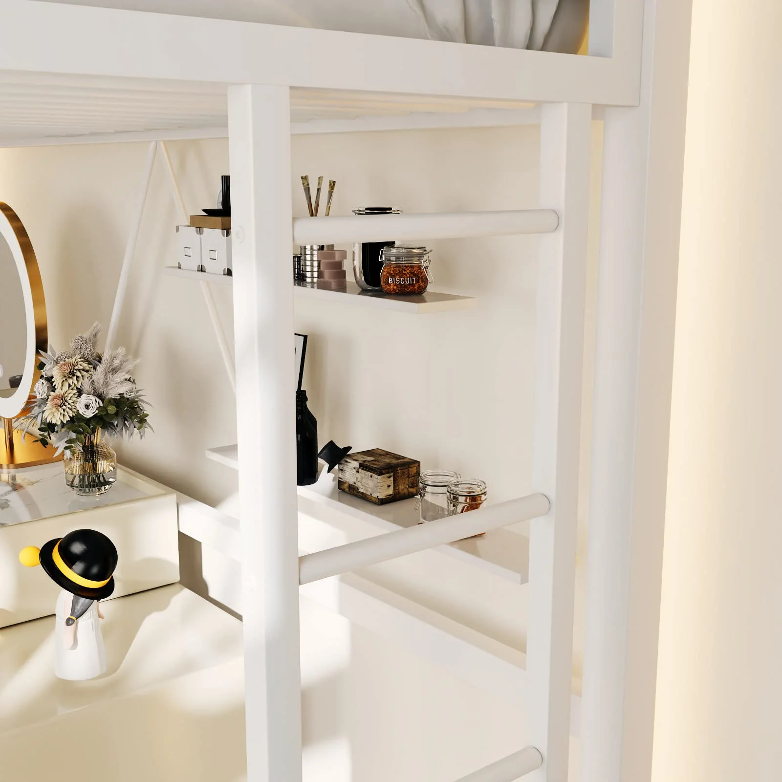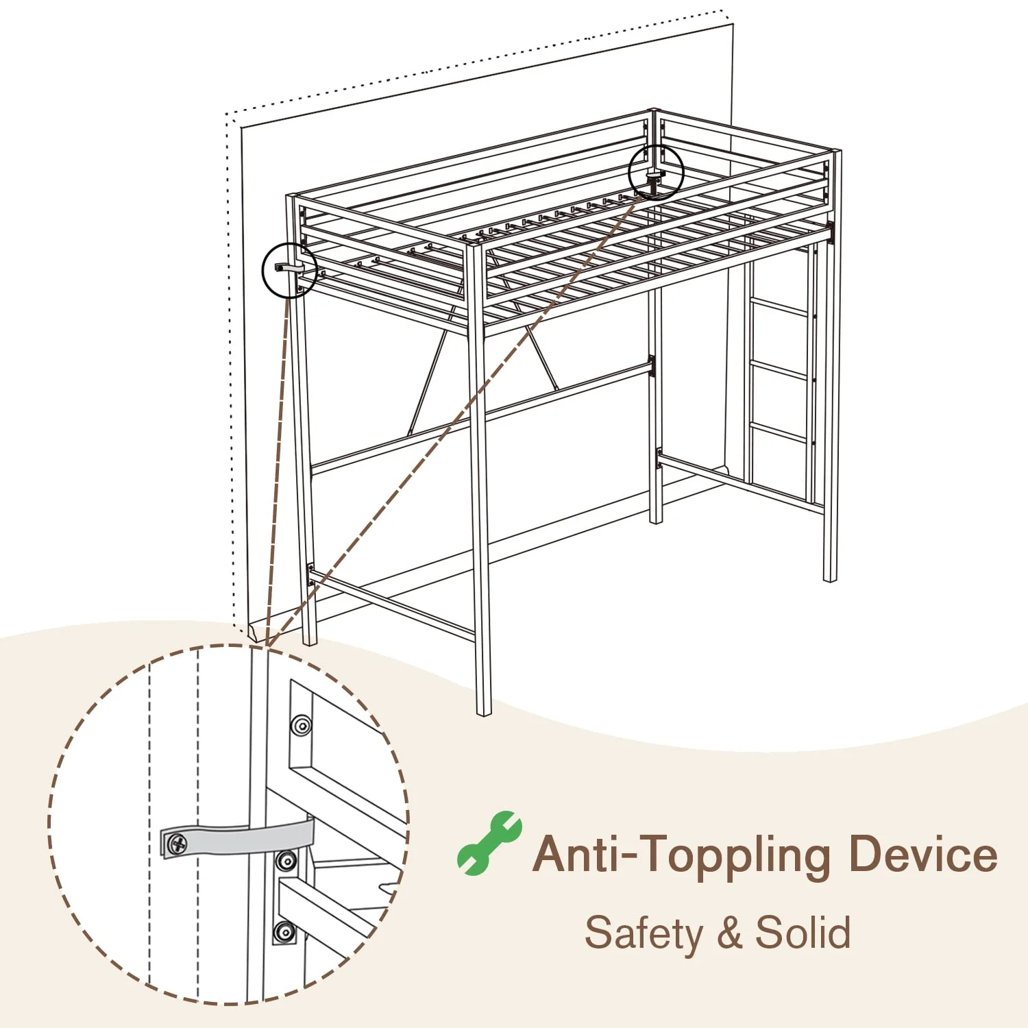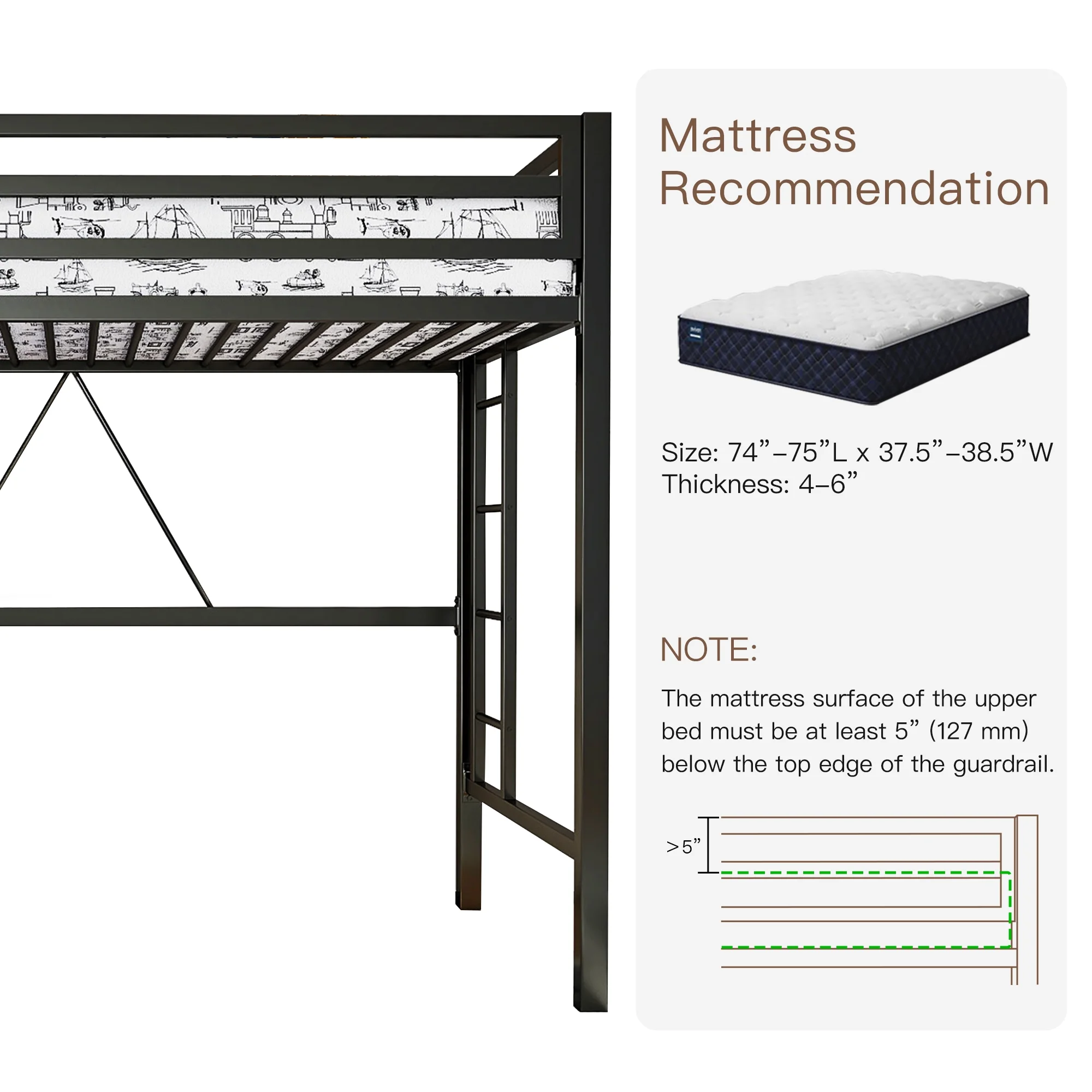 - Space Saving: The loft style bed frame can make great use of space. The large bottom space can be used for luggage, shoe boxes, and other clutter.