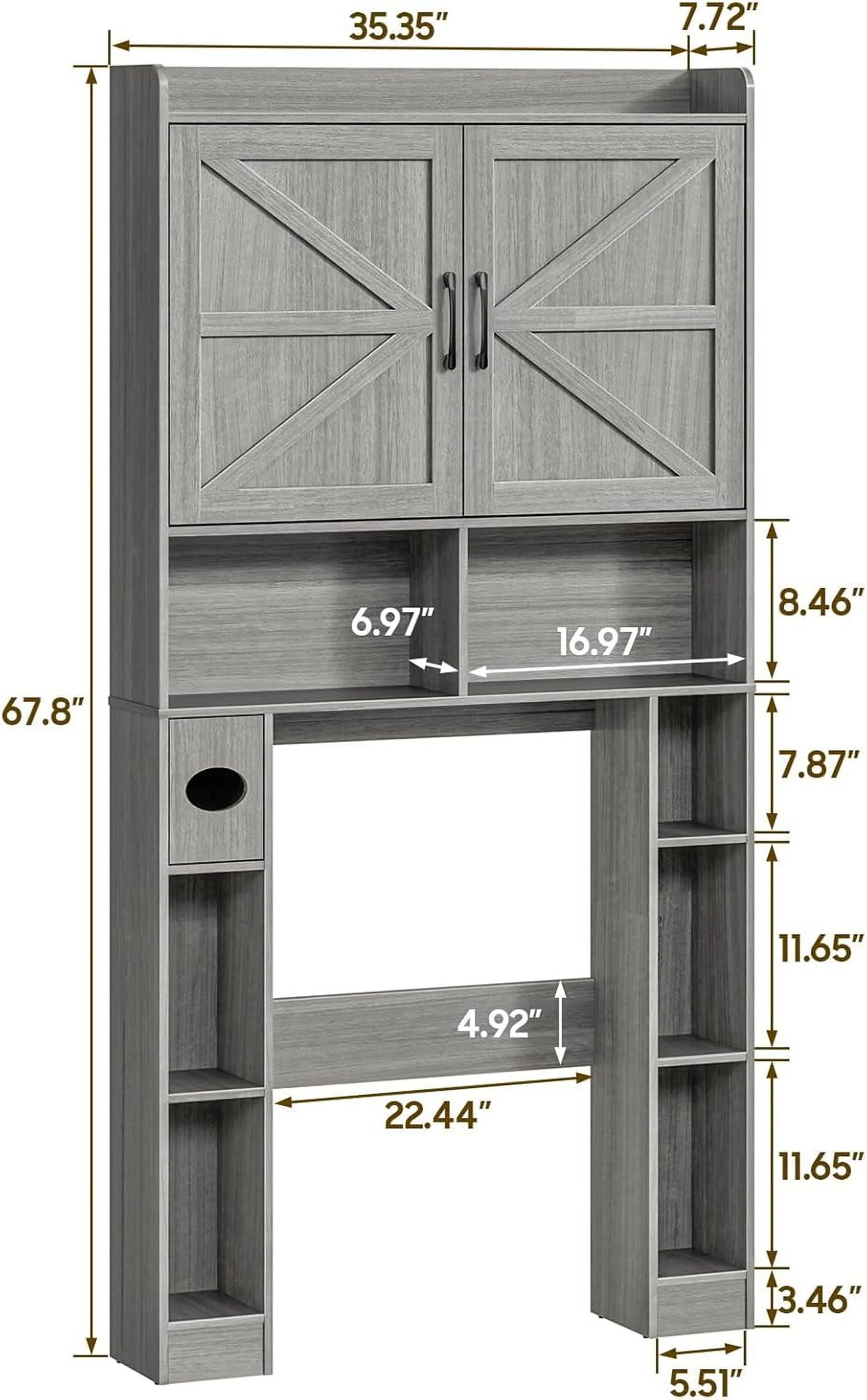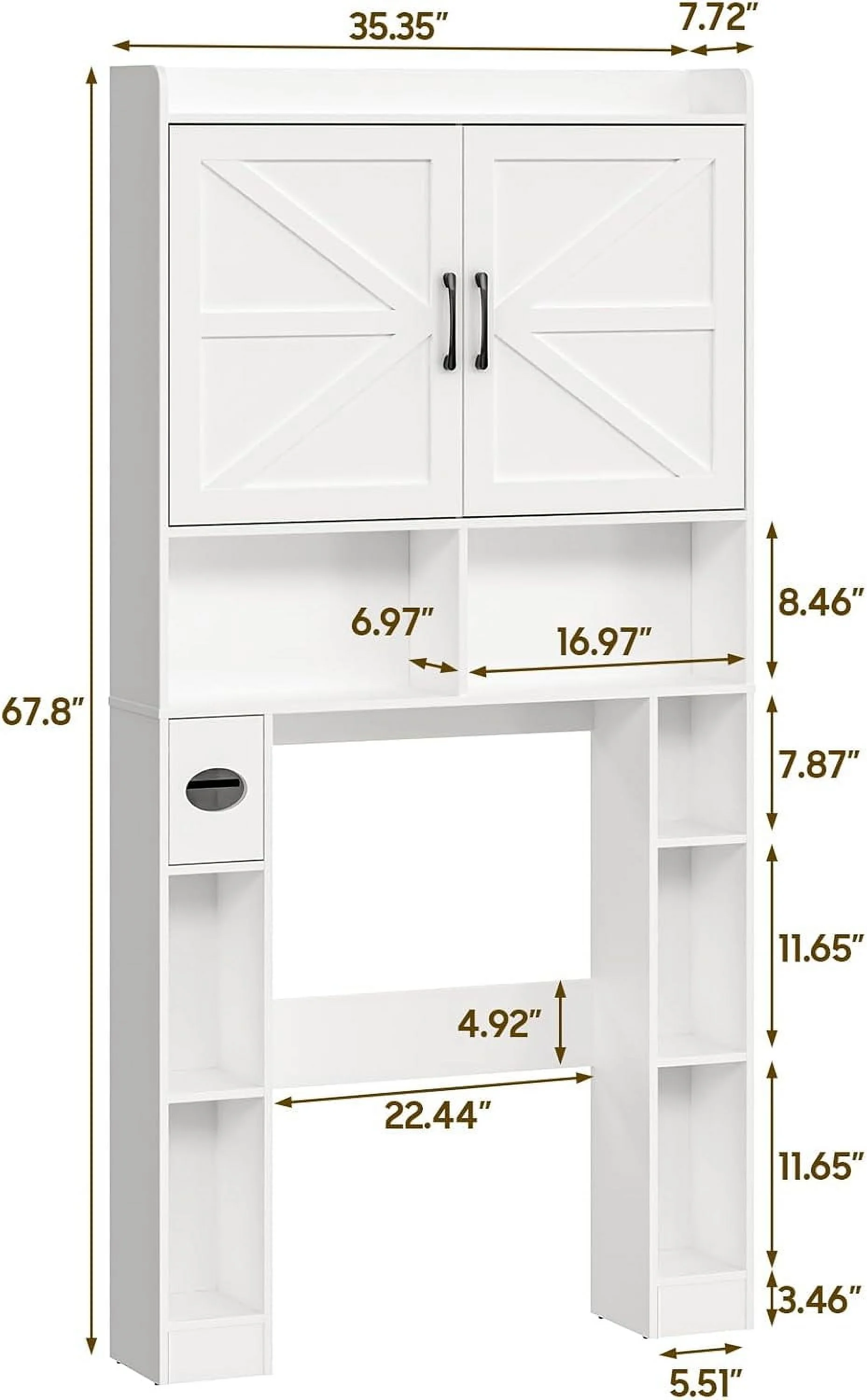 Measuring 67.8 inches x 35.15 inches x 7.72 inches, this over-the-toilet storage cabinet provides an efficient storage solution without overcrowding your bathroom. Please ensure the dimensions meet your specific requirements before purchasing. - ��Easy Assembly��