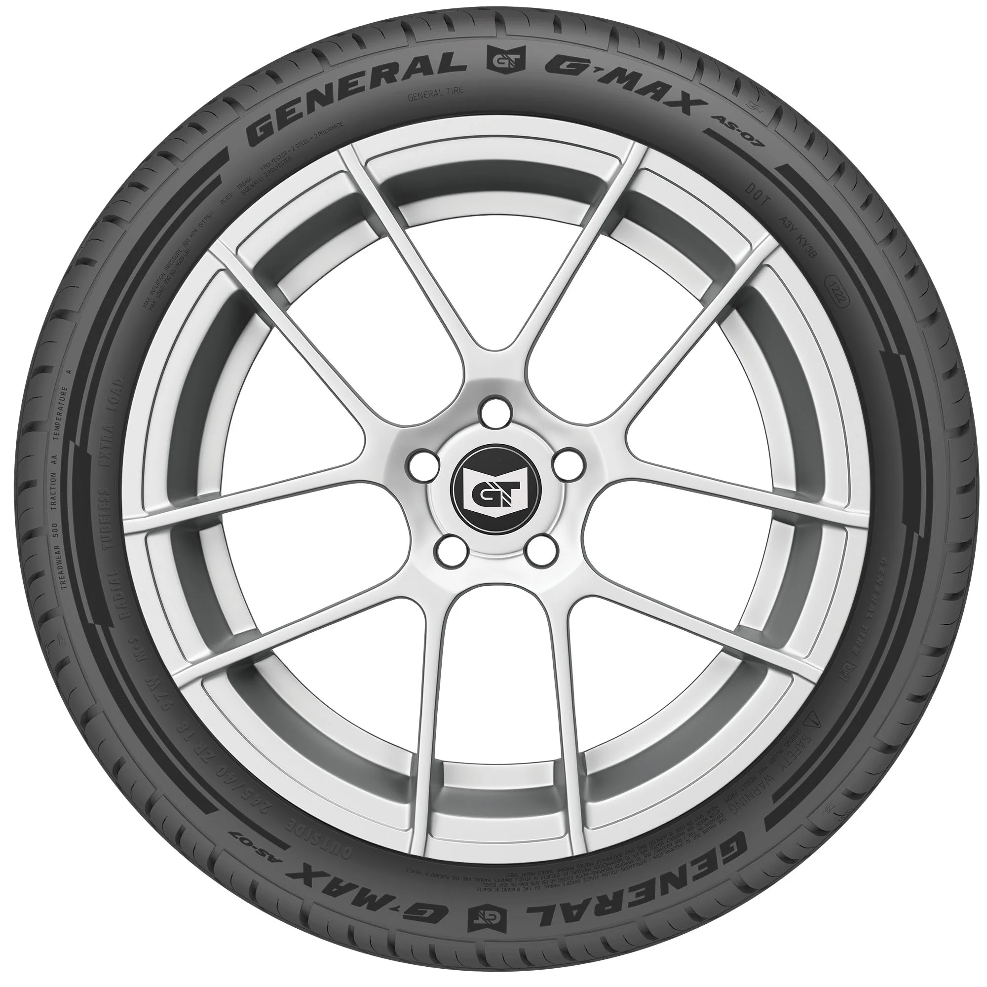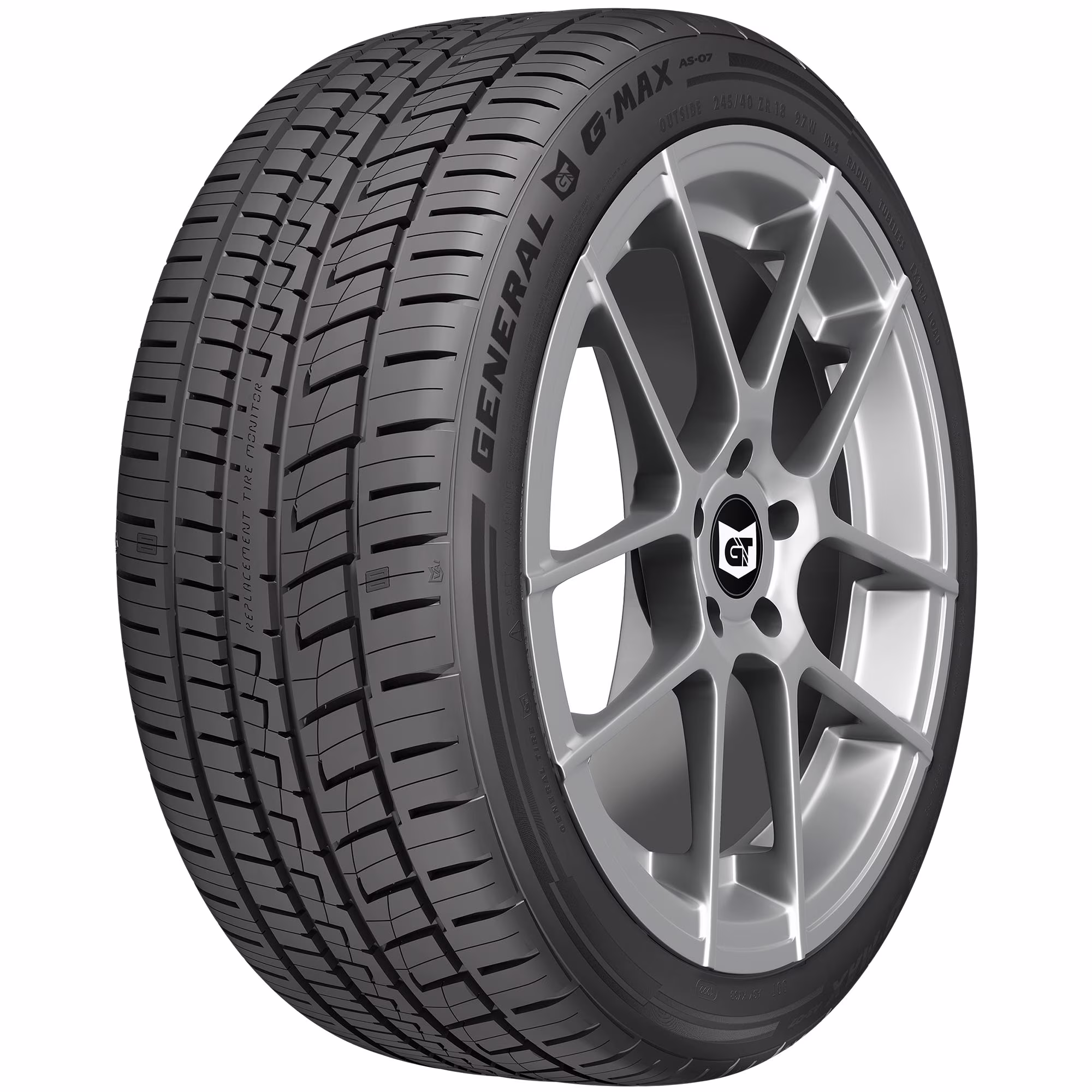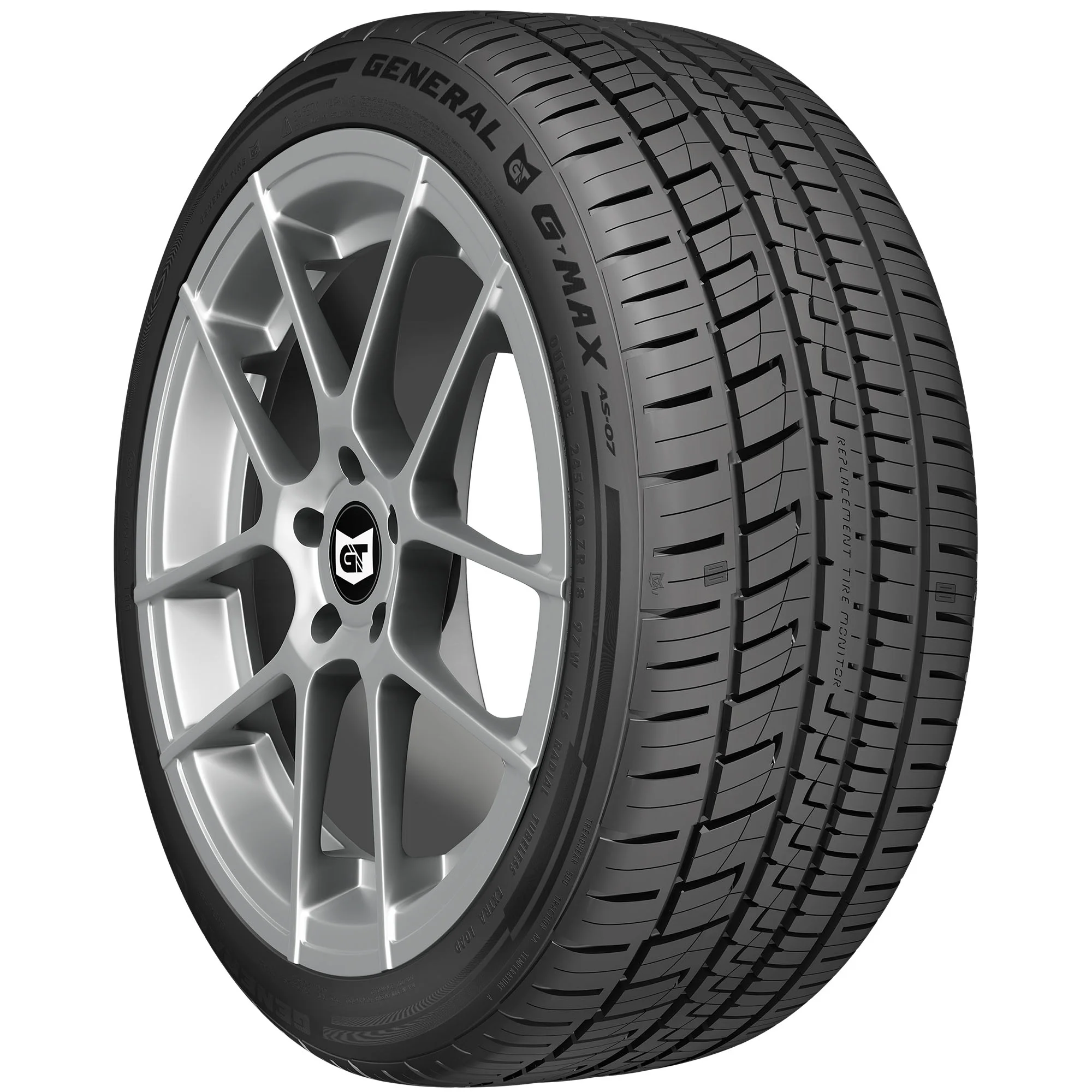 The General G-MAX AS-07 is a dynamic, all-season ultra-high-performance tire for passenger cars, crossovers, light trucks, and SUVs that is backed by up to 50,000-miles of limited manufacturer tread life coverage. Offering stellar traction and a long tread life, the G-MAX AS-07 also has General's Replacement Tire Monitor which features letters in the tread that wear off to read "REPLACE TIRE" when the tire wears to 2/32 of tread depth, indicating a tire change is needed.